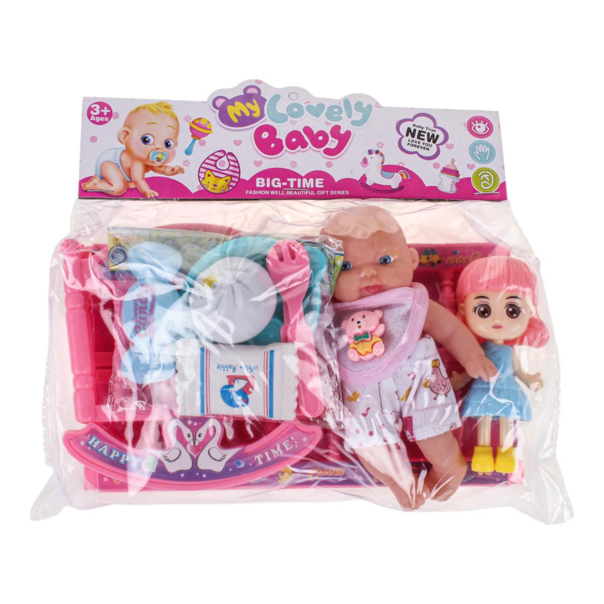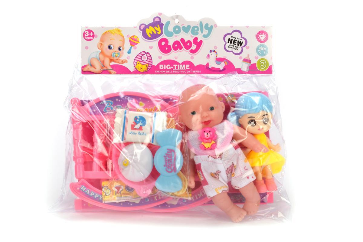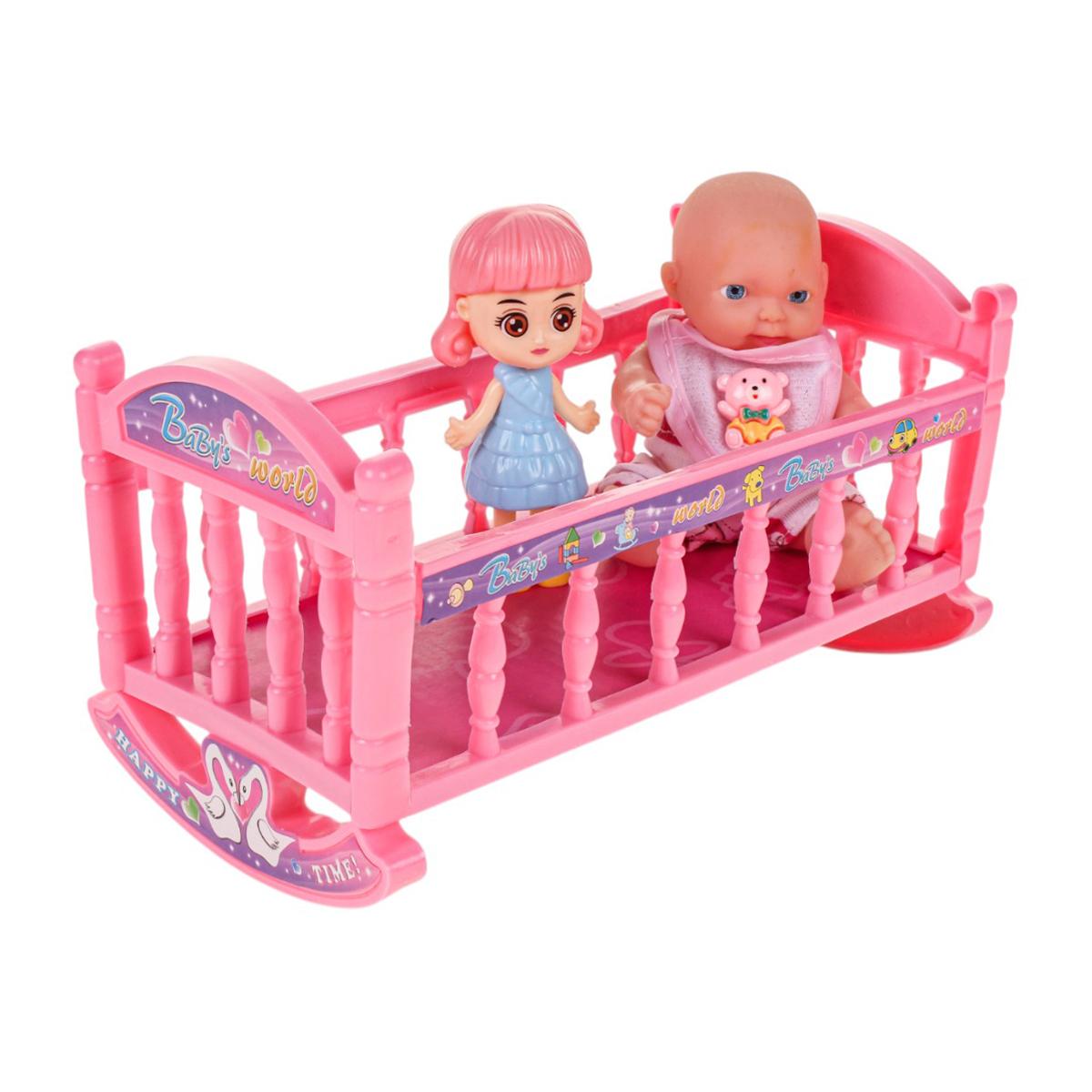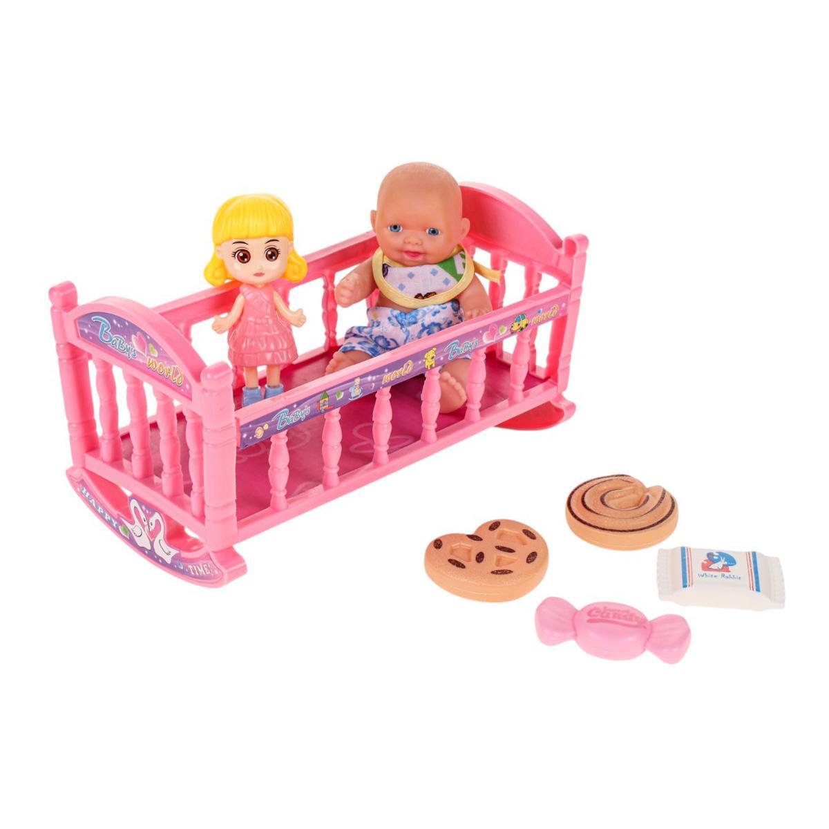 Этот набор игрушек предлагает милого пупса с подвижными руками и ногами, а также комплект аксессуаров для увлекательных игр. Размер пупса — 17 см, он создан из безопасных материалов: пластика и ПВХ, что делает его надежным и долговечным. В комплект входит розовая кроватка с качающимися полозьями, игрушки для сюжетных игр и аксессуары, что способствует развитию фантазии и социализации у малышей.