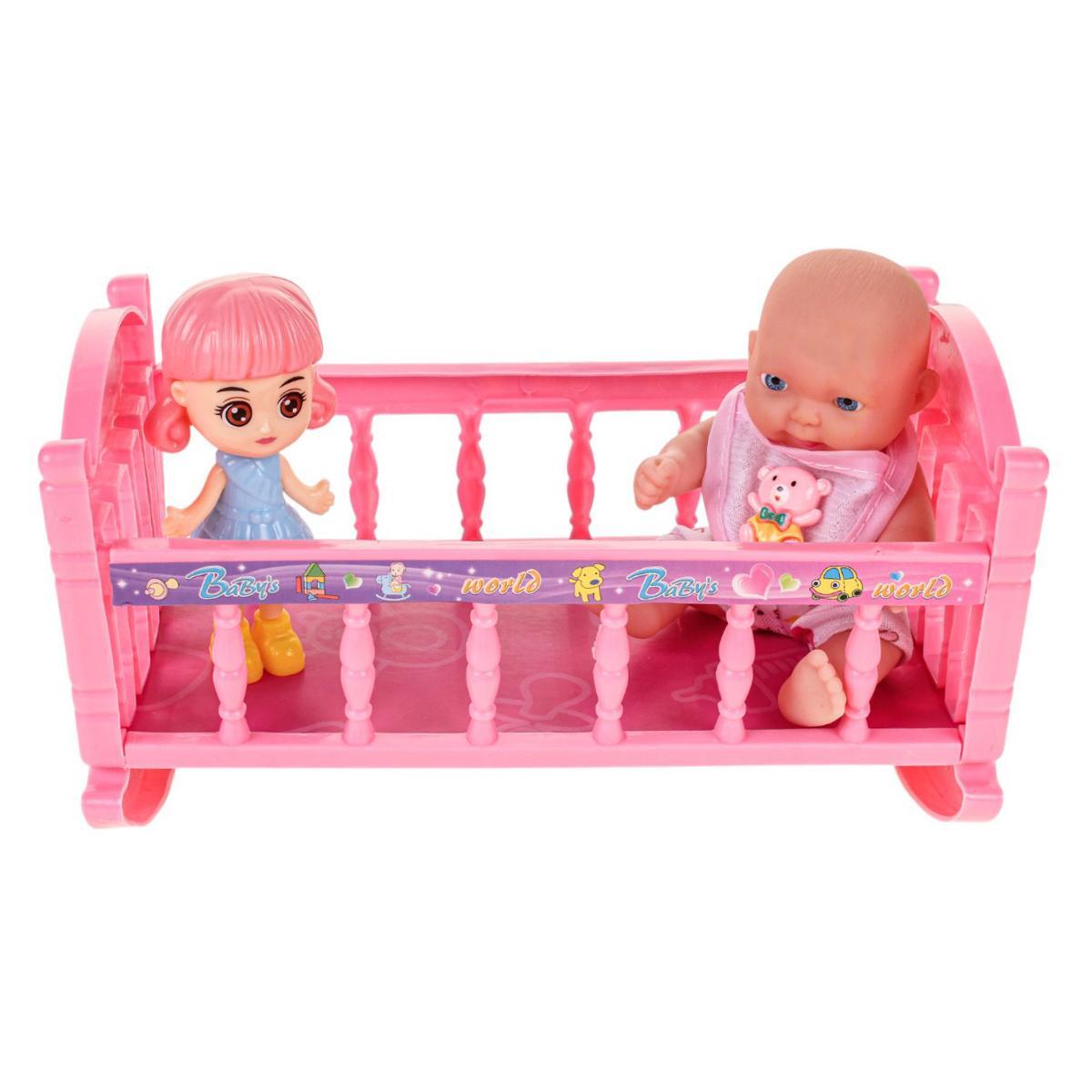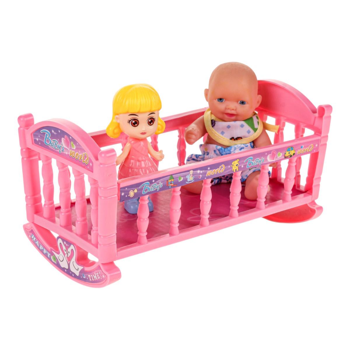 Размер кроватки — 19х10х10 см, выполнена из прочного пластика с декоративными элементами и яркой наклейкой. В набор входит также кукла, выполненная из качественного пластика с ярко выраженными деталями и рисунками, а также мини-игрушки подобранные для сюжетных игр. Все элементы тщательно изготовлены, безопасны и подходят для активных игровых процессов, обеспечивая детям длительное и безопасное наслаждение.