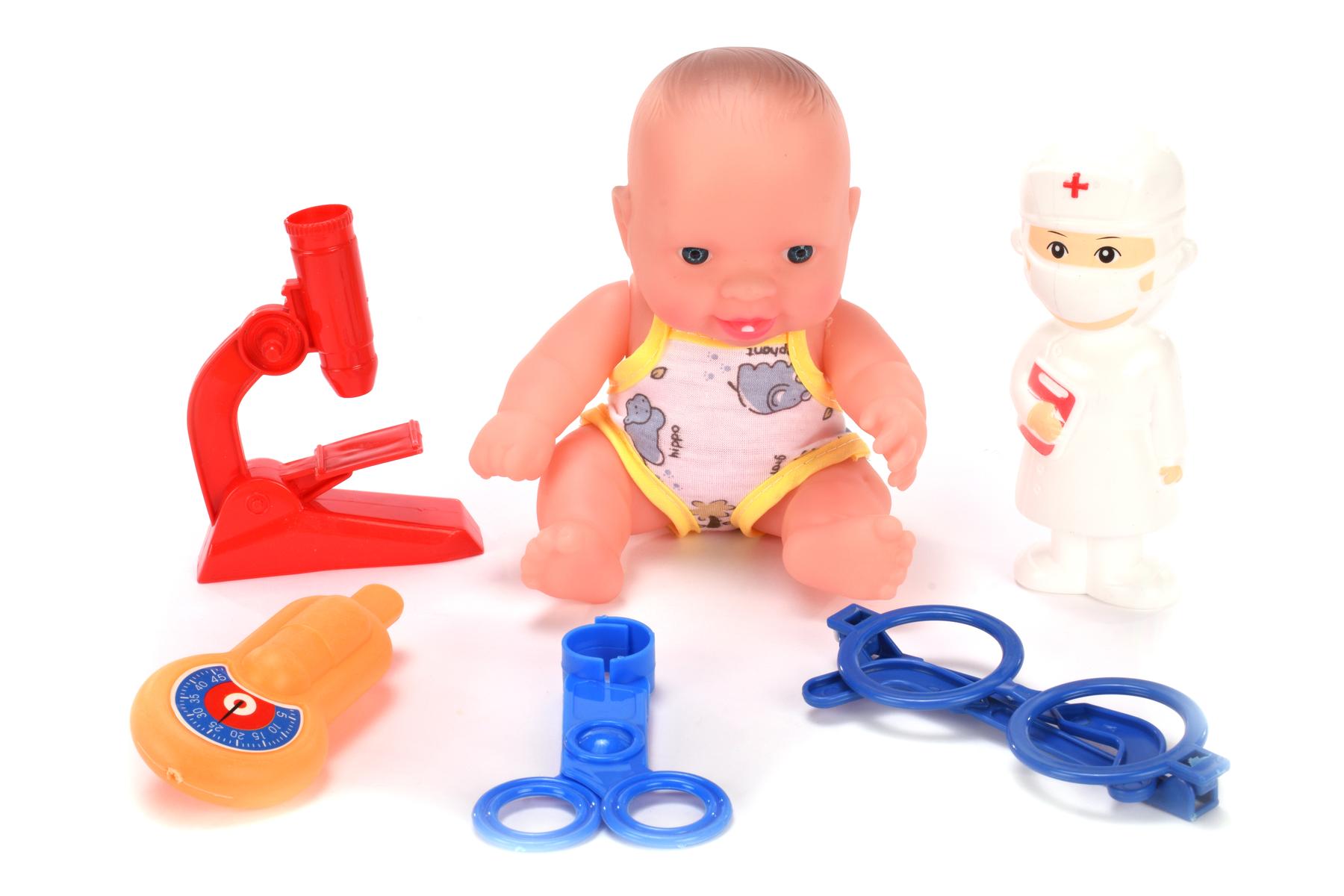 Пупс пластмассовый с аксессуарами, рост 17см, для игр доктора