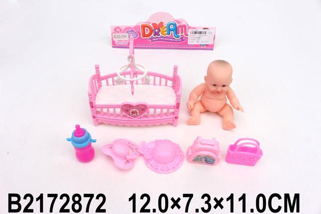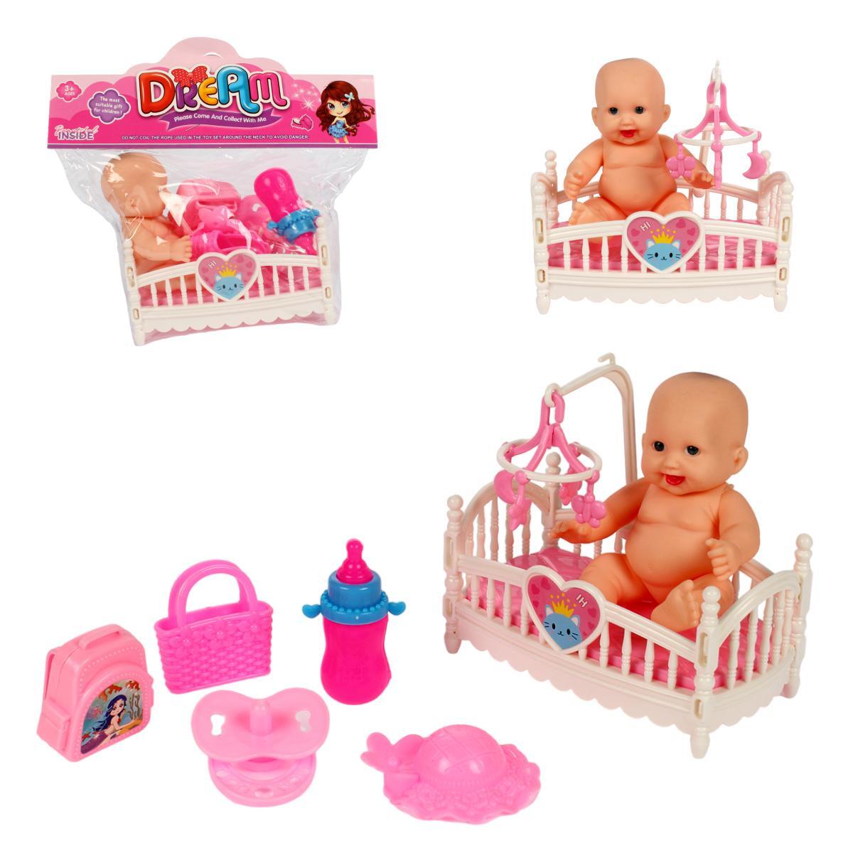 Пупс игровой набор «2022-F60» для ролевых игр, с кроваткой, бутылочкой, соской, пластик, 12х7.3х11 см
