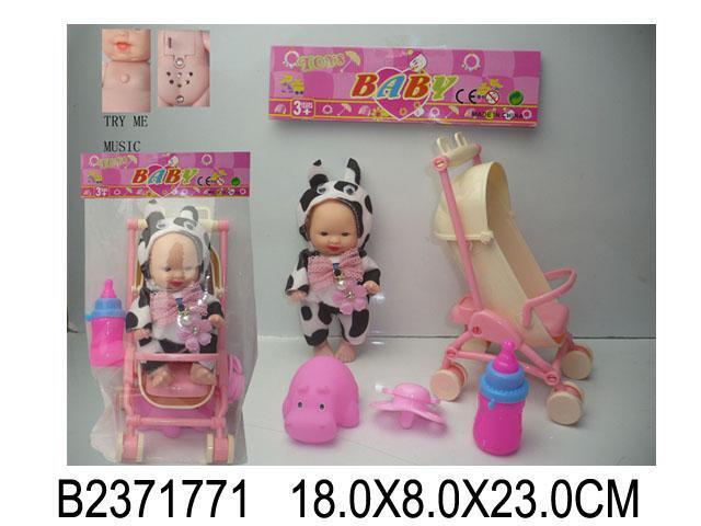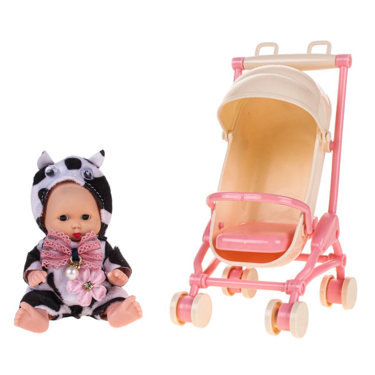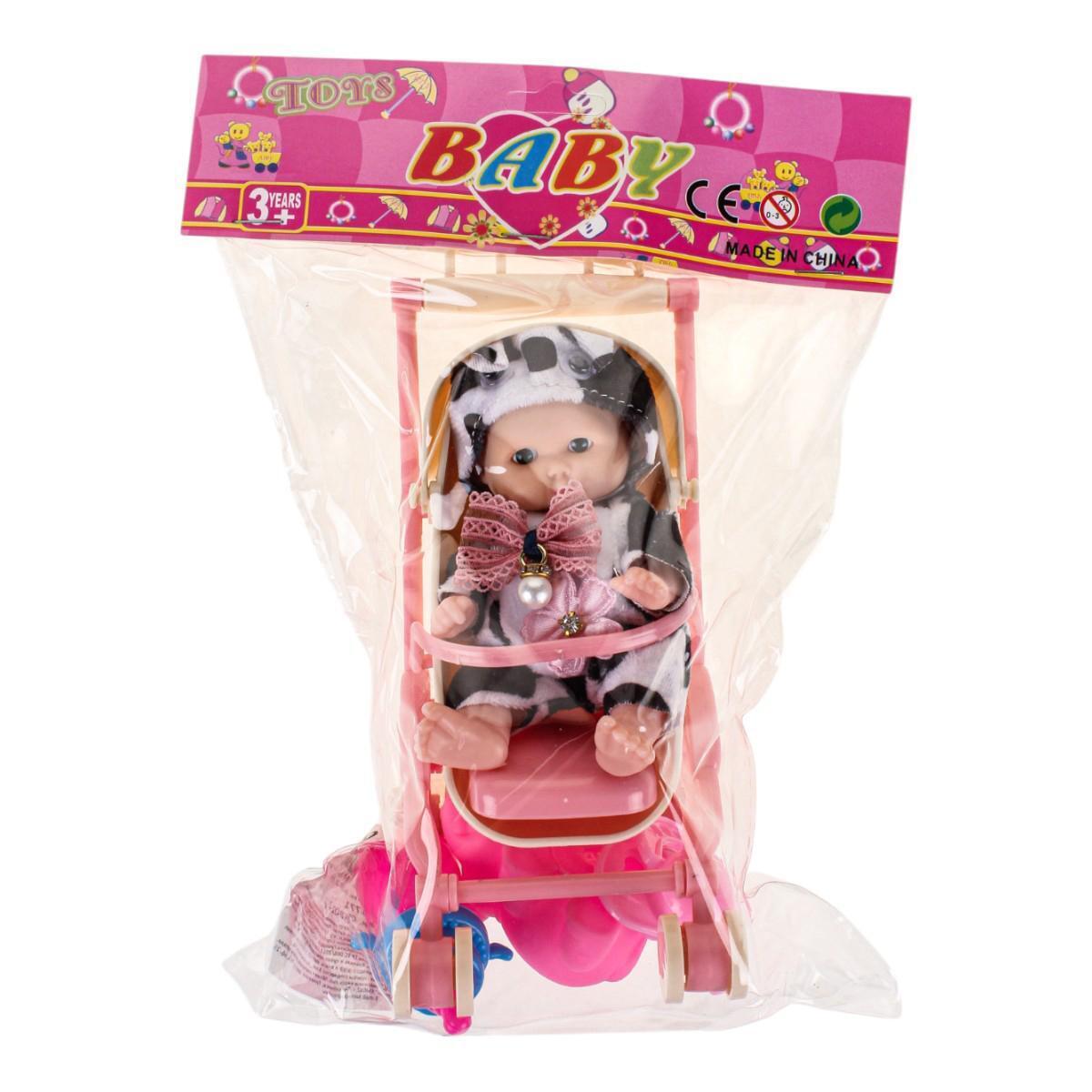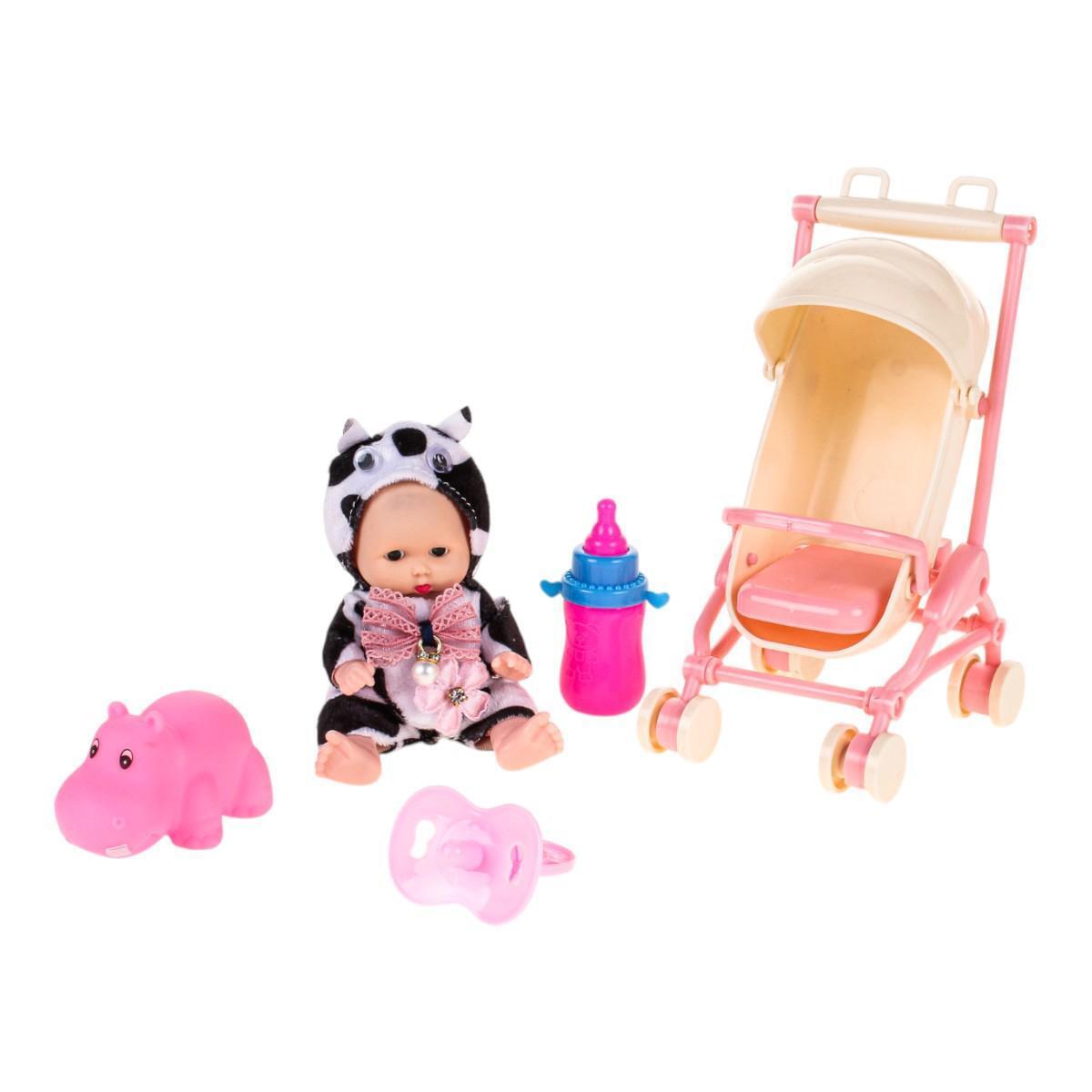 Пупс с аксессуарами "BABY" 23см, розовая коляска, звуковые эффекты, пластик/текстиль