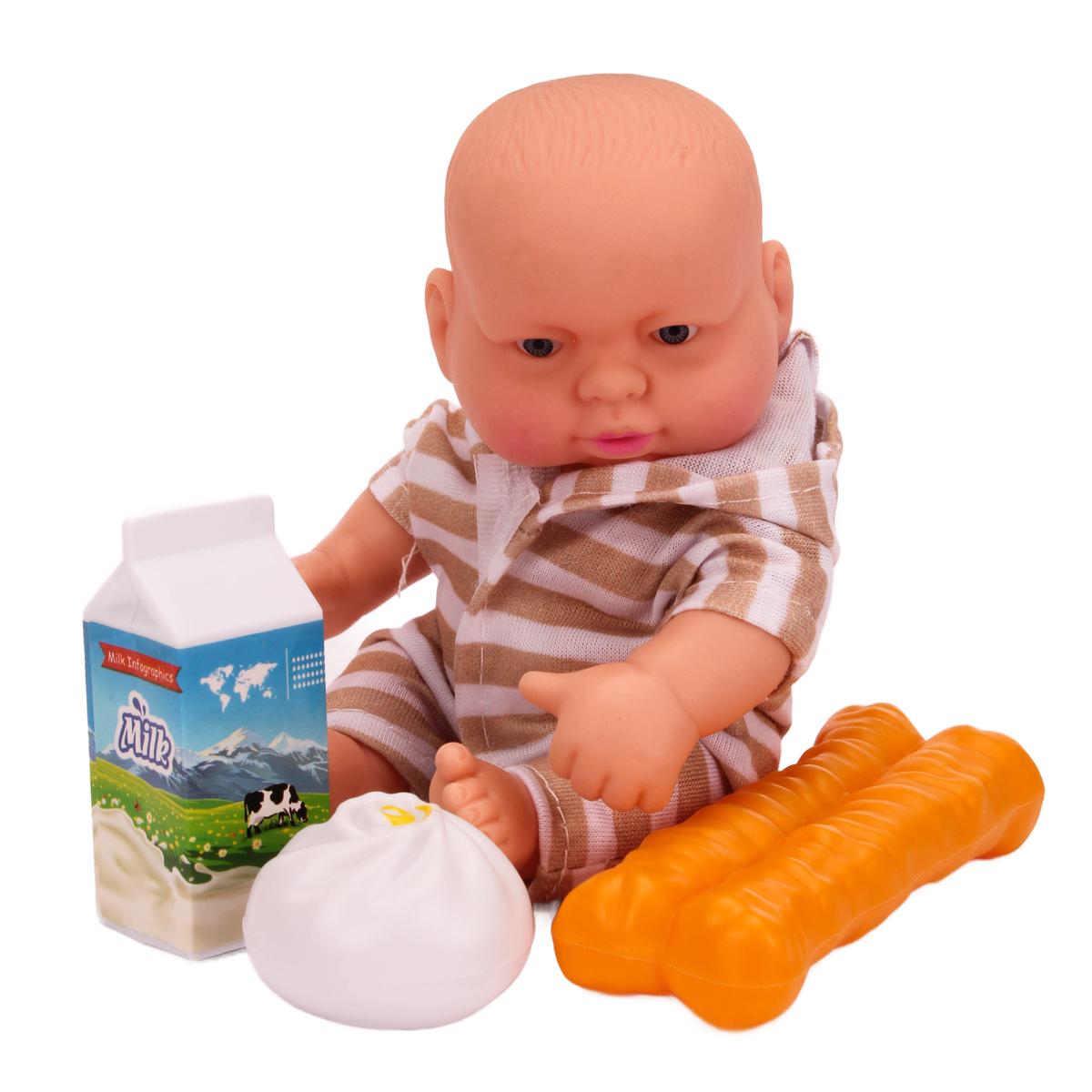 Пупс размером 15 см удобно держать в руках, а его аксессуары, такие как соска, памперс и посуда, добавляют разнообразия в игру. Игрушка подходит для детей от 3 лет и старше, что делает ее отличным подарком на день рождения или праздник. Ролевые игры с пупсом помогут развить у ребенка эмоциональный интеллект и навыки общения.