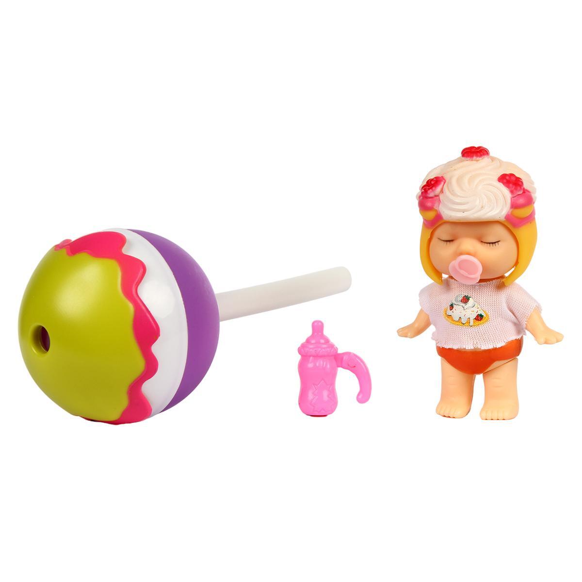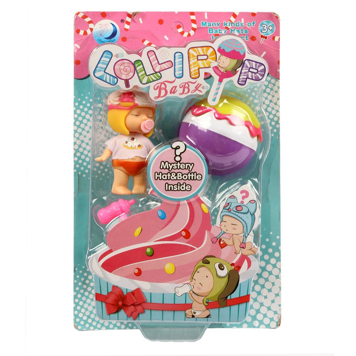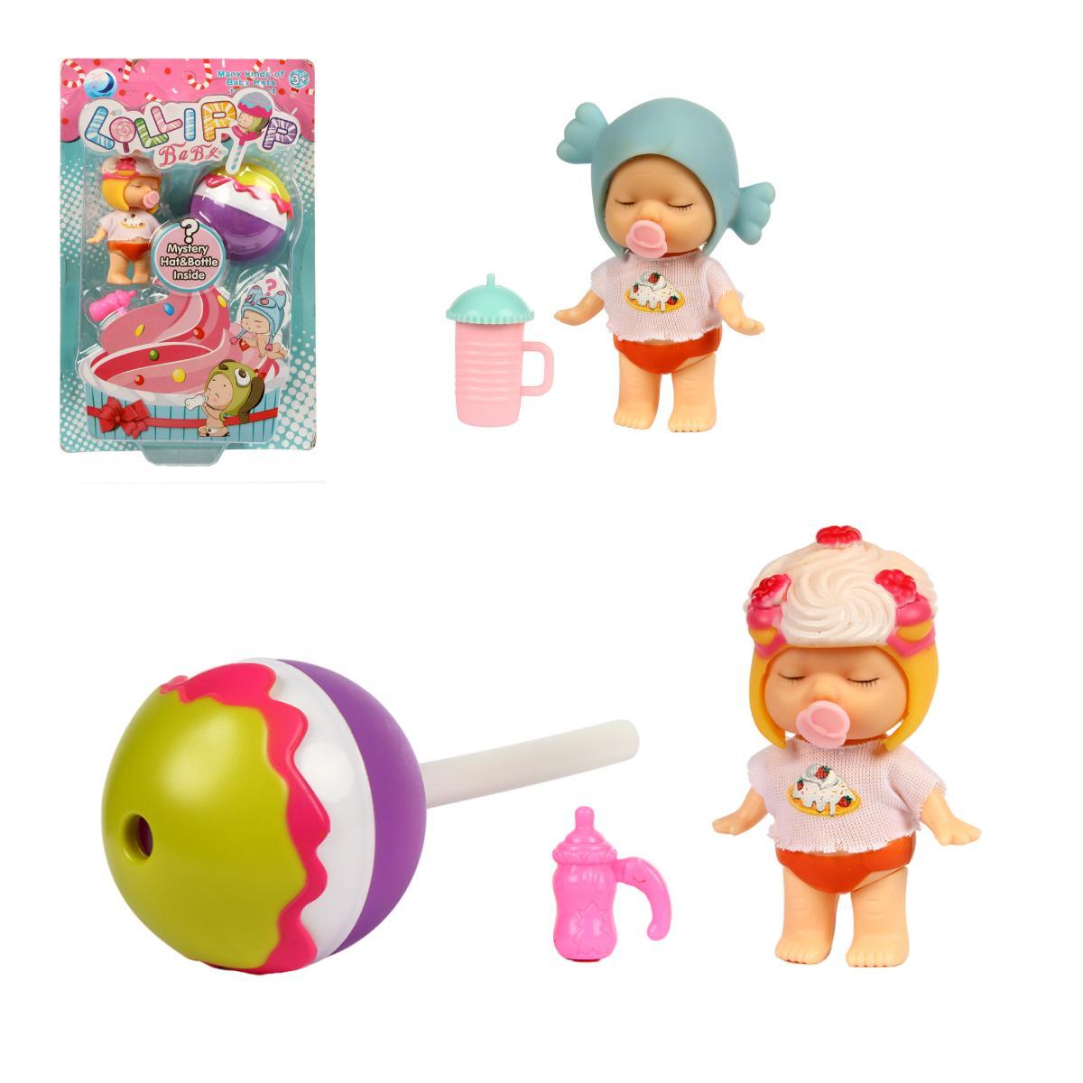 Кукла-пупс спящая с аксессуарами "Lollipop Baby", пластик, 15,6 см, 2 предмета, сюрприз внутри