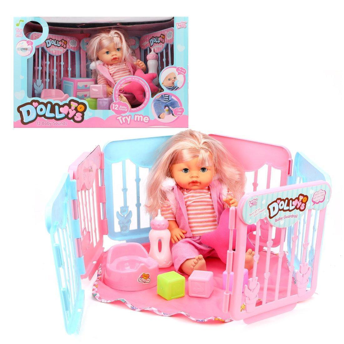 Игрушка выполнена из безопасных, качественных материалов, что гарантирует надежность и долговечность использования. Пупс обладает подвижными ручками и ножками, умеет пить водичку, писает и издает забавные звуки, делая игру максимально реалистичной и интересной. В комплект входят удобная бутылочка, кубики, горшочек, коврик и сборный манеж, позволяющие создавать разнообразные сценарии игры.