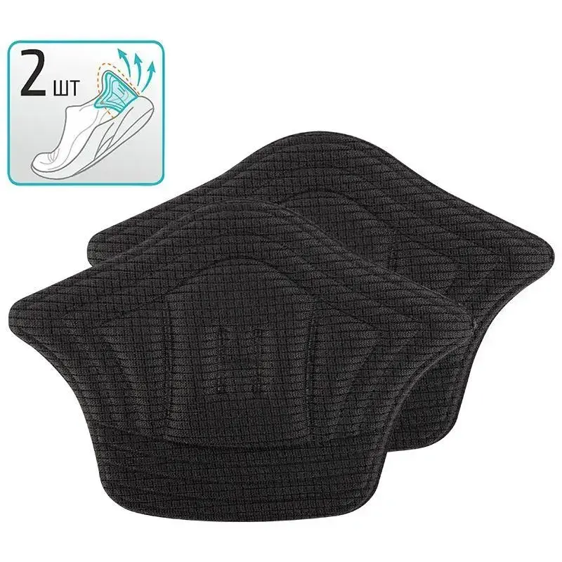 Черные элементы сливаются с внутренней поверхностью обуви. Толщина 2 мм обеспечивает комфорт при ношении, а эластичный край повторяет анатомическую форму стопы. Для максимальной адгезии перед установкой протрите поверхность обуви спиртовой салфеткой.