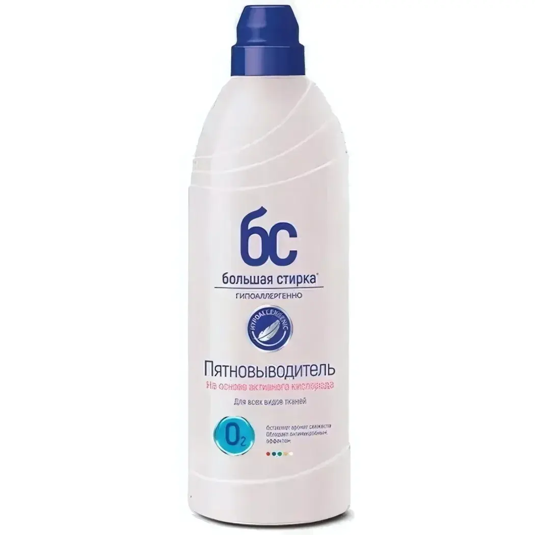 Большая Стирка - это не только эффективный пятновыводитель, но и безопасный для вашей одежды и кожи. Благодаря своему гипоаллергенному составу, он идеально подходит для использования в домашних условиях.