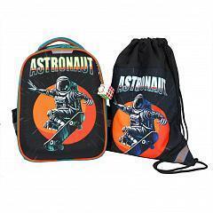 Ранец школьный с ортопедической спинкой и мешком «Астронавт», 38×30×17 см, темный с принтом, непромокаемый материал