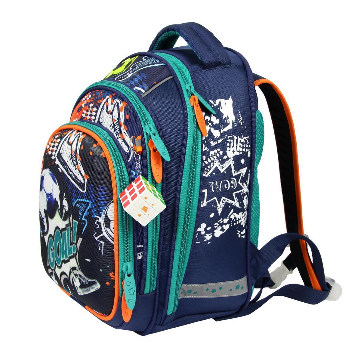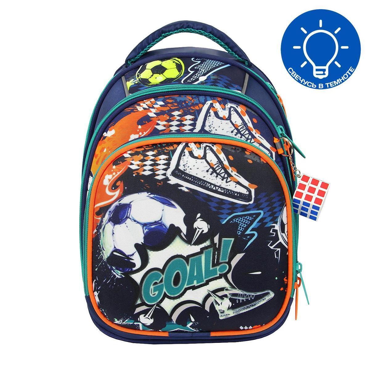 Ранец школьный с ортопедической спинкой "Футбол", 36х27х21 см, синий/оранжевый, для мальчика