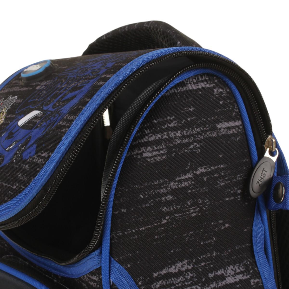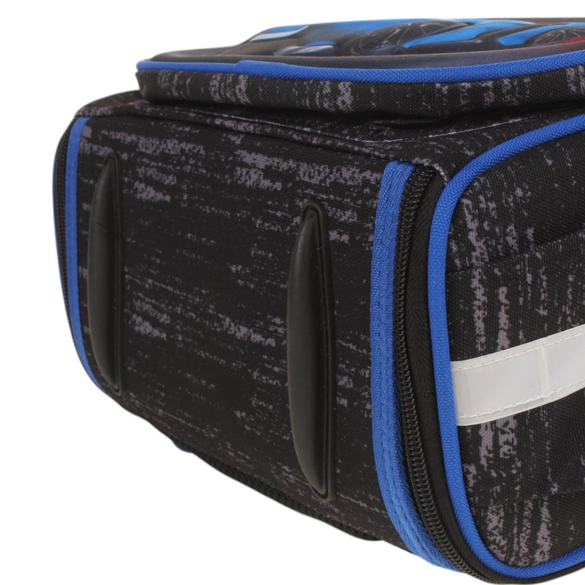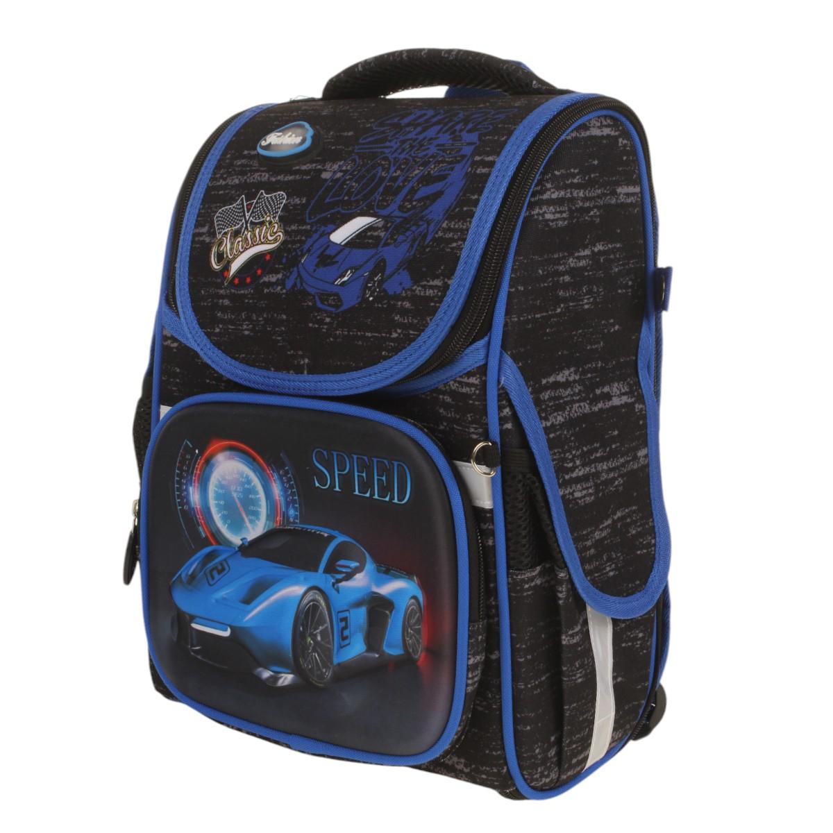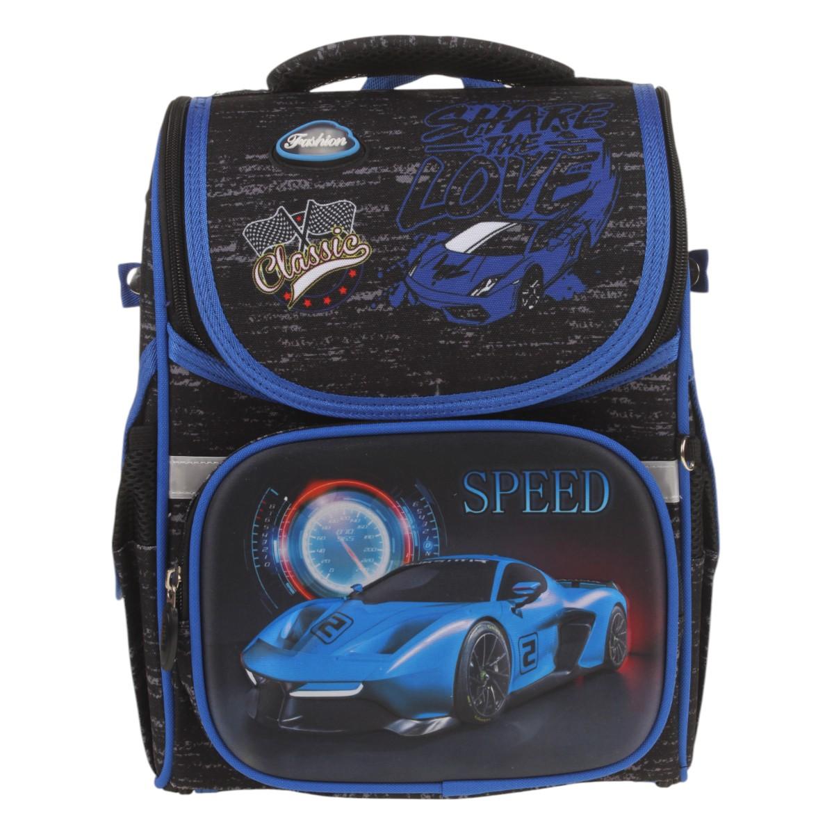 Ранец школьный "Машина" с ортопедической спинкой, 25х14х33 см, черный/синий, для мальчика