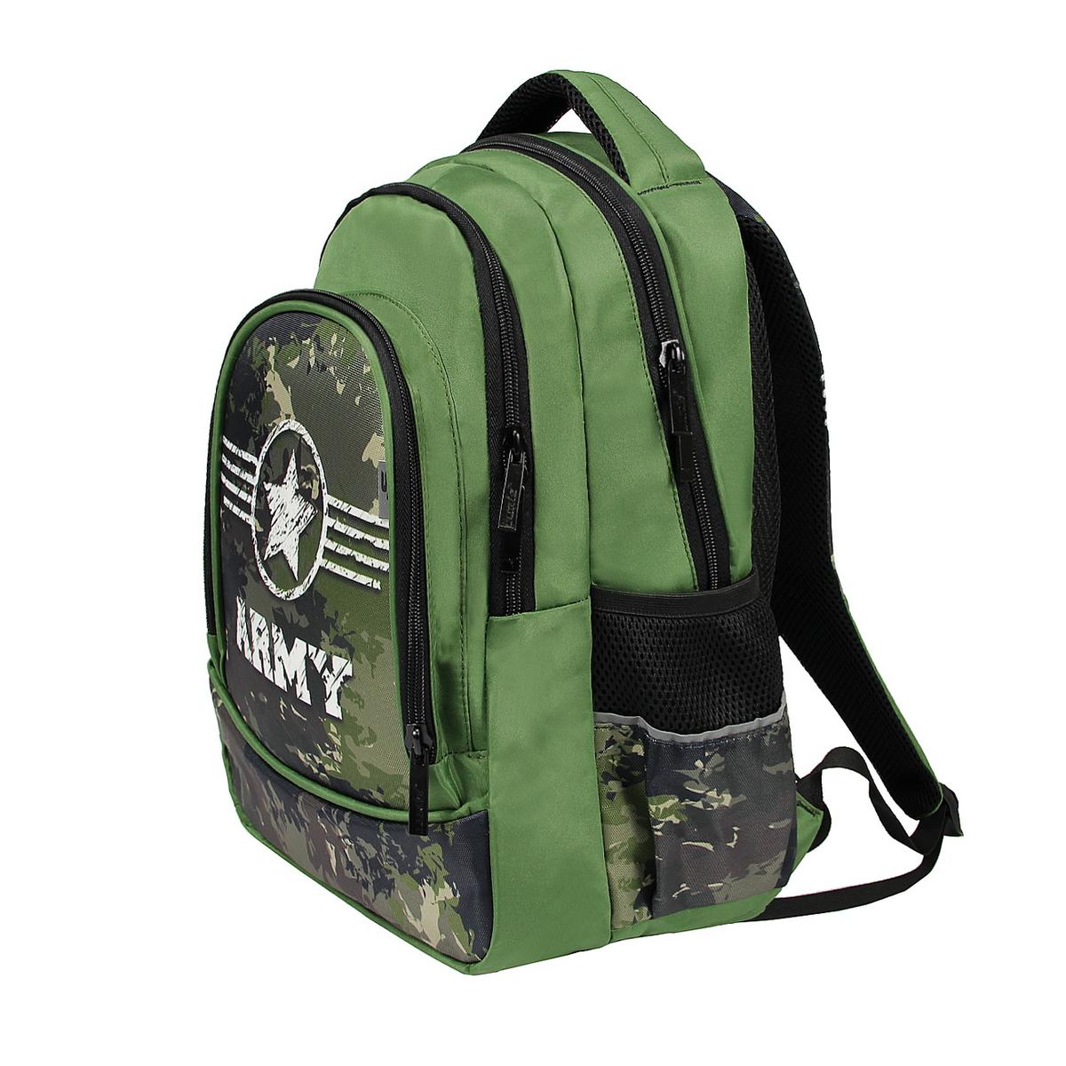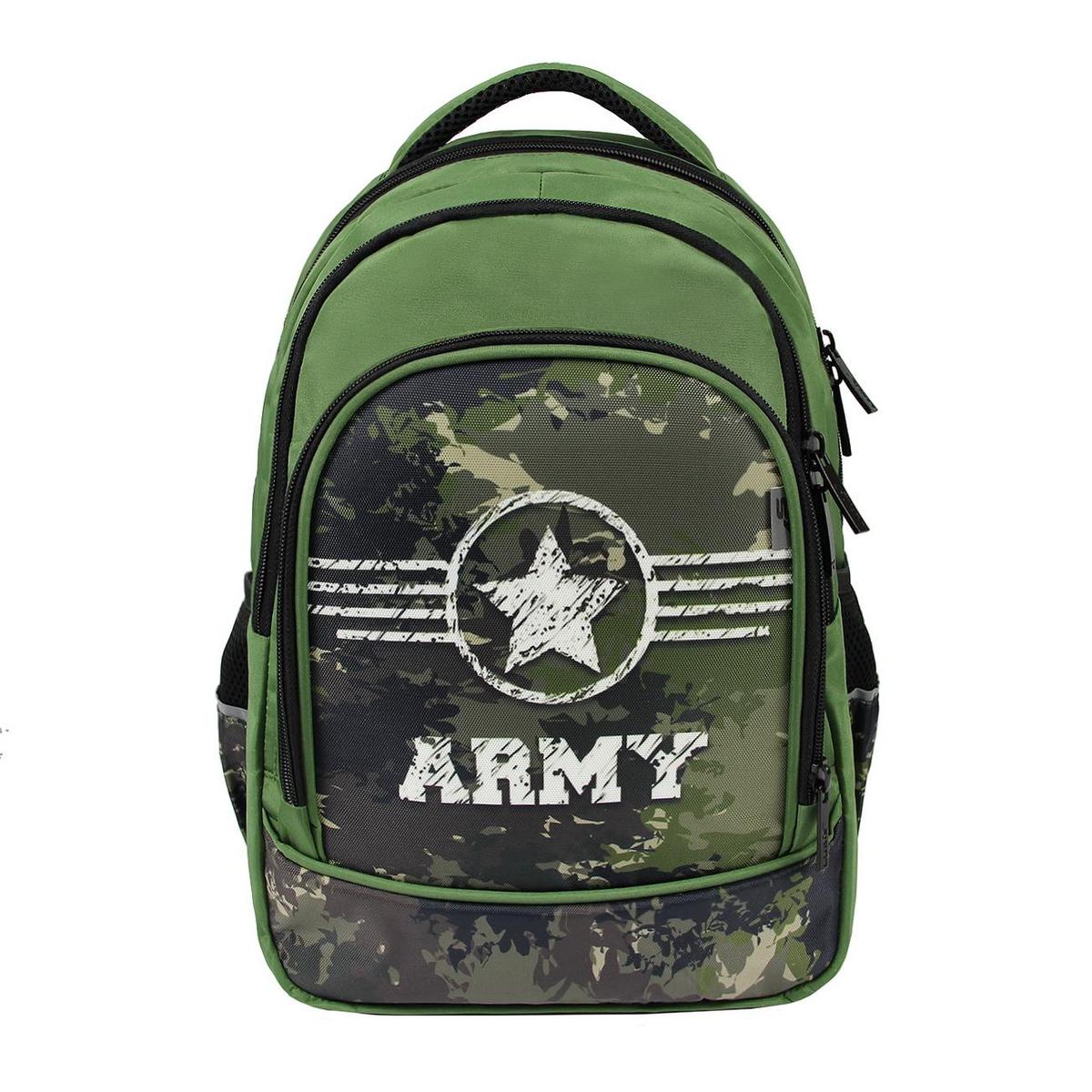 Ранец отлично подходит для учеников начальной школы, сочетая стильный дизайн и функциональность. Звезда и надпись 'ARMY' на передней панели добавляют характер вашему выбору.