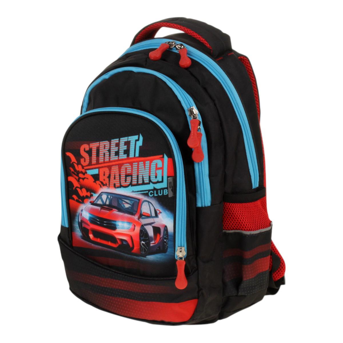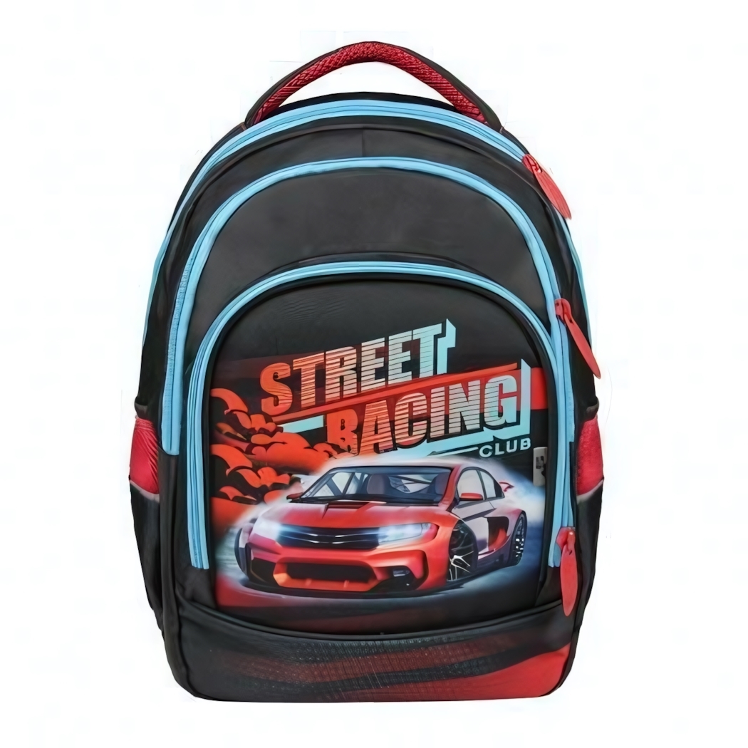 Лёгкий школьный ранец с динамичным дизайном «STREET RACING CLUB» сочетает эргономику и функциональность. Анатомическая спинка с дышащими вставками обеспечивает правильное распределение нагрузки, а водоотталкивающий материал ПВХ защитит учебники от дождя и снега.