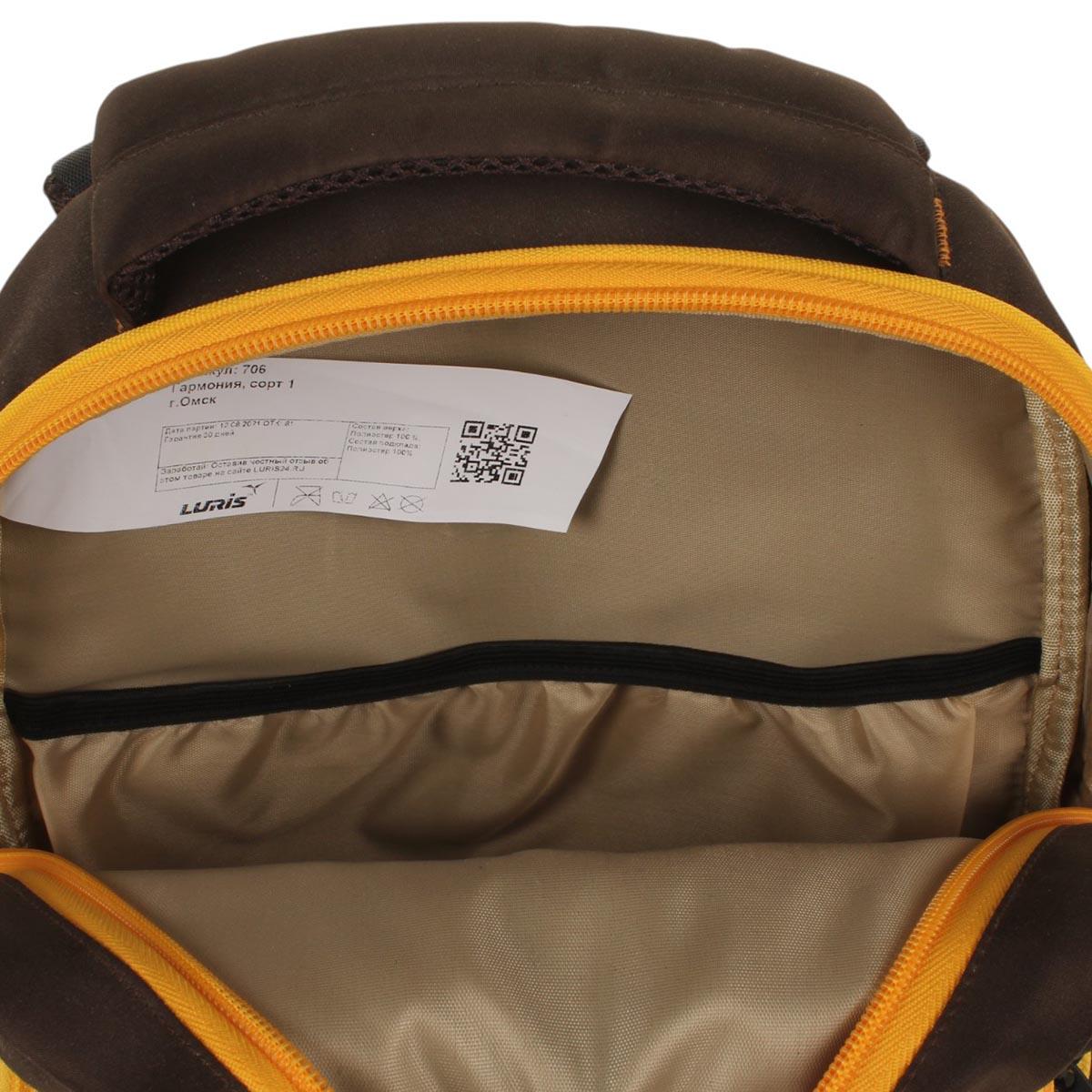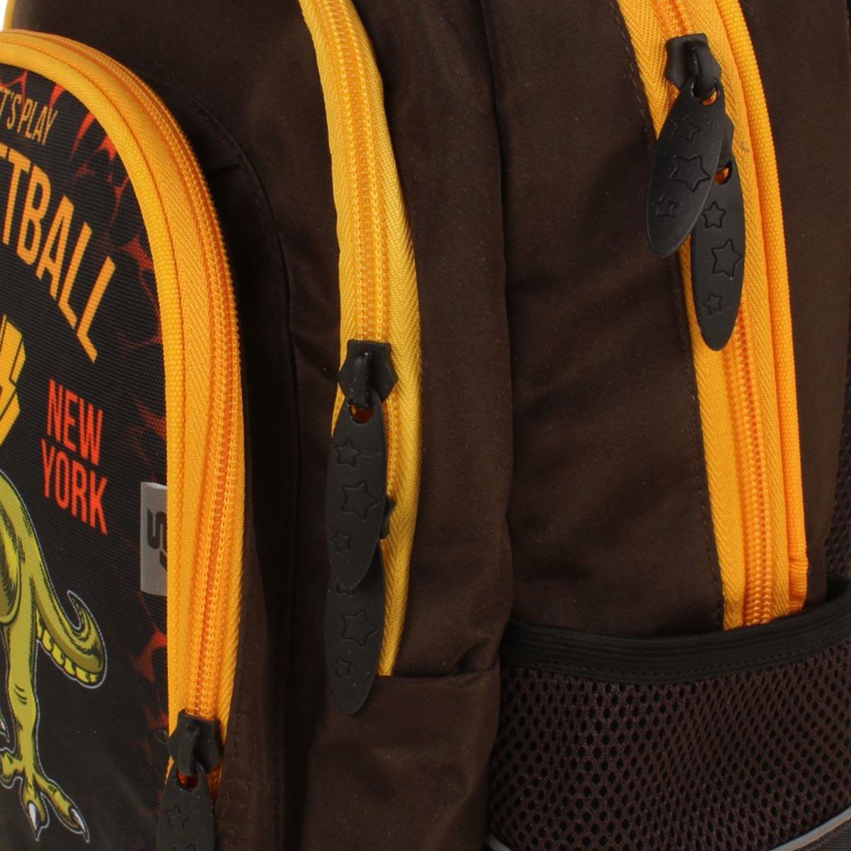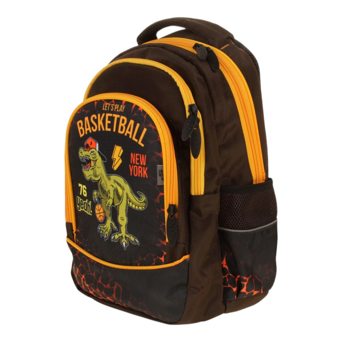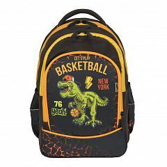 Ранец школьный "Дино-баскетбол" с анатомической спинкой, 40х28х18см, коричневый/оранжевый, 1 отделение, 2 кармана