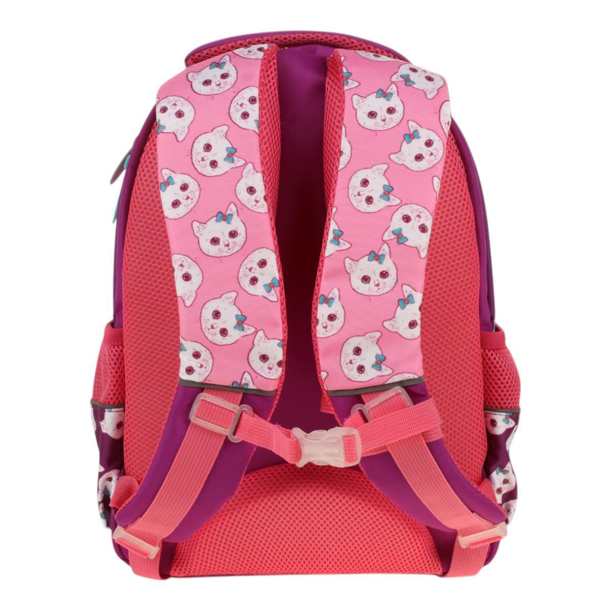 Ранец школьный "Котики" с анатомической спинкой, 40х28х18см, фиолетовый/розовый, 1 отделение, 2 кармана