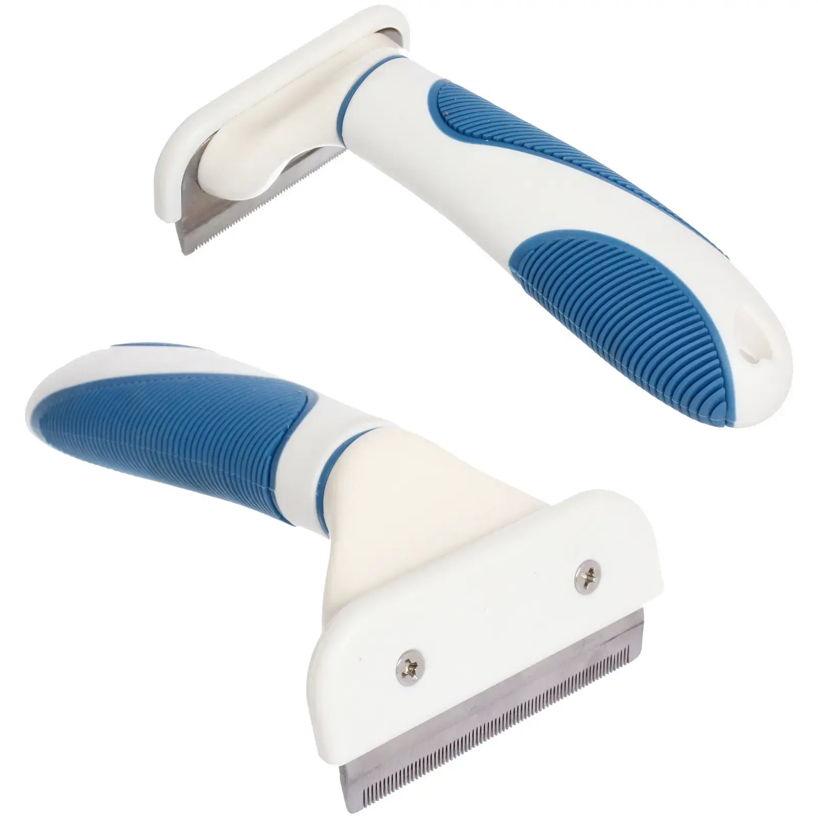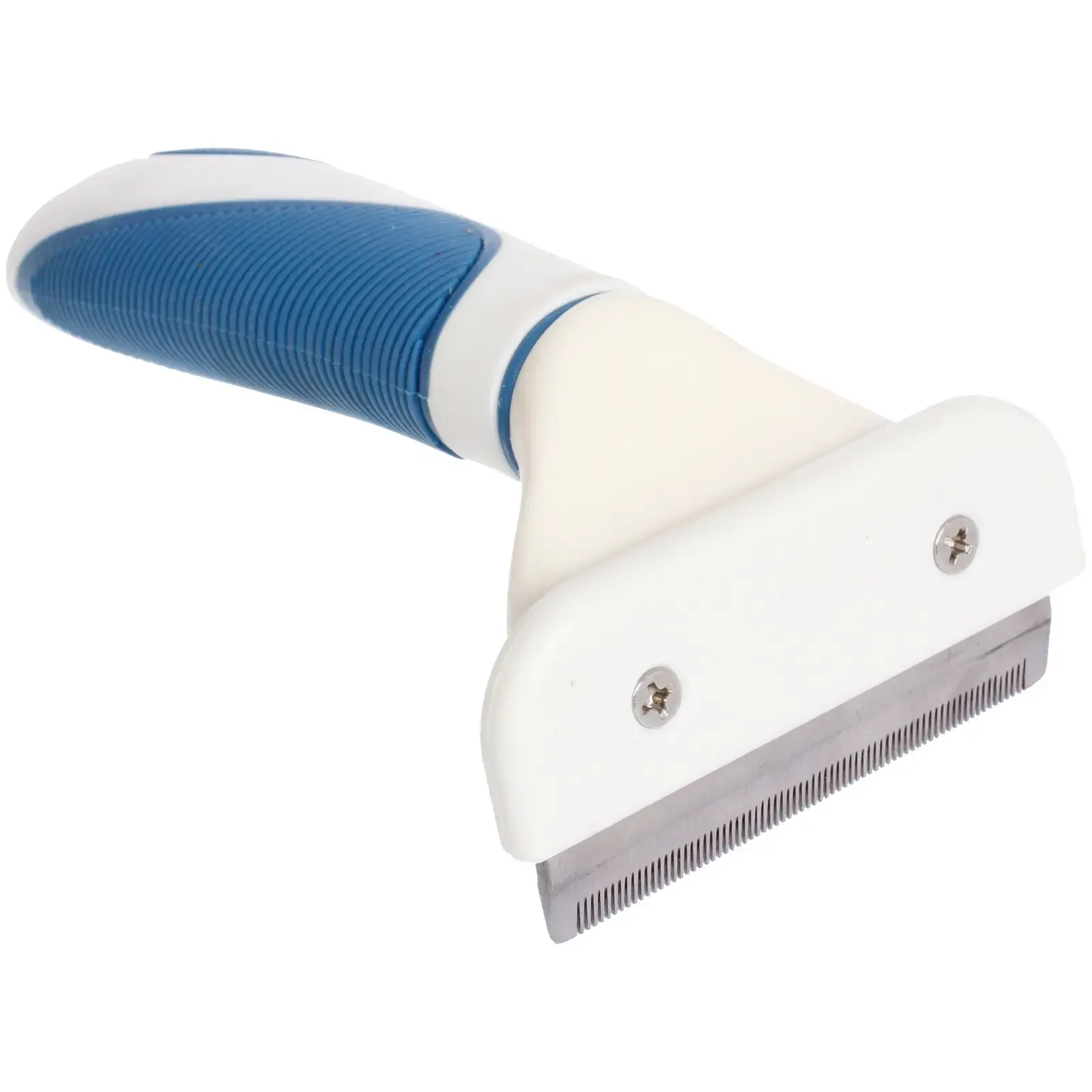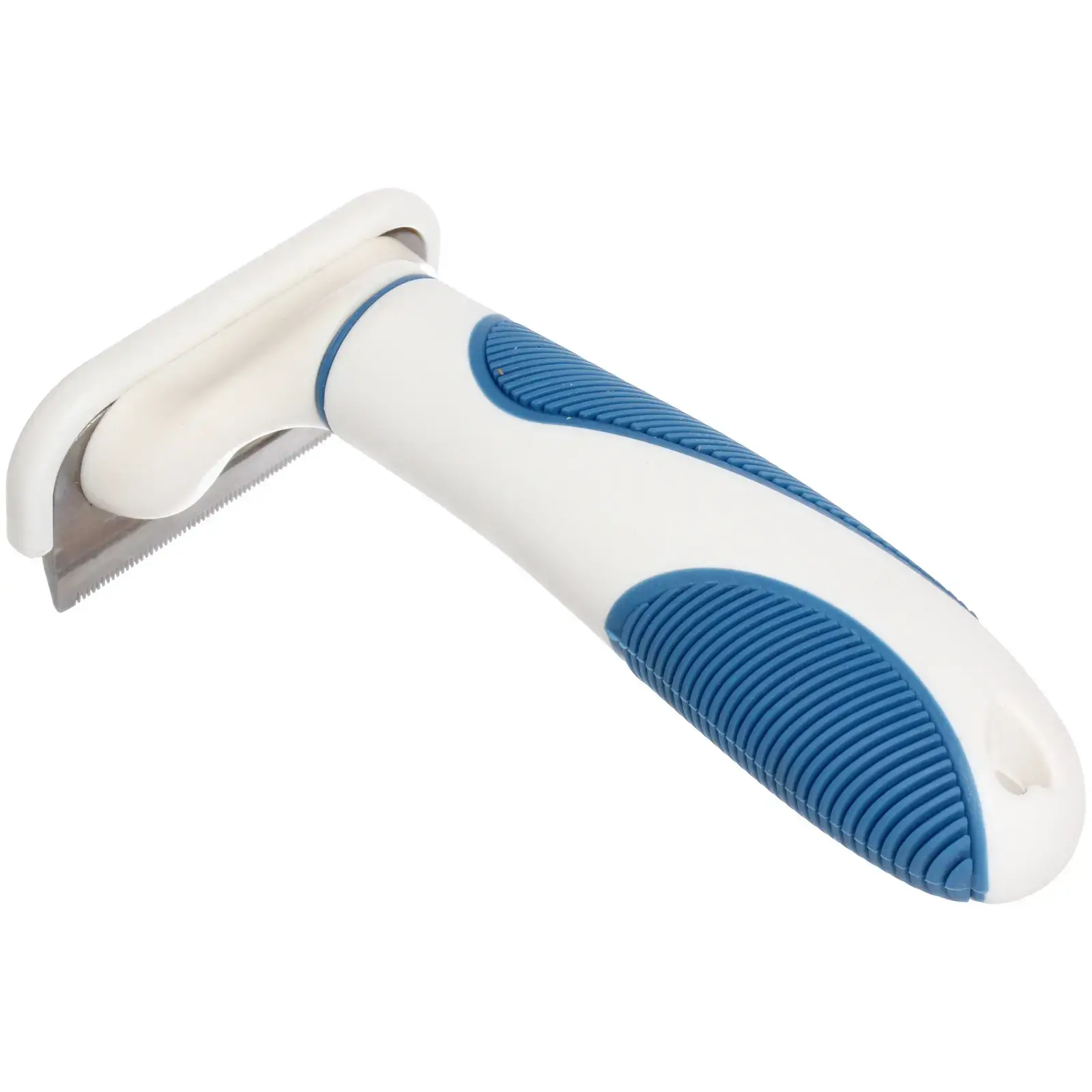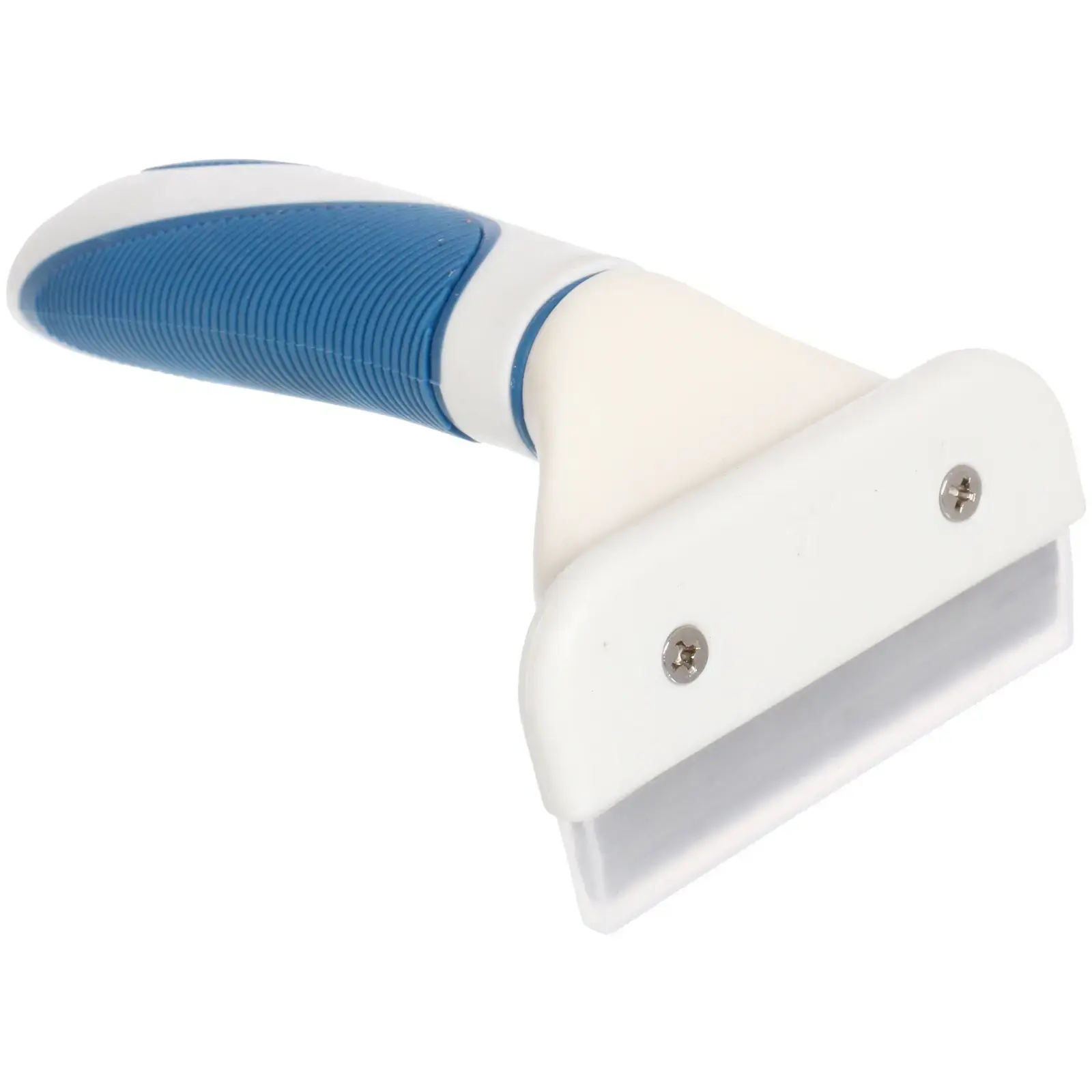 Расческа выполнена из качественных материалов: металл, пластик и резина. Белый и голубой цвета делают ее стильной и привлекательной. Эргономичный дизайн ручки обеспечивает комфортное использование, а компактные размеры позволяют легко хранить расческу в любом месте. Не упустите возможность сделать уход за шерстью вашего питомца простым и приятным!