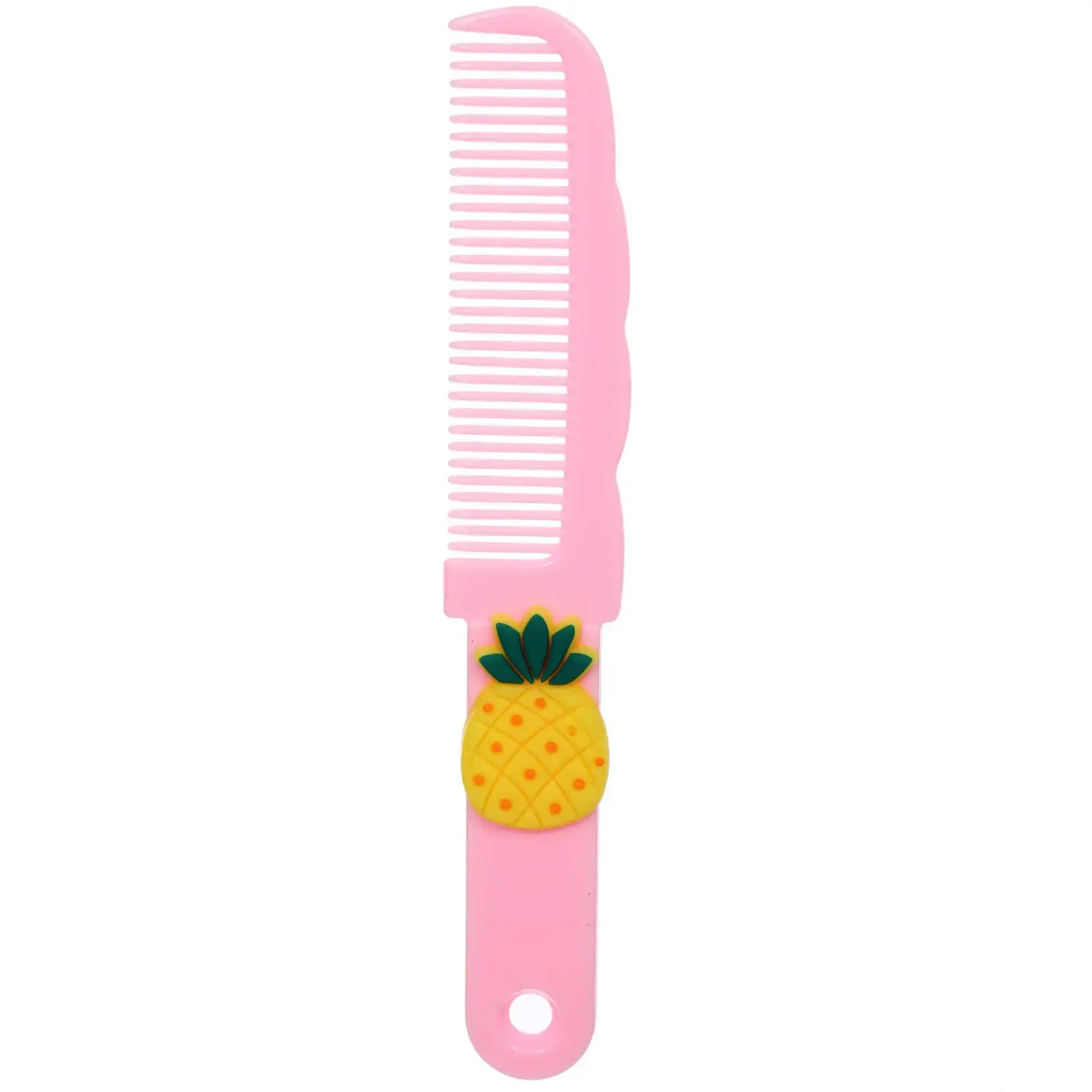 Изготовленная из качественного пластика, расческа устойчива к повреждениям и легко очищается. Декоративный ананас выполнен в ярких желтых и зеленых цветах, что делает расческу привлекательной для детей. Благодаря отверстию для подвешивания, вы можете удобно хранить ее в ванной или детской комнате.