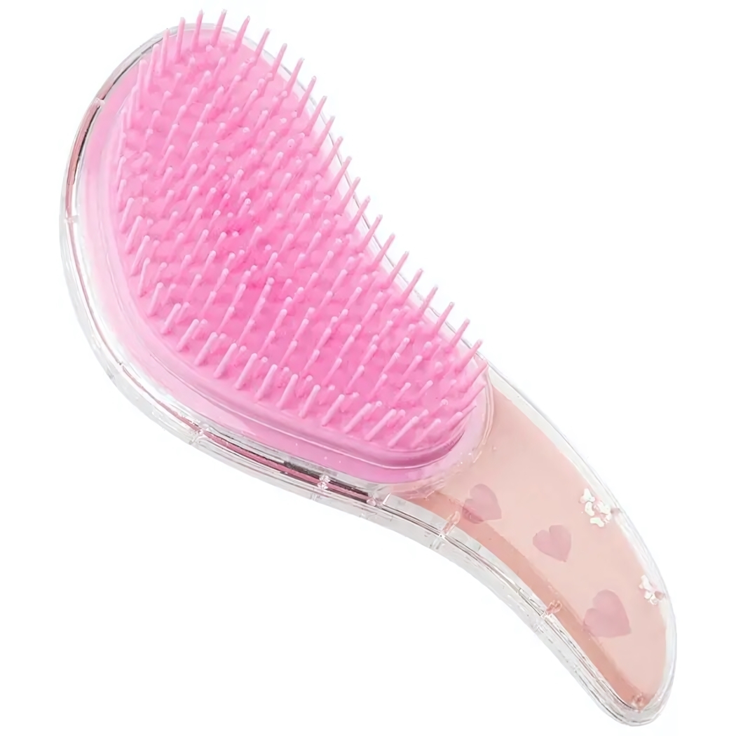 Размер изделия: 18 см в длину. Прочный пластиковый корпус устойчив к деформации, а внутренние декоративные элементы с розовыми сердечками создают приятный визуальный акцент. Подходит для всех типов волос: от тонких и прямых до густых кудрей.