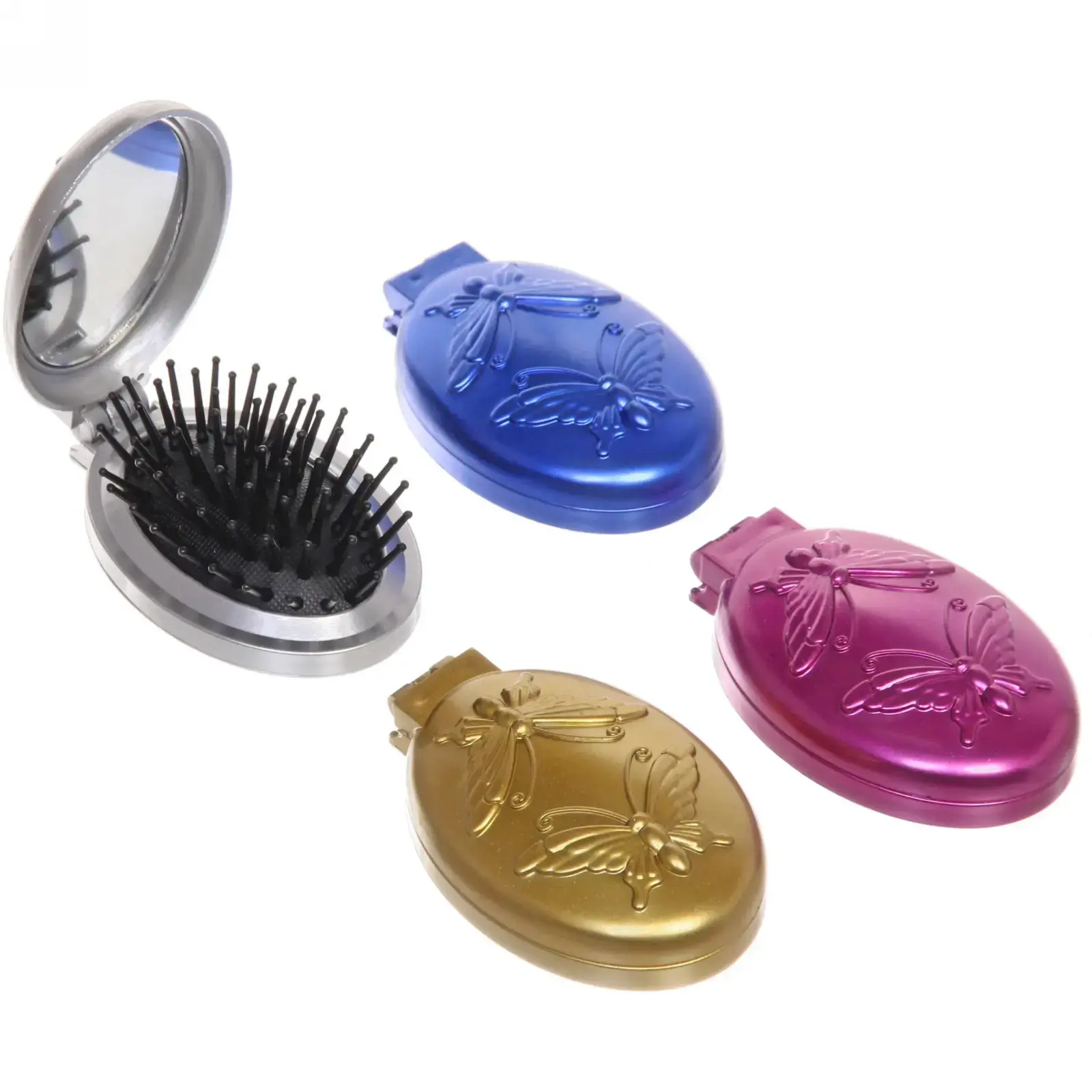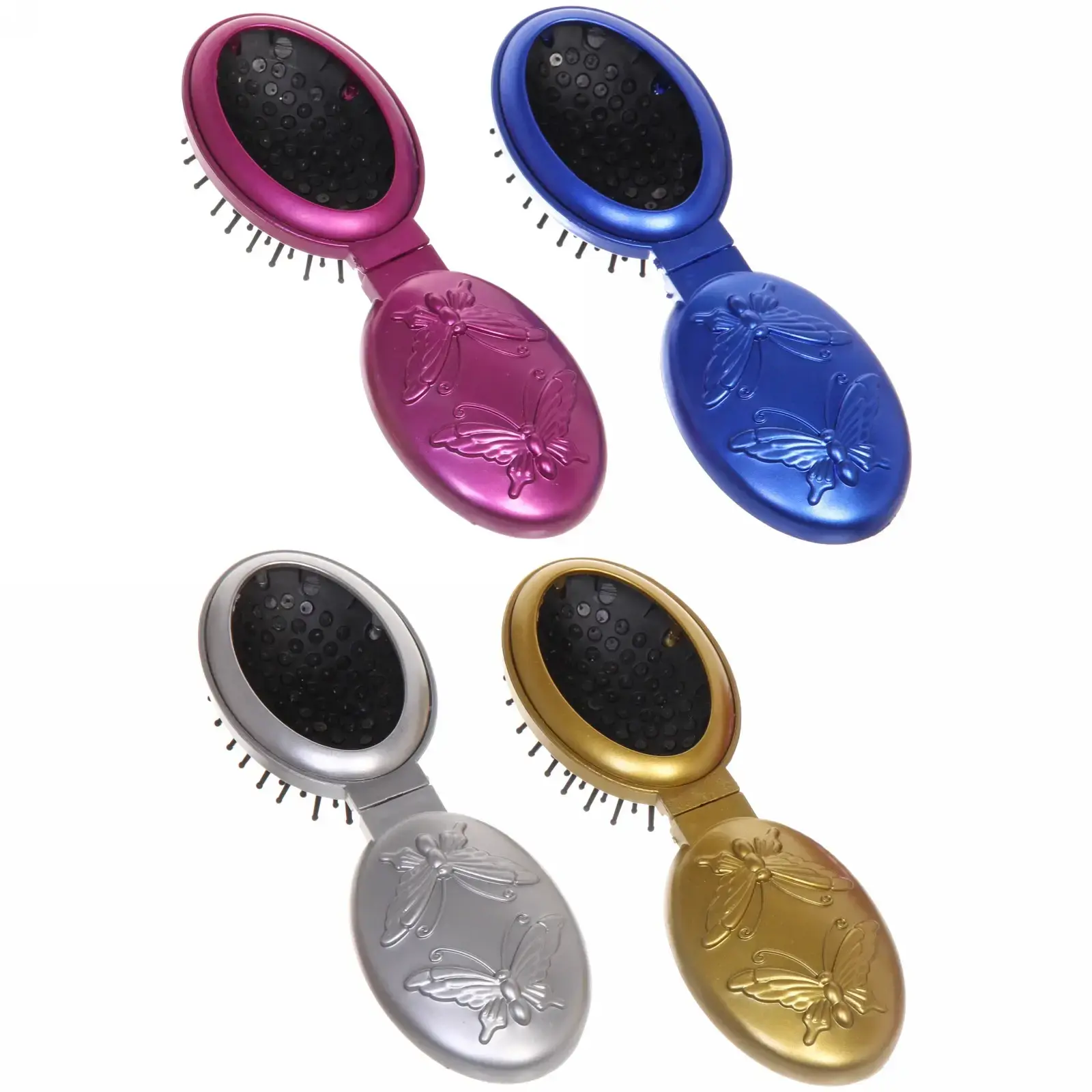 Выбирая расческу «Beauty Room», вы получаете не только стильный аксессуар, но и практичное решение для ухода за волосами. Металлический корпус с глянцевой поверхностью и рельефным узором в виде бабочек придаёт изделию изысканный вид. Доступные цвета — серебристый, синий, золотой и розовый — позволят выбрать именно тот вариант, который вам по душе.