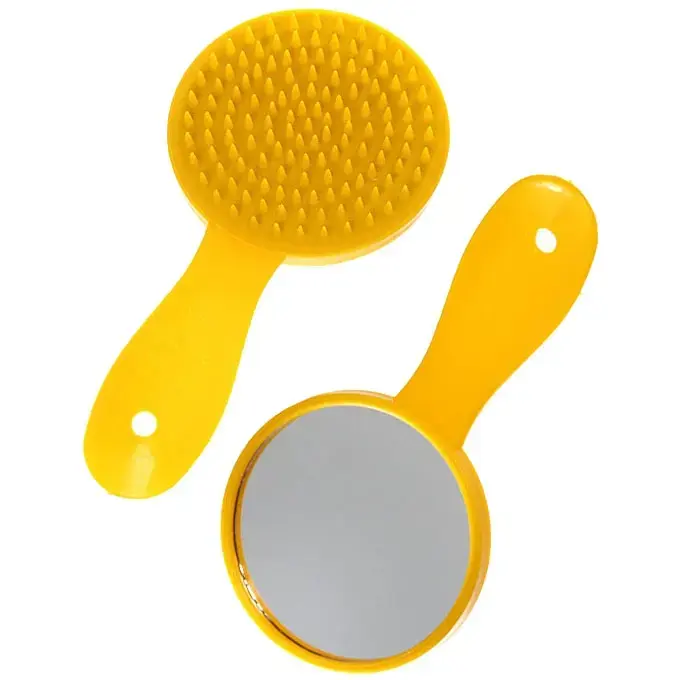 Расческа массажная 'Антикризисная' с зеркалом, пластик, желтая, 13см