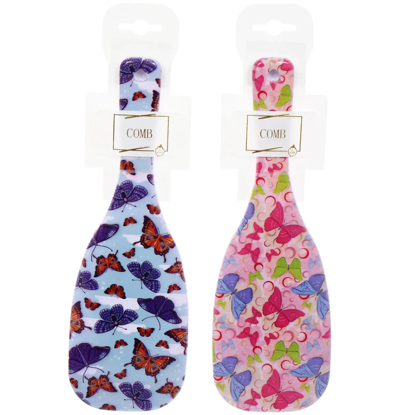 Размер расчески составляет 24 см в длину и 8 см в ширину, что делает ее удобной для использования. Каждый экземпляр представлен в уникальном дизайне, включая розовый, светло-голубой и светло-зеленый цвета. Расческа имеет отверстие в ручке для удобного хранения и подвешивания. Не упустите возможность сделать уход за волосами более приятным и эффективным!