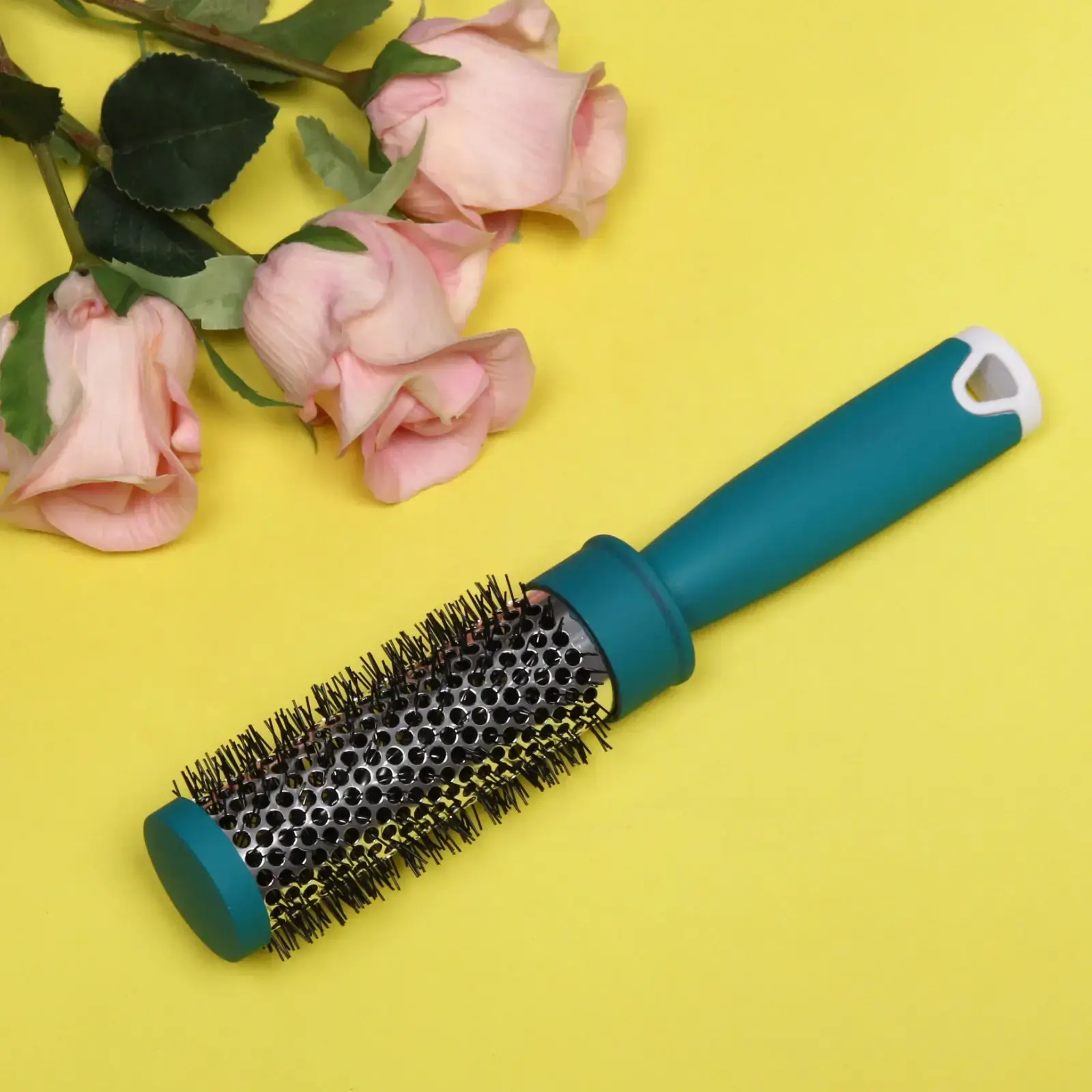 Почему стоит выбрать именно эту расческу? Во-первых, её уникальный дизайн с металлическим корпусом и закругленными штырьками позволяет легко распутывать волосы, не повреждая их структуру. Во-вторых, тёмно-бирюзовый цвет и стильный внешний вид делают её не только функциональным, но и эстетически привлекательным аксессуаром для вашего туалетного столика.