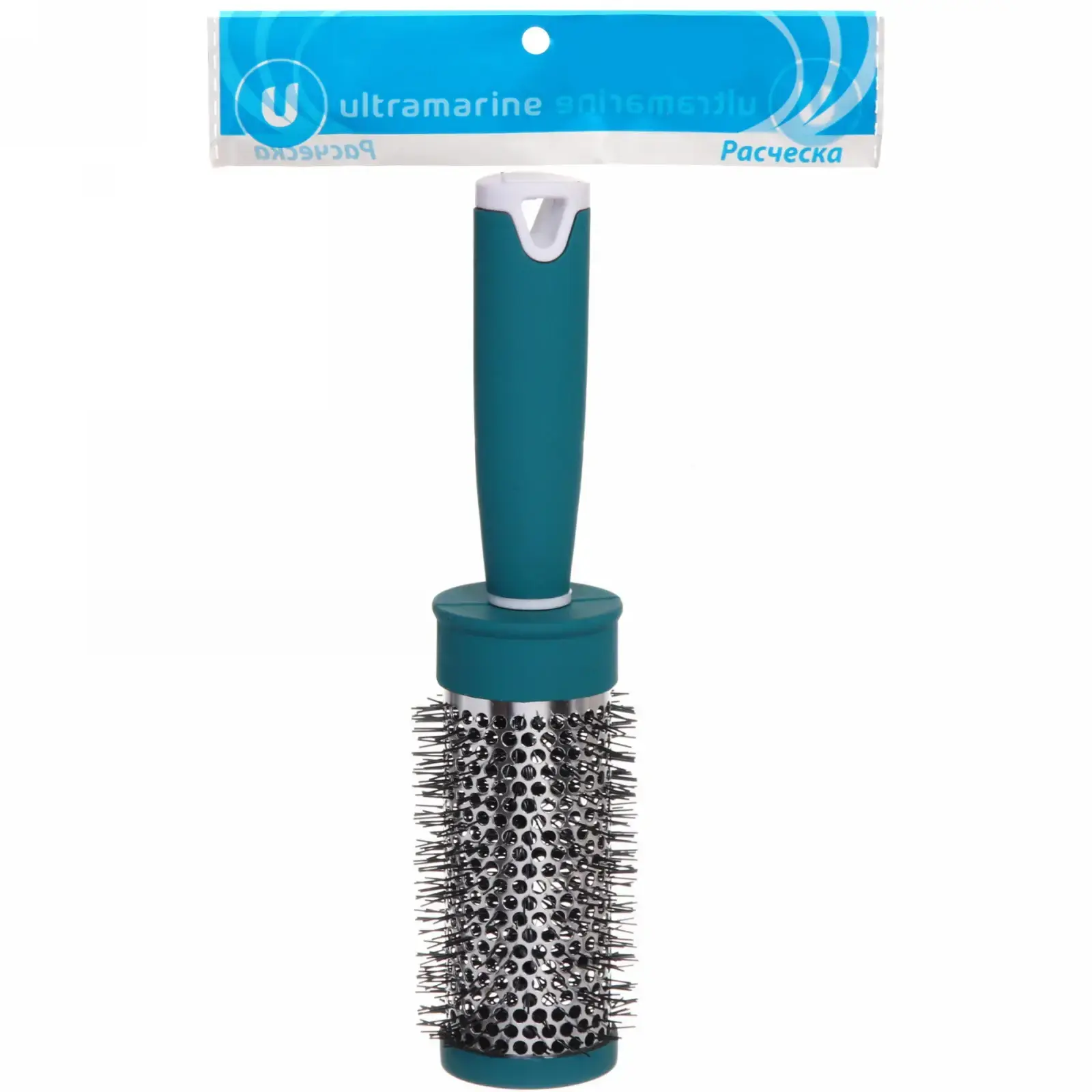 Расческа длиной 24 см имеет удобную ручку из пластика тёмно-бирюзового цвета (длина ручки около 12 см). Диаметр рабочей части составляет 4 см, что оптимально для создания лёгких волн и объёма.