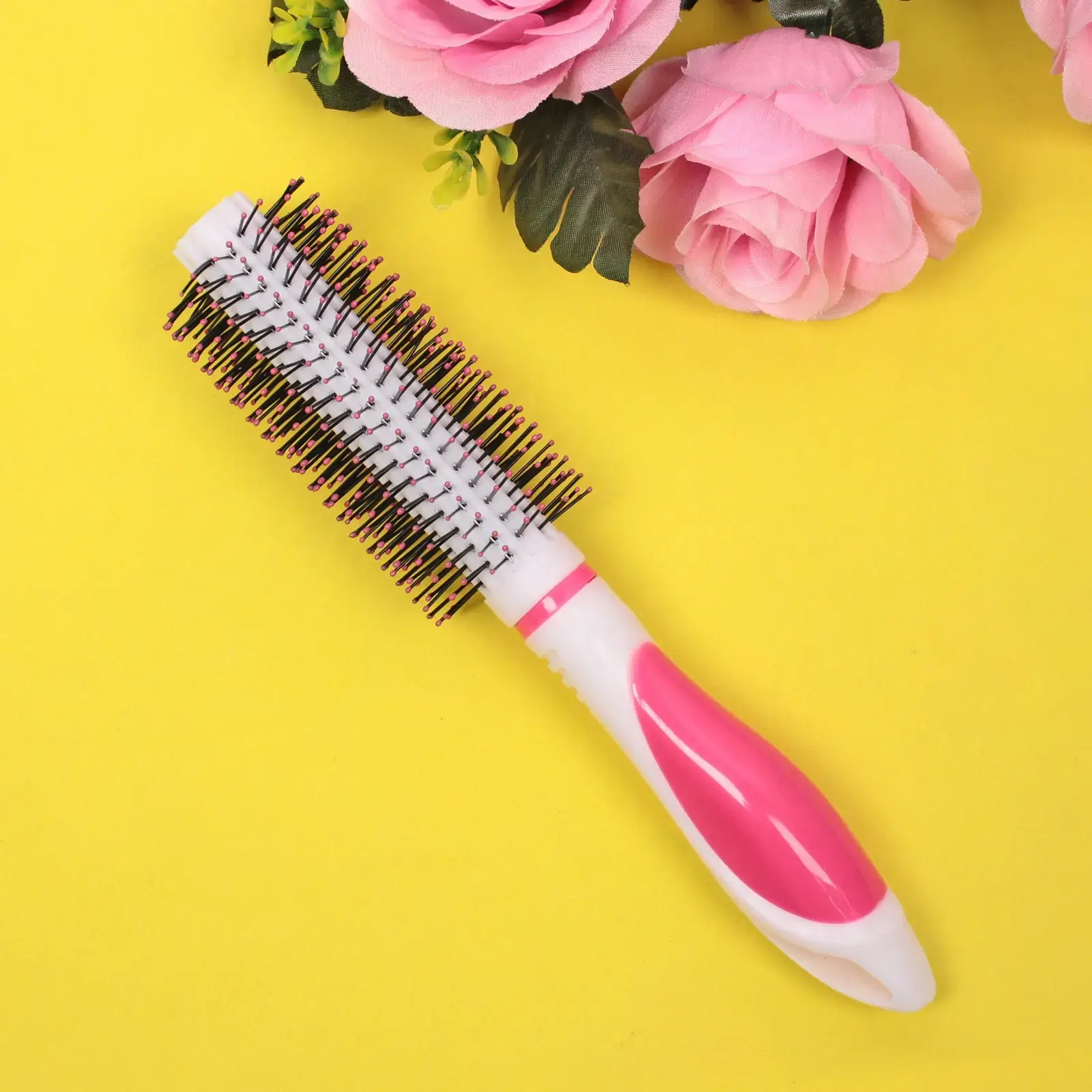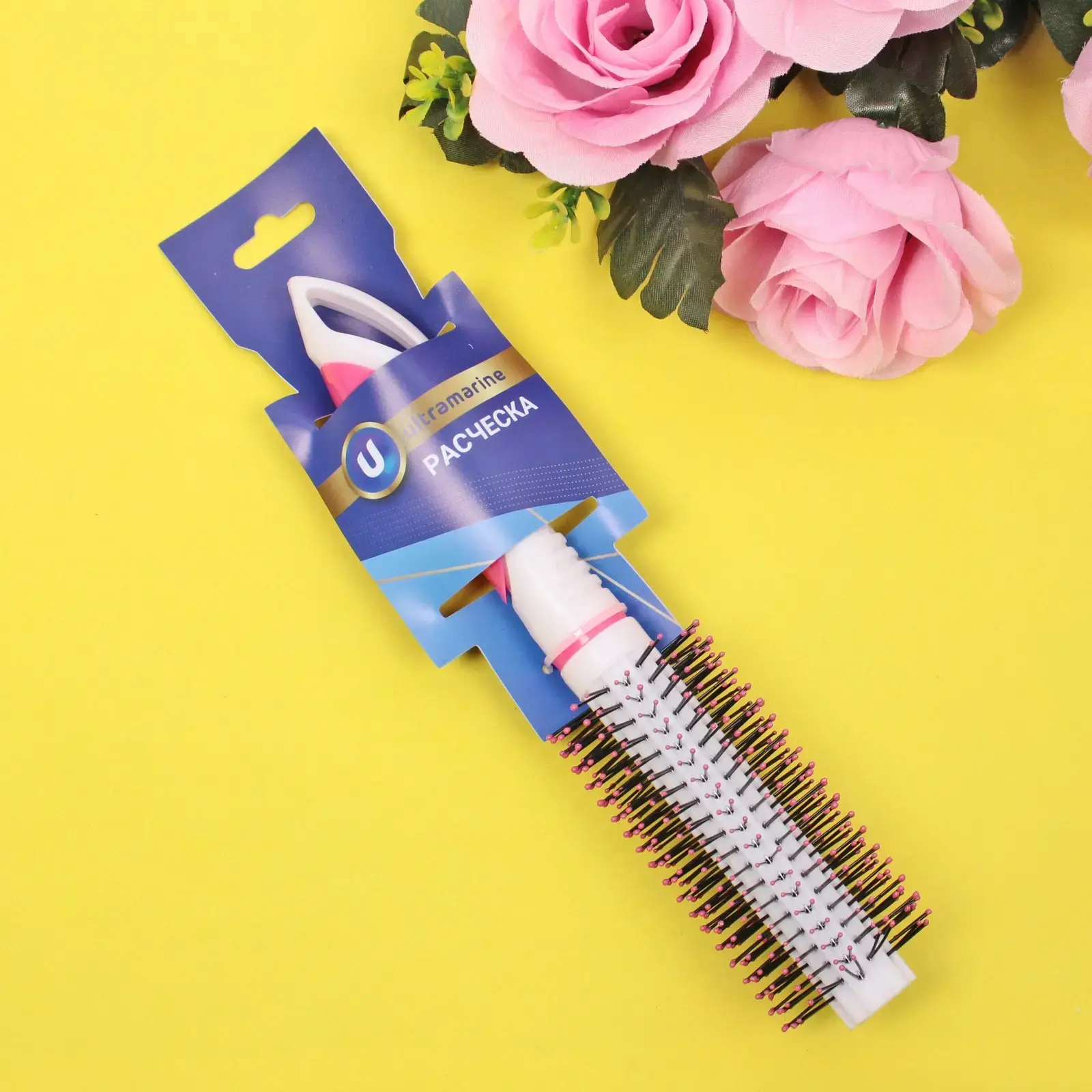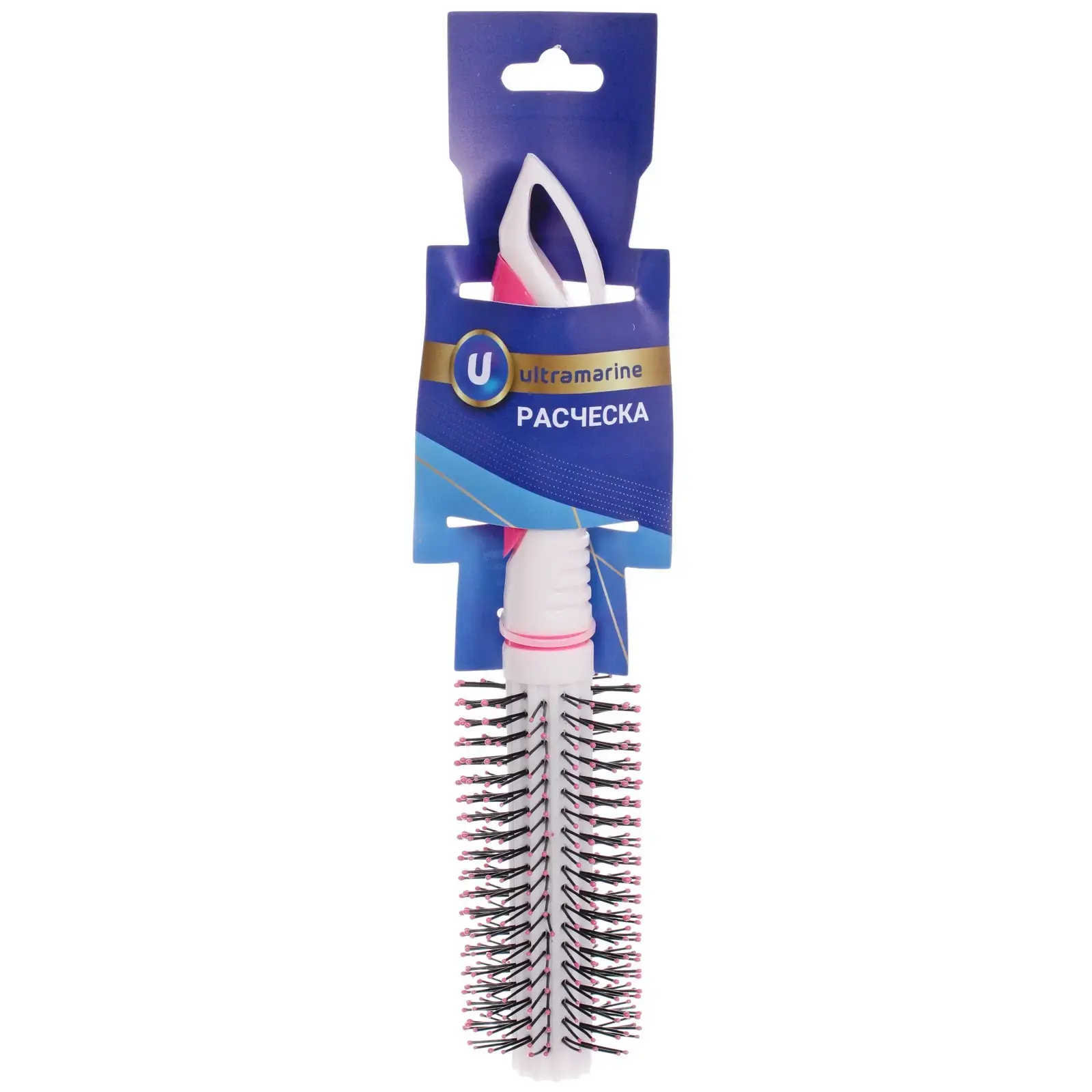 Расческа массажная 'ЭКЛЕР' d-4/5см, 22см, пластик бело-розовый