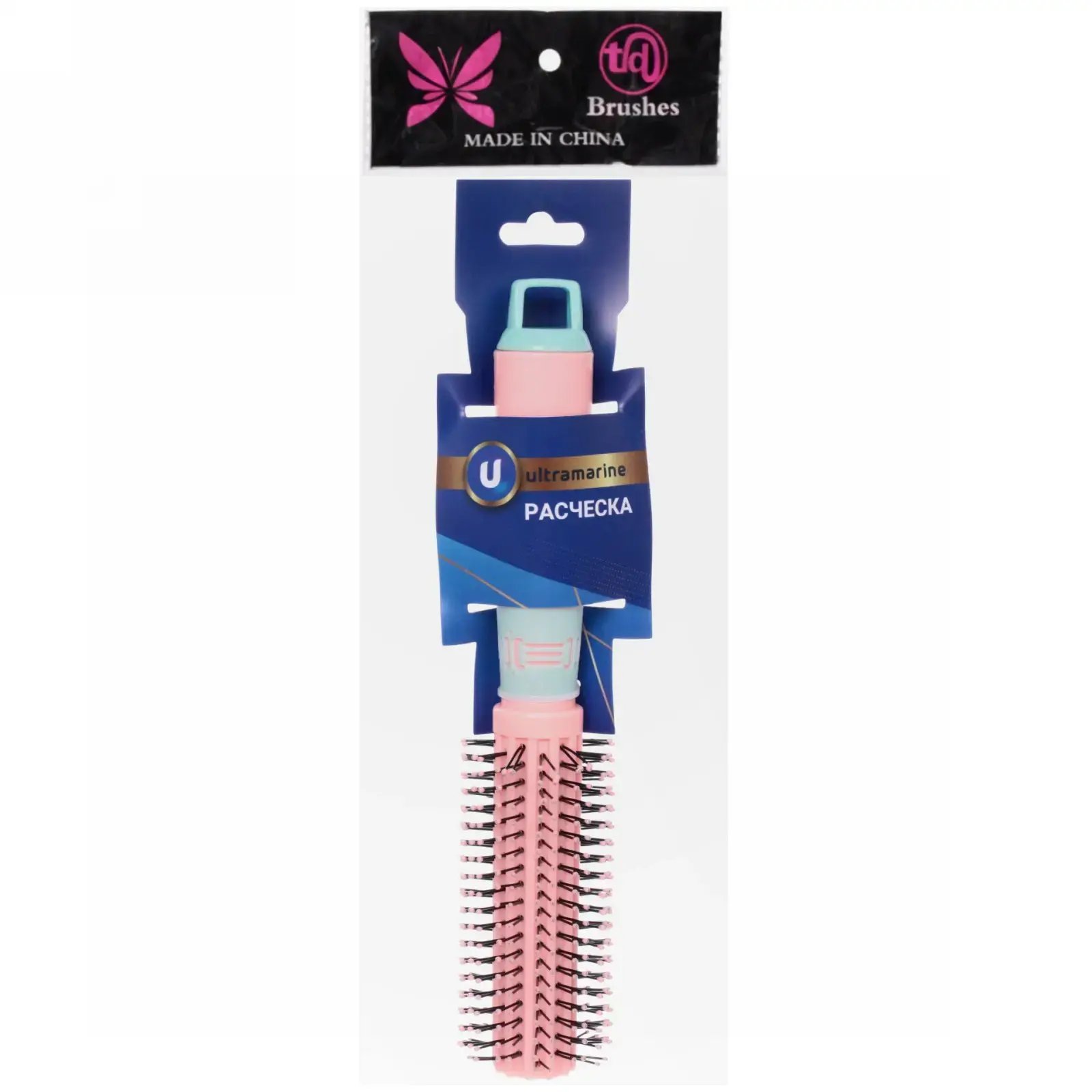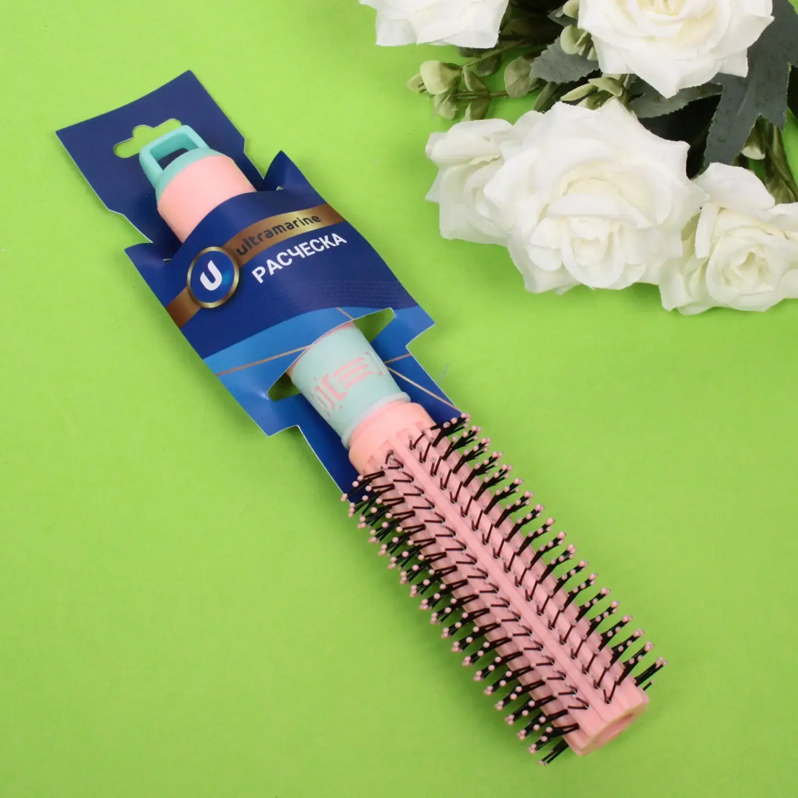 Расческа предназначена для укладки и распутывания волос, что делает её идеальной для всех типов волос. Её цилиндрическая форма и закругленные края позволяют легко проходить по волосам, не повреждая их структуру. Удобная ручка обеспечивает надежный захват, а легкий вес делает использование расчески комфортным даже при длительном укладывании.