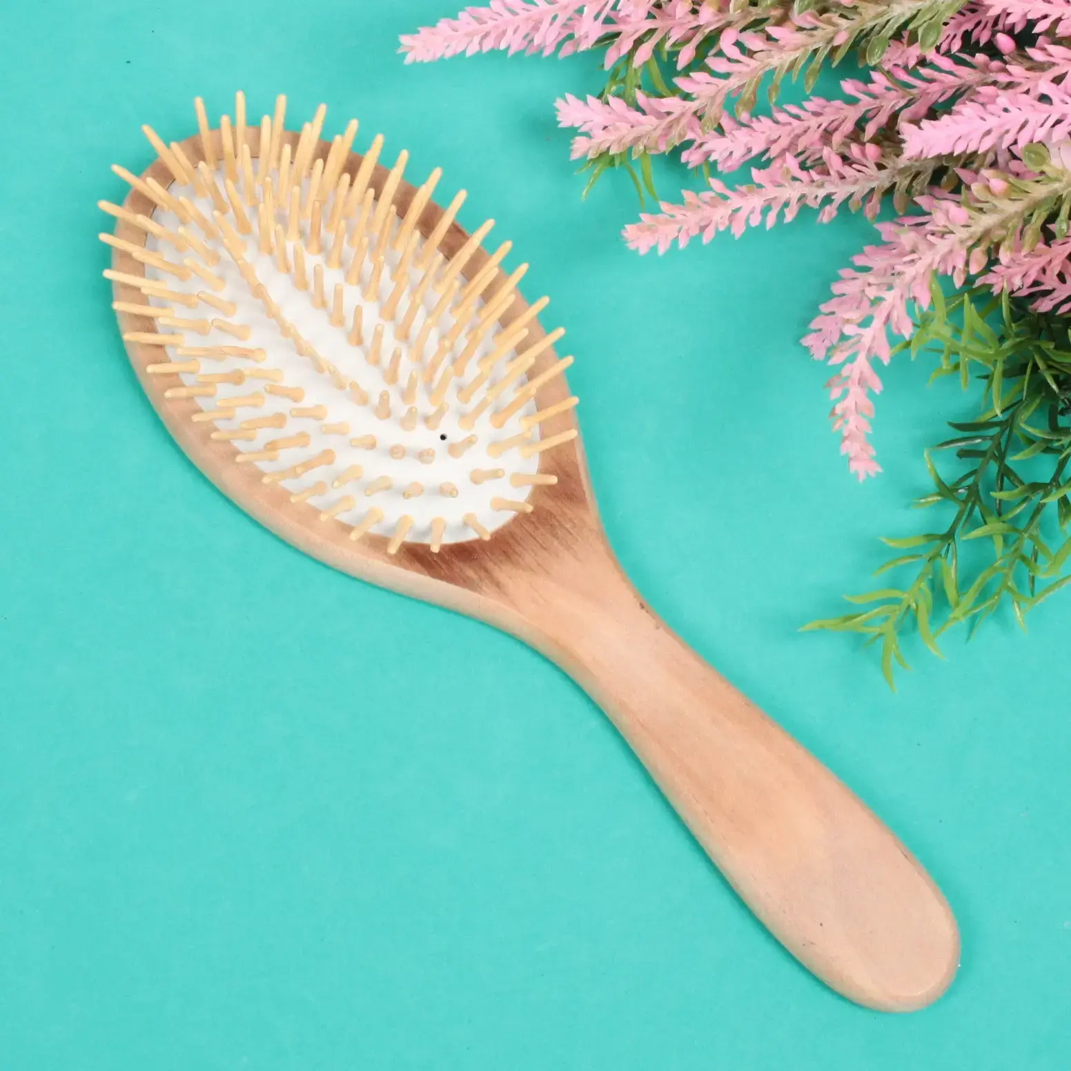 Массажная расческа из дерева с пластиковыми зубьями деликатно стимулирует кровообращение, обеспечивая ежедневный комфорт во время расчесывания. Идеальный выбор для тех, кто ценит натуральные материалы и заботится о здоровье волос.