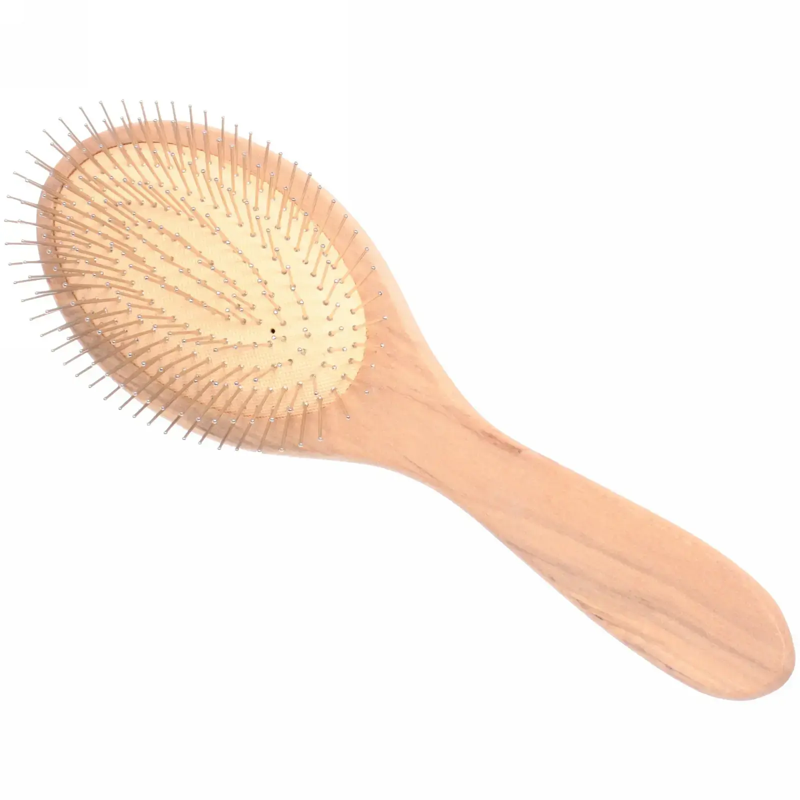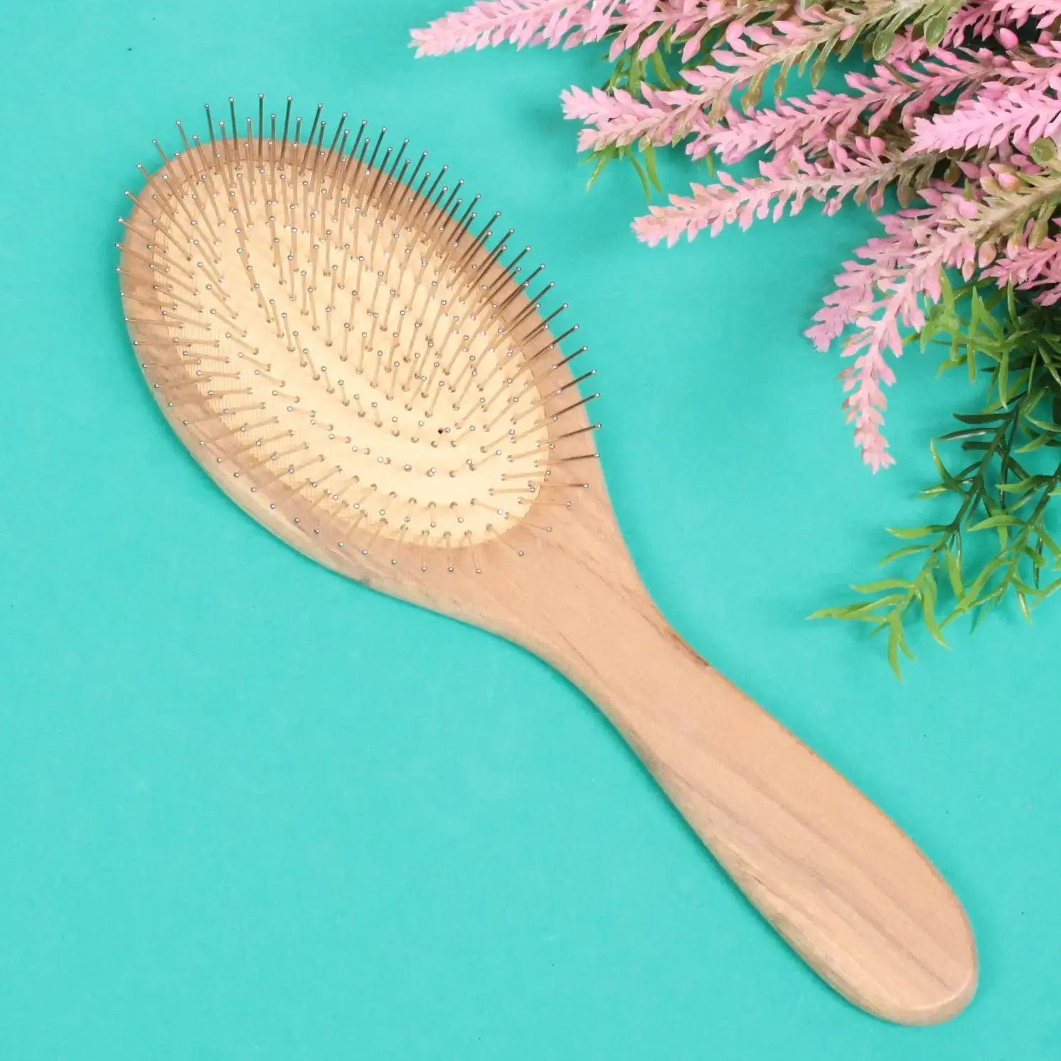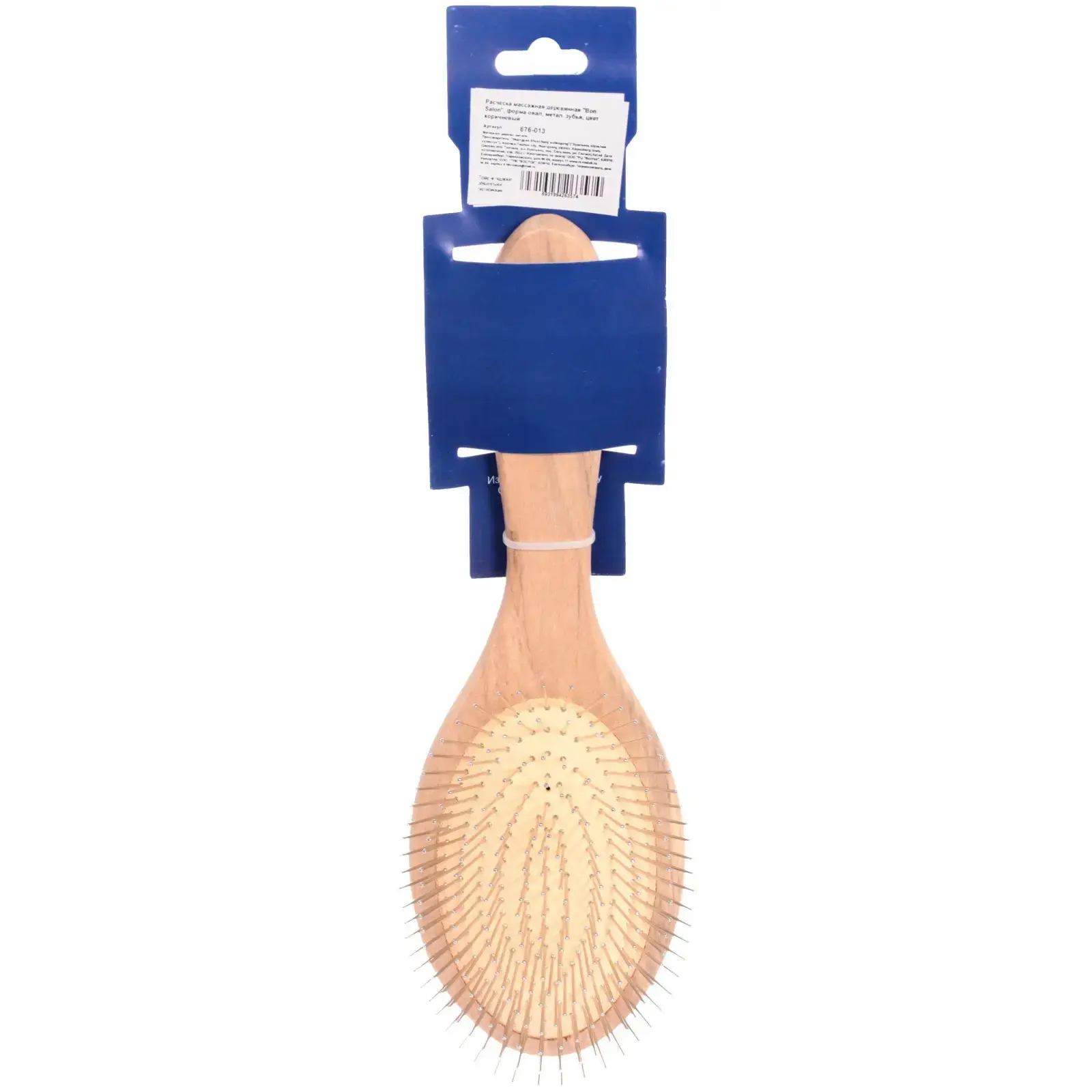 Массажная расческа «Bon Salon» с металлическими зубьями, дерево, овал, 8х25см, подложка ультрамарин