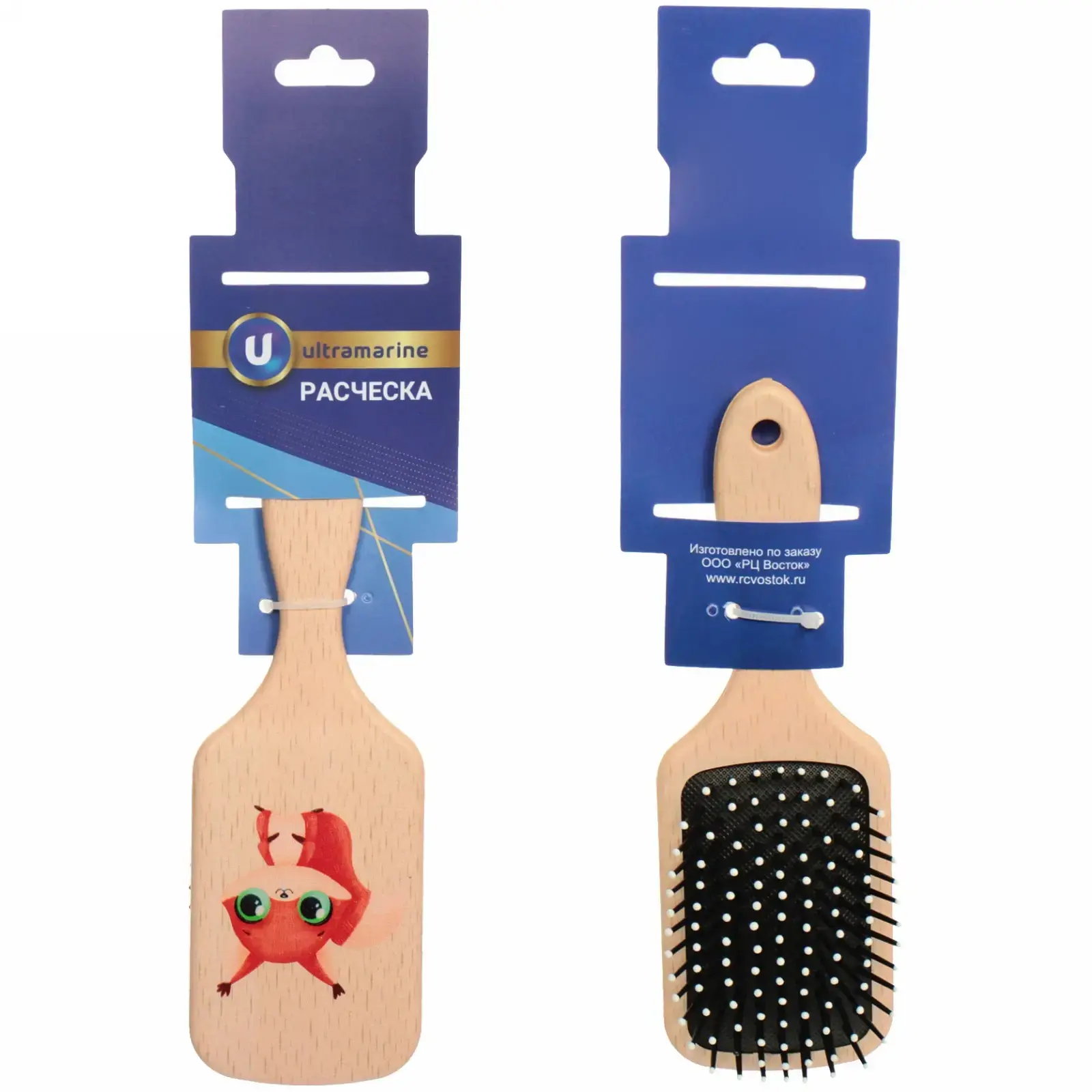 Основание изготовлено из натурального дерева, щетина – из безопасного пластика. Прямоугольная форма обеспечивает удобный захват, а компактные размеры позволяют брать расческу с собой в сумочке.