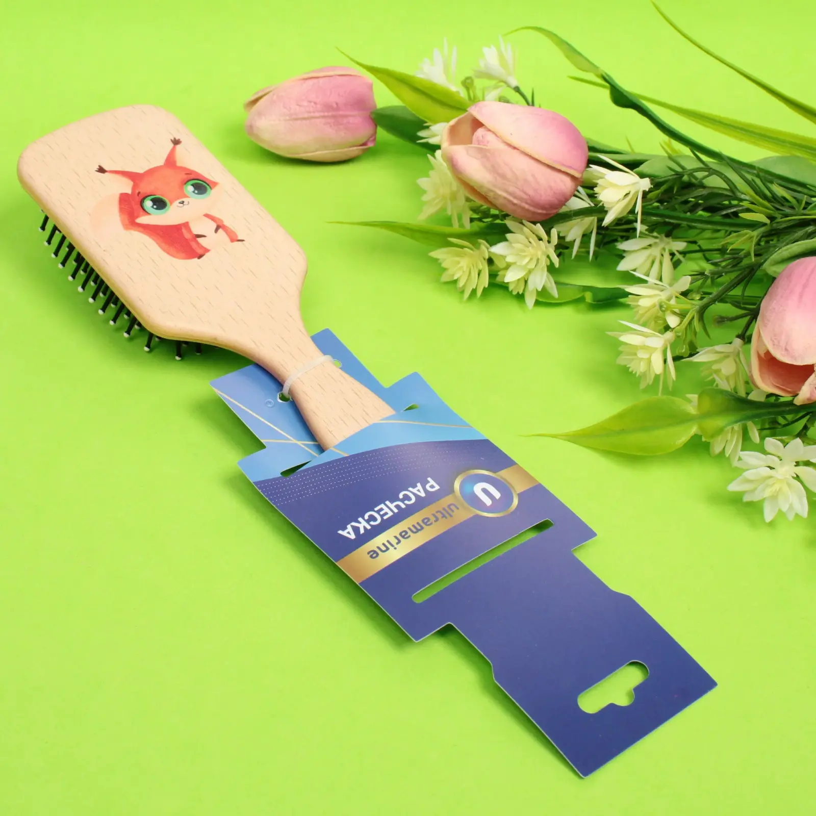 Расческа массажная деревянная 'KaSkada - Лисичка', 17.7х5.8см, щетина с шариками