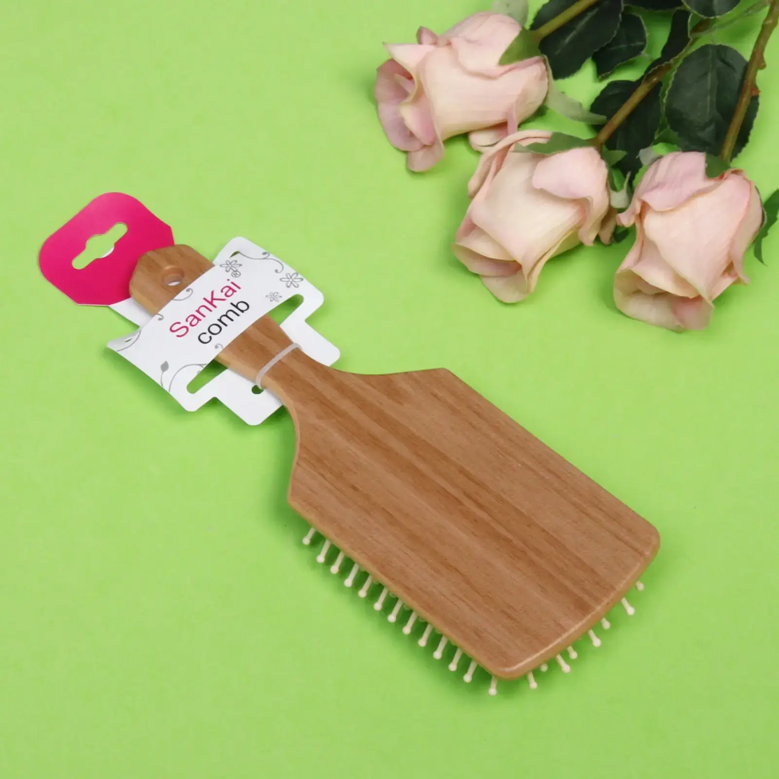 Расческа массажная деревянная «KRASSA - Cris» — это ваш надежный помощник в уходе за волосами. Она создана для того, чтобы сделать процесс расчесывания максимально комфортным и приятным. Благодаря своей уникальной конструкции, расческа деликатно распутывает даже самые непослушные волосы, не нанося им повреждений. Пластиковые массажные шарики на кончиках щетинок обеспечивают мягкий массаж кожи головы, что способствует улучшению кровообращения и укреплению волос.