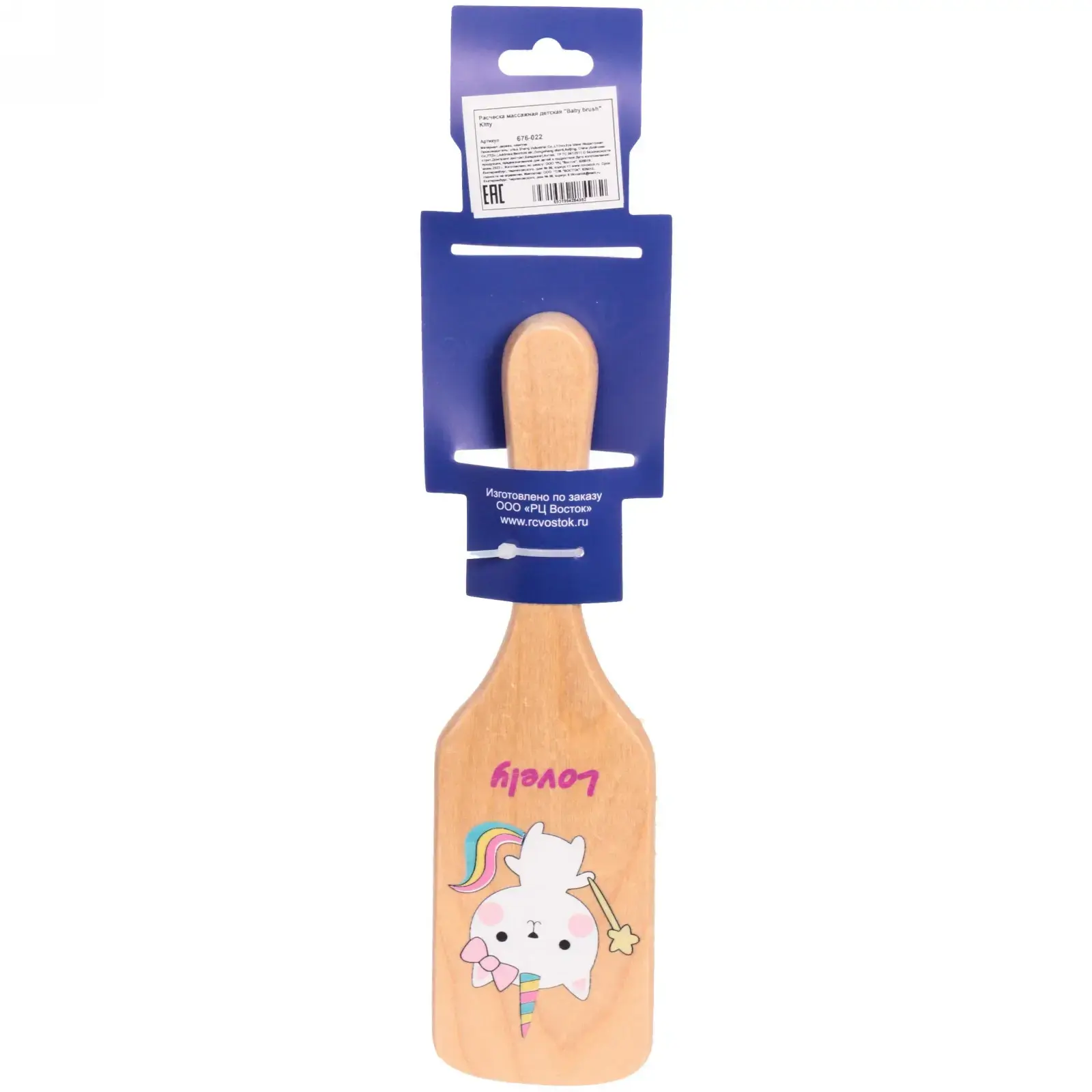 Детская массажная расческа 'Baby brush' Kitty создана для бережного расчесывания нежных волос малышей. Милый дизайн с изображением кошечки-единорога превращает ежедневный уход в радостную игру.