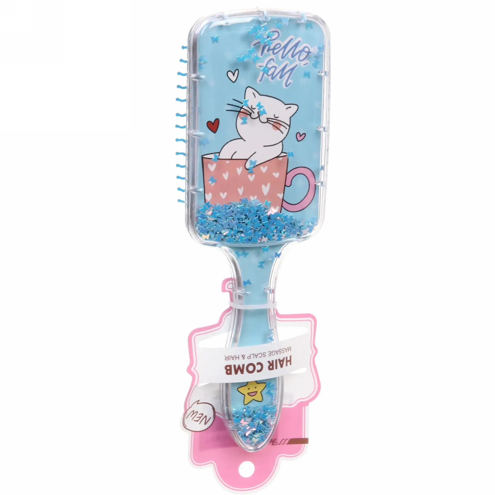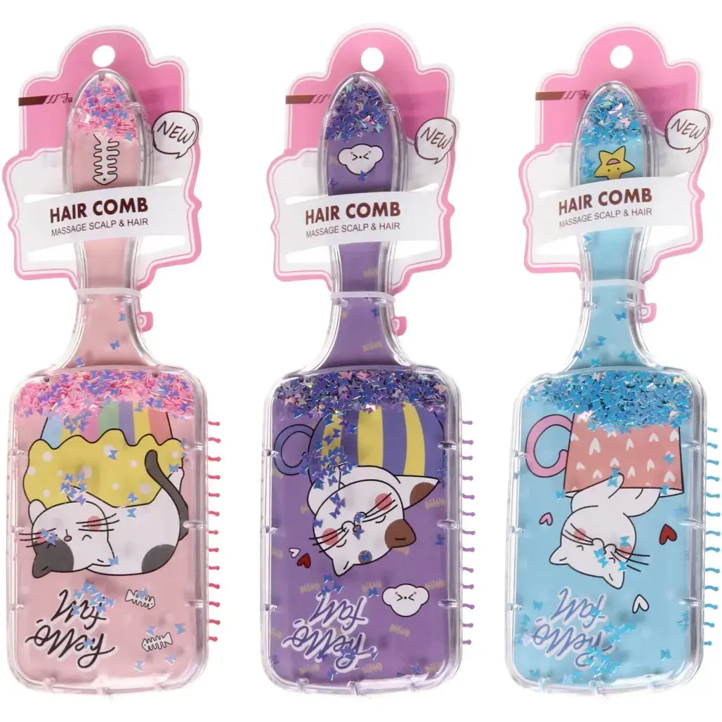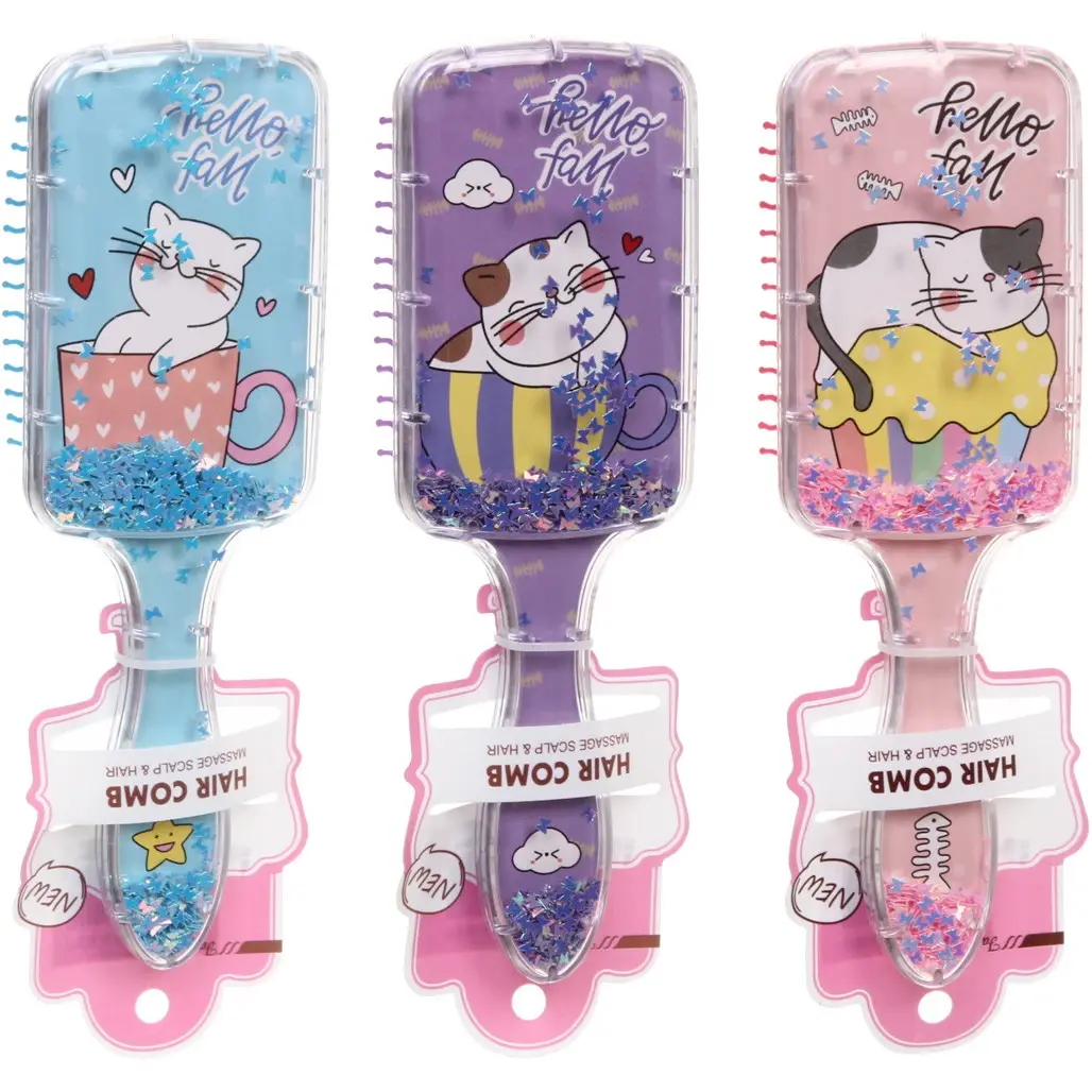 Преимущество этого товара — яркий дизайн с изображениями милых котят, сочетание цветов и декоративных блёсток, что делает процедуру расчесывания увлекательной и эмоционально приятной для ребёнка. Размеры 20*6,5 см, длина ворса 1,5 см позволяют удобно держать расческу в руке и легко расчесывать волосы даже у самых маленьких.