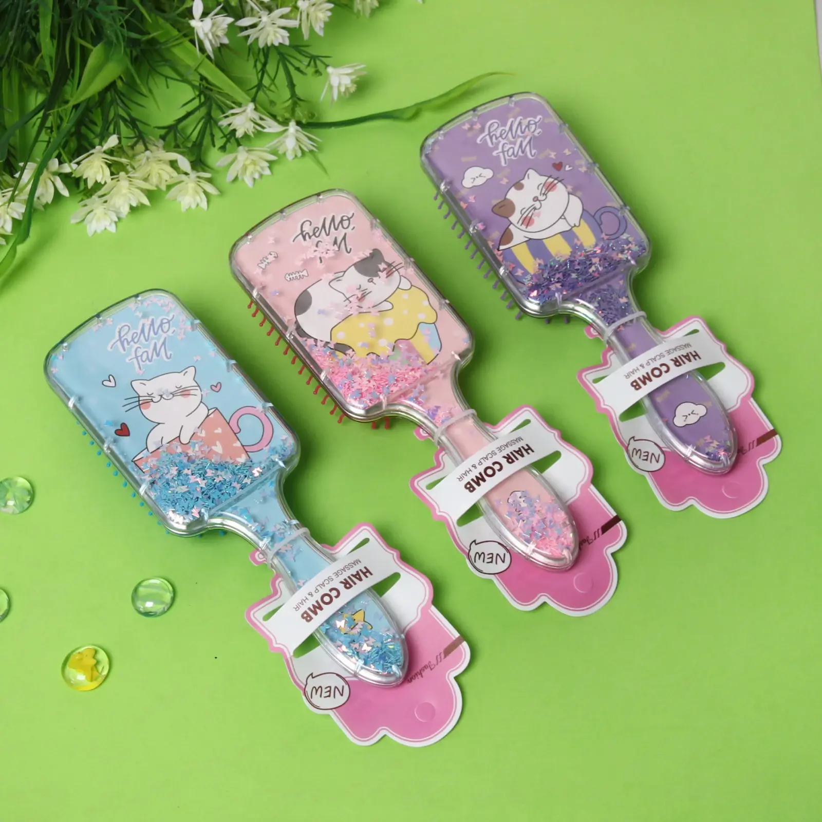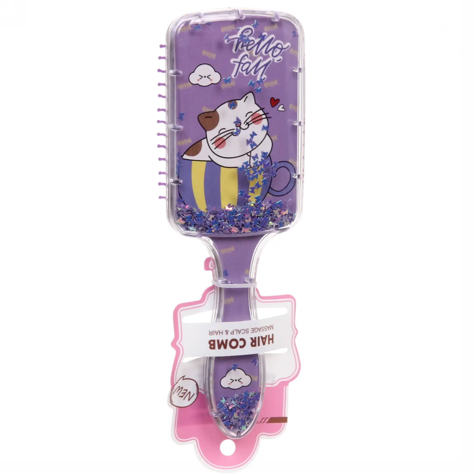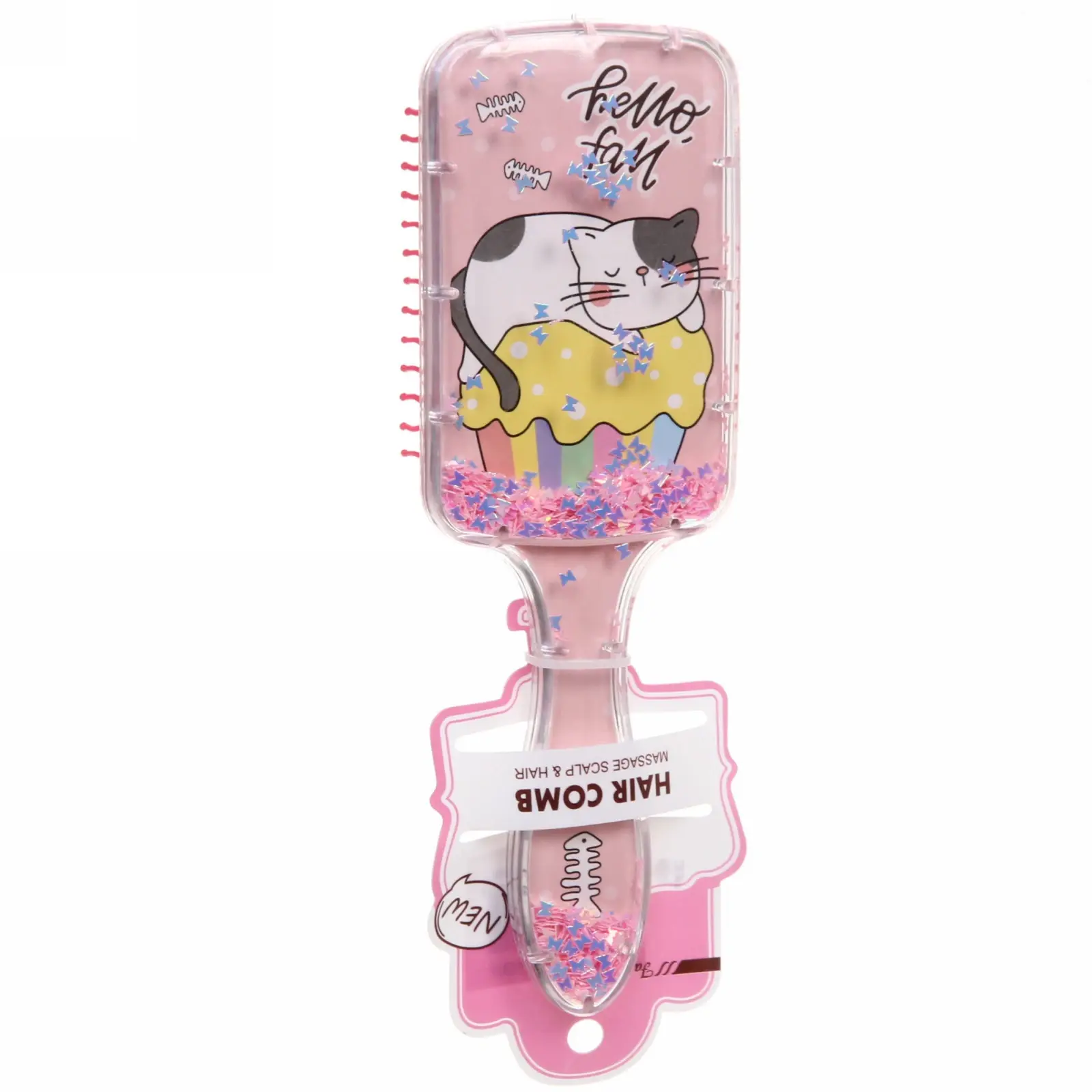 Преимущество этого товара — яркий дизайн с изображениями милых котят, сочетание цветов и декоративных блёсток, что делает процедуру расчесывания увлекательной и эмоционально приятной для ребёнка. Размеры 20*6,5 см, длина ворса 1,5 см позволяют удобно держать расческу в руке и легко расчесывать волосы даже у самых маленьких.