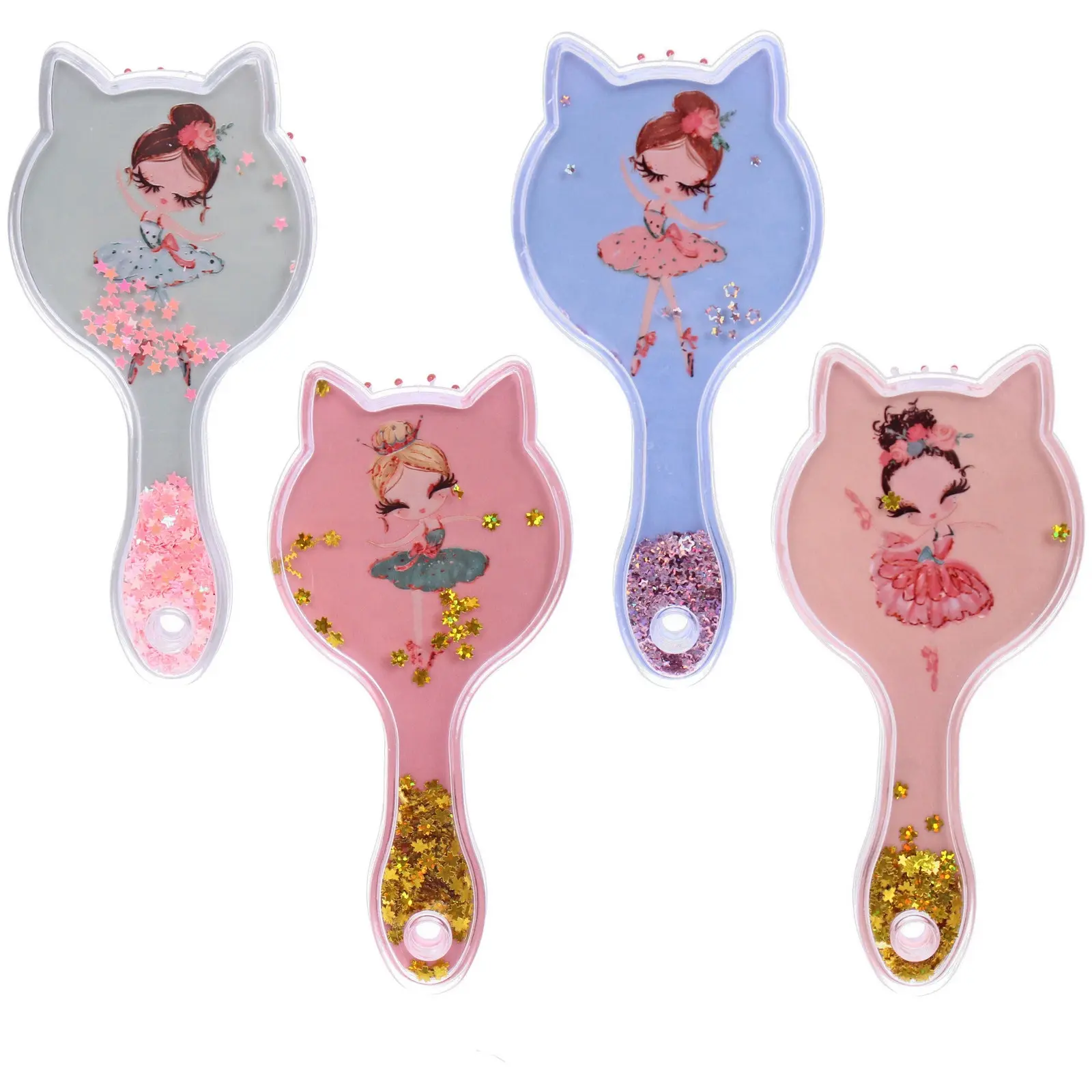 Расческа массажная детская 'БАЛЕРИНЫ' с блестками, микс 4 дизайна, пластик, 17.5х5.2см