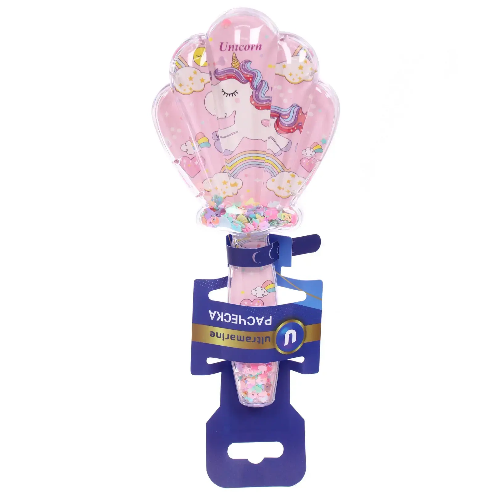 Расческа имеет розовый цвет с белыми и фиолетовыми деталями, а также блестки внутри, что добавляет ей волшебства. Упаковка выполнена в виде блистера, что делает ее удобной для хранения и демонстрации. Не упустите возможность порадовать своего ребенка стильным и функциональным аксессуаром для ухода за волосами!