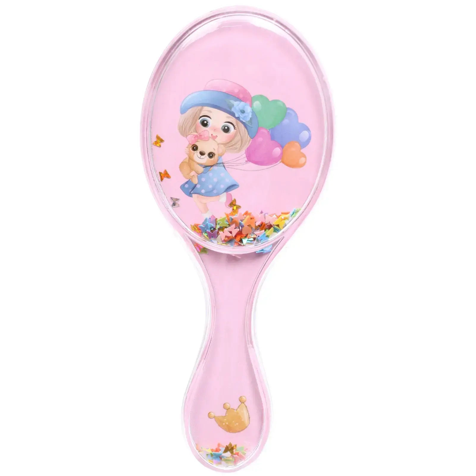 Почему стоит выбрать именно эту расческу? Во-первых, она выполнена из качественного пластика, что обеспечивает долговечность и надежность. Во-вторых, ее яркий розовый цвет и веселый дизайн с изображением девочки с собачкой и воздушными шарами делают процесс расчесывания более увлекательным. Внутри расчески находятся разноцветные фигурки, которые добавляют элемент игры и радости.