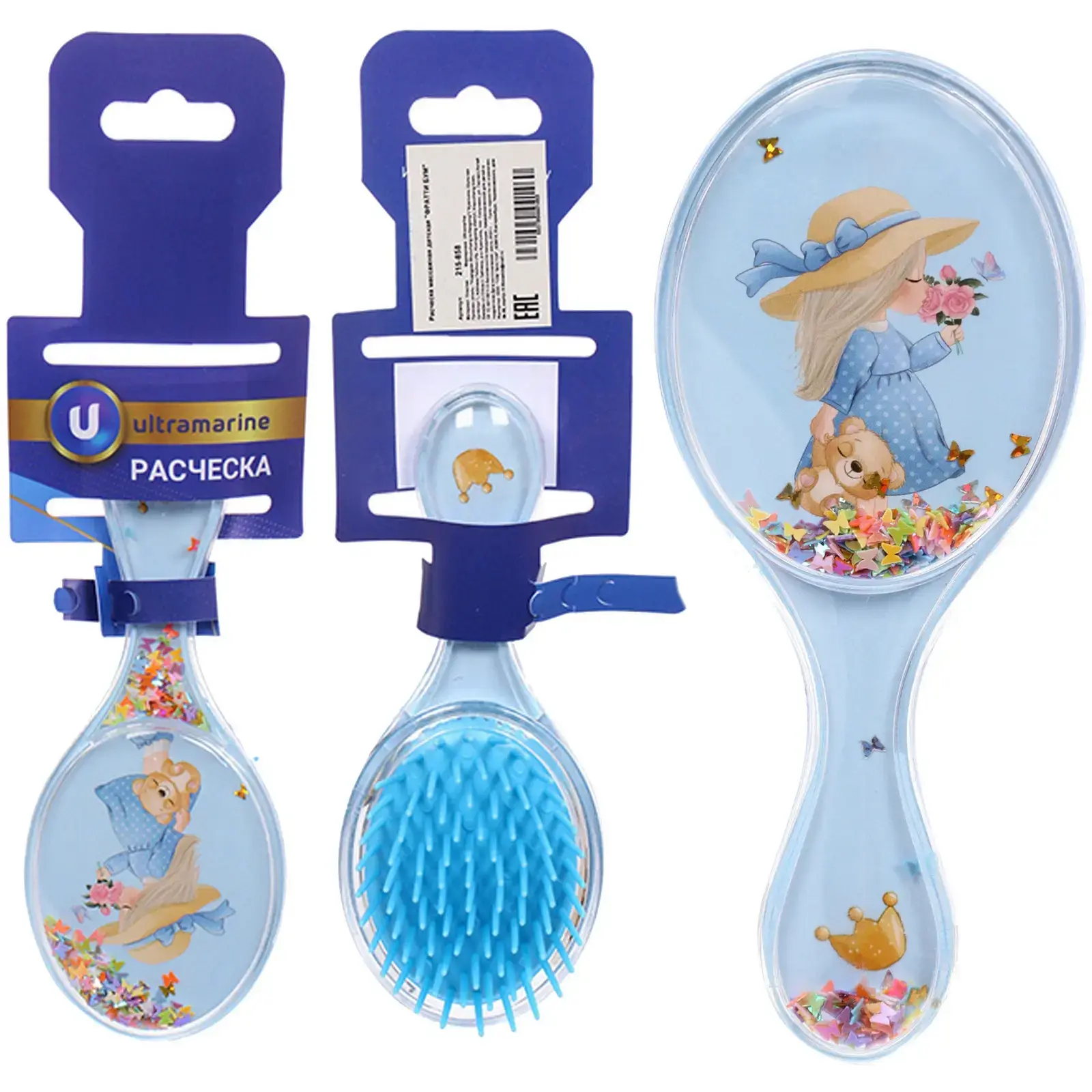 Подарите вашему ребенку комфорт и радость с массажной расческой «ФРАТТИ БУМ». Эта овальная расческа, выполненная в ярком ультрамариновом цвете, станет незаменимым аксессуаром для ухода за волосами вашего малыша. Мягкие зубцы обеспечивают бережное расчесывание, не травмируя нежные волосы, а привлекательный дизайн с изображением девочки и цветами делает процесс ухода за волосами увлекательным.