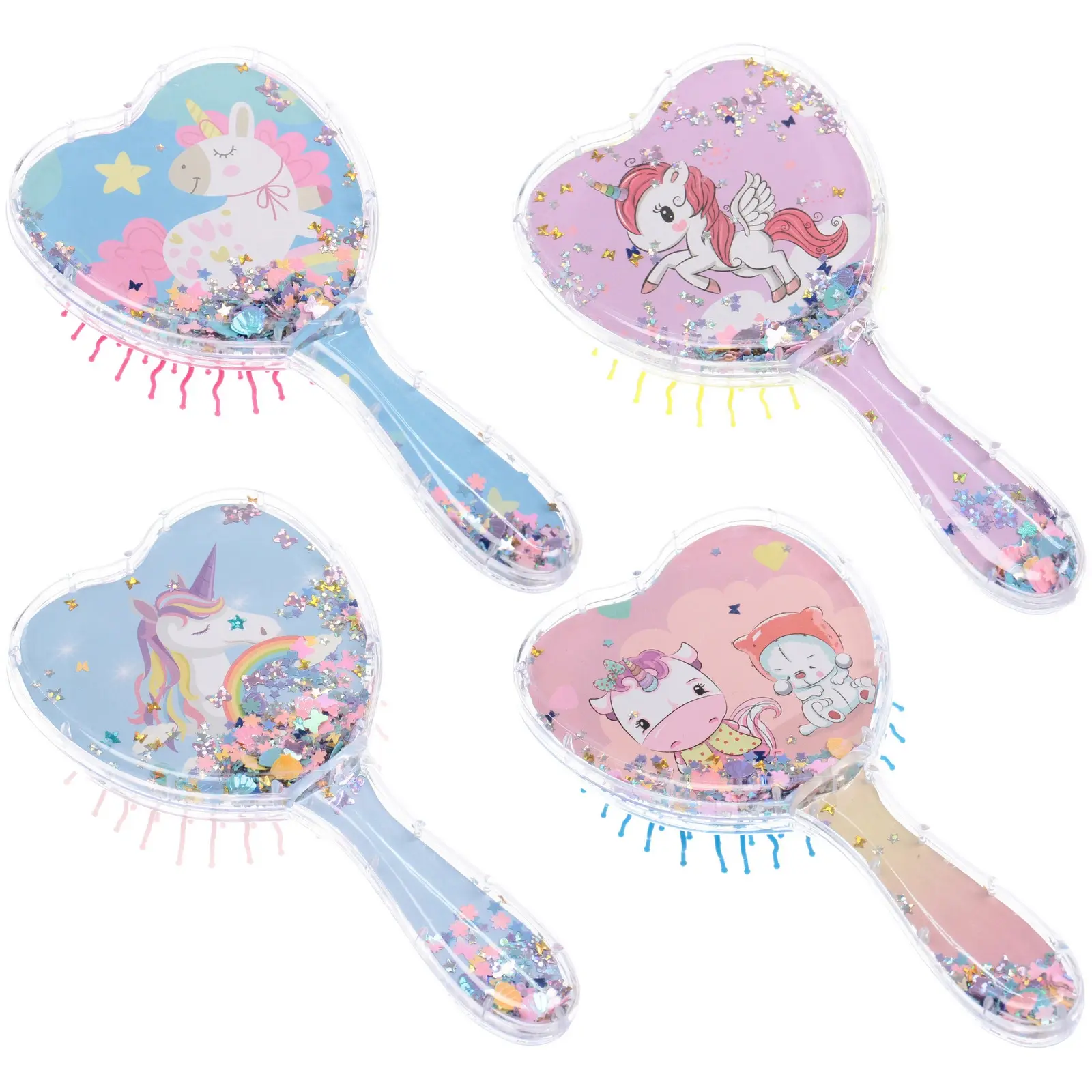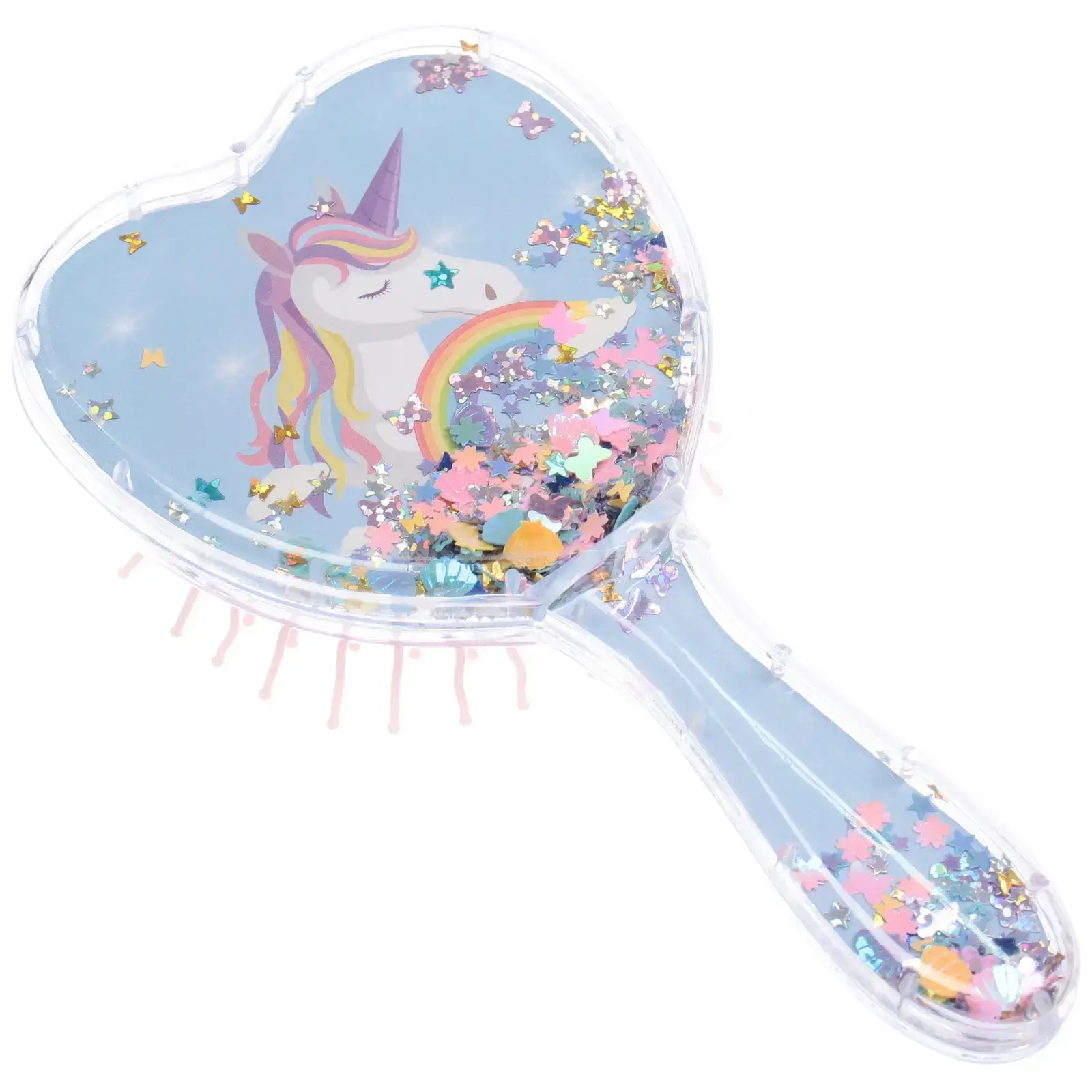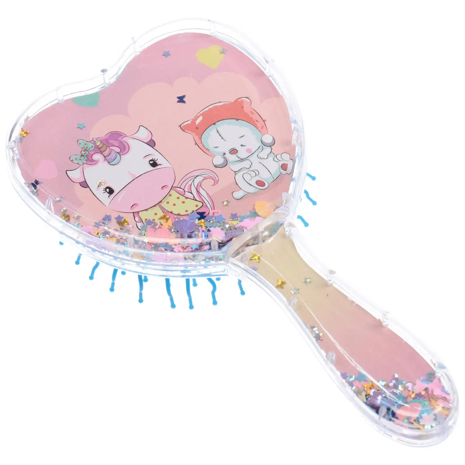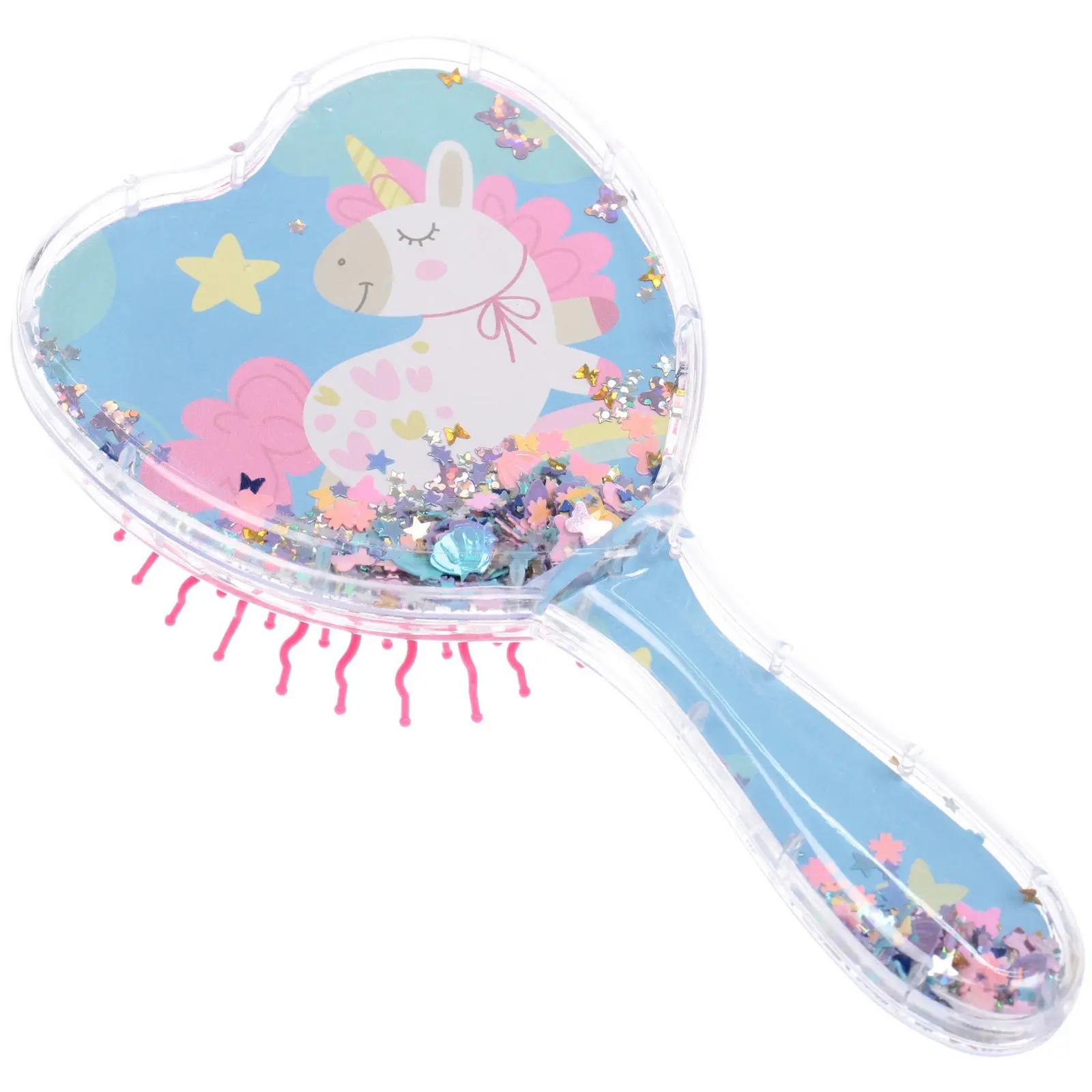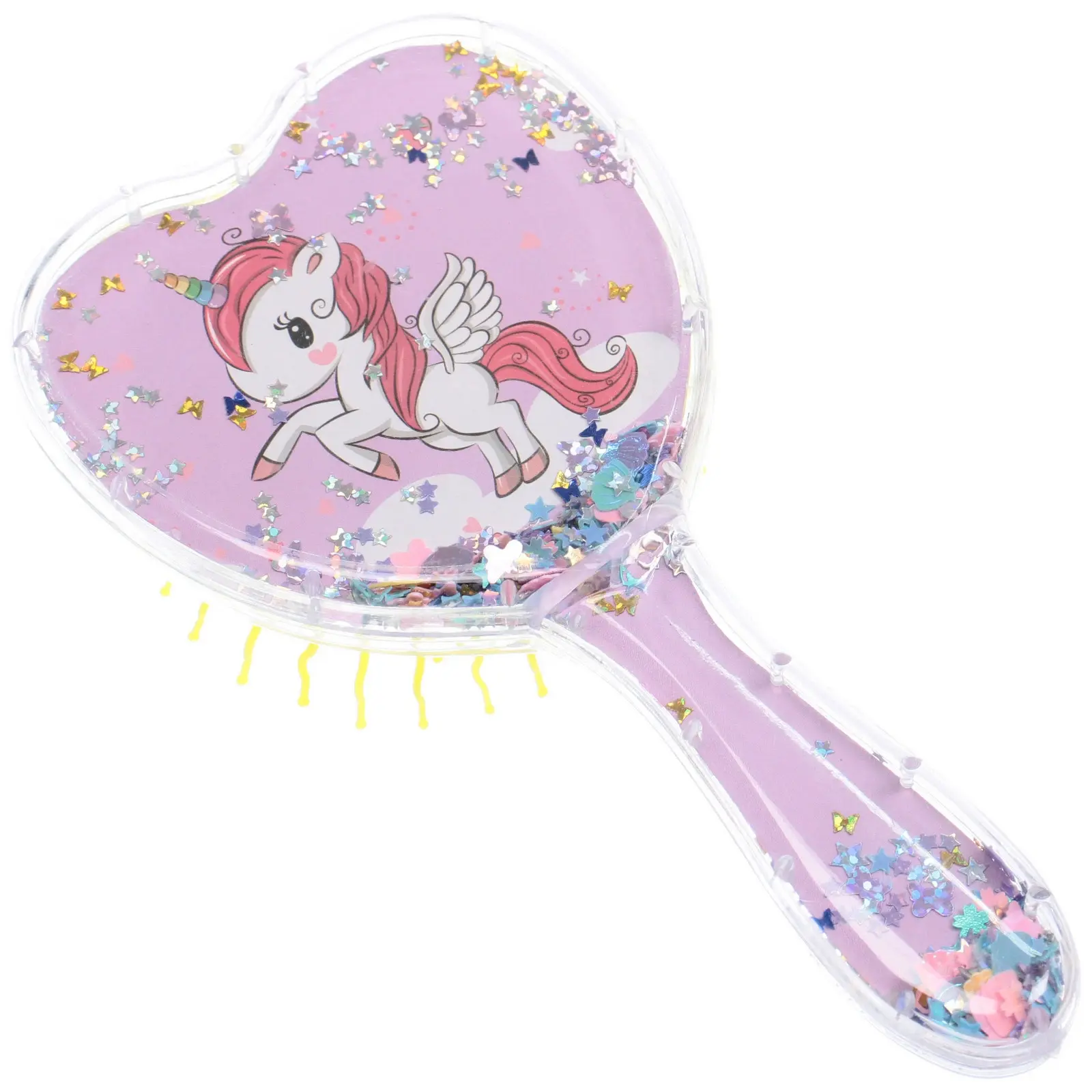 Расческа подходит для ежедневного использования малышами с любыми типами волос. Уникальная форма сердца и иллюстрации внутри делают укладку увлекательной, а мягкие зубцы способствуют мягкому массажу и стимулируют кровообращение. Размер 18*9см удобно лежит в руке, а прозрачный пластик с блёстками добавляет привлекательности.