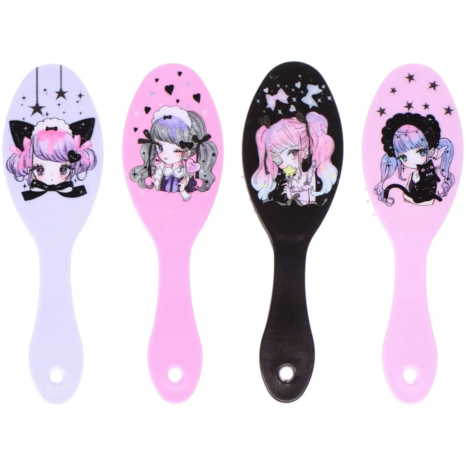 Размер расчески составляет 17 см в длину и 5,3 см в ширину, что делает её компактной и удобной для хранения. Она представлена в четырех различных дизайнах, каждый из которых выполнен в ярких цветах и с уникальными изображениями. Расческа упакована в пакет с подвесом, что позволяет удобно хранить её или дарить в качестве подарка.