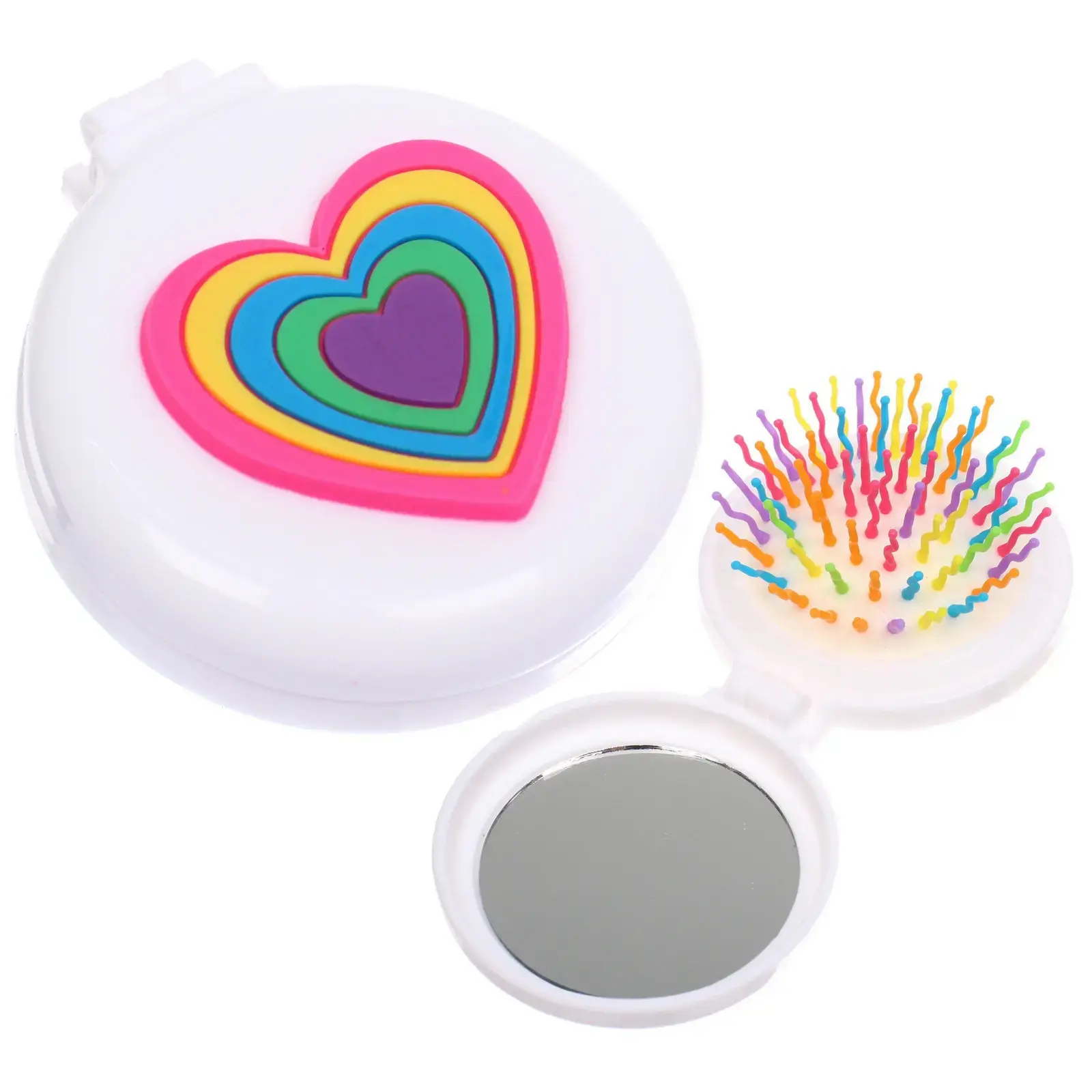Эта расческа оснащена встроенным зеркалом, что делает ее идеальной для укладки волос и проверки внешнего вида в любое время. Яркие массажные щетинки, выполненные в различных цветах, не только аккуратно расчесывают волосы, но и массируют кожу головы, что способствует улучшению кровообращения и делает процесс более приятным. Расческа подходит для детей любого возраста и станет отличным подарком для маленьких модниц.