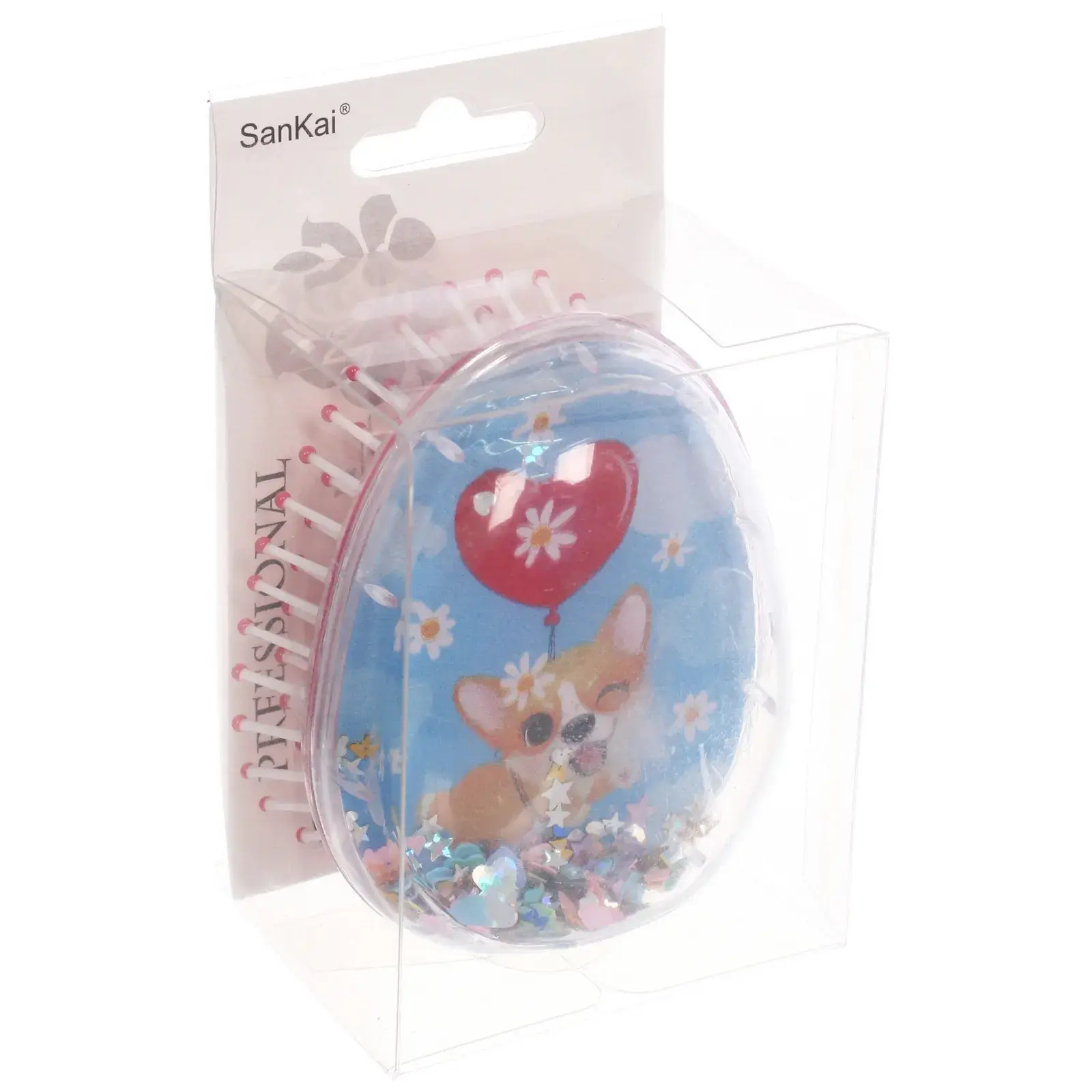 Расческа имеет прозрачный корпус с веселым рисунком, который включает корги, держащего в зубах воздушный шар в форме сердца. Это делает ее отличным подарком для детей. Размеры расчески 6х9 см делают ее удобной для использования даже самыми маленькими ручками. Не упустите возможность сделать уход за волосами вашего ребенка веселым и приятным!