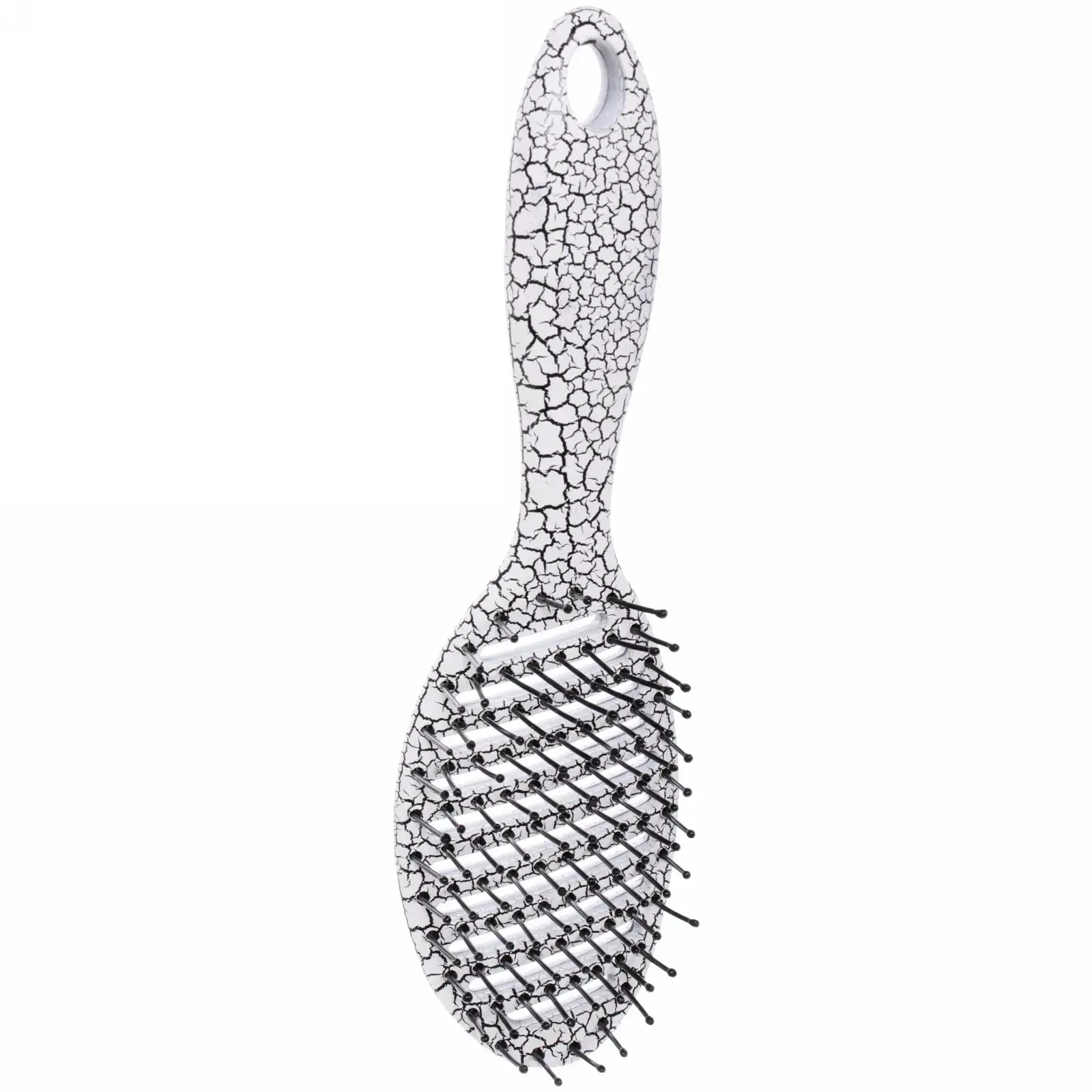 Расческа с уникальным дизайном и анатомической ручкой создана для ежедневного комфорта. Металлические зубцы с закругленными кончиками бережно распутывают волосы, стимулируя кровообращение кожи головы.