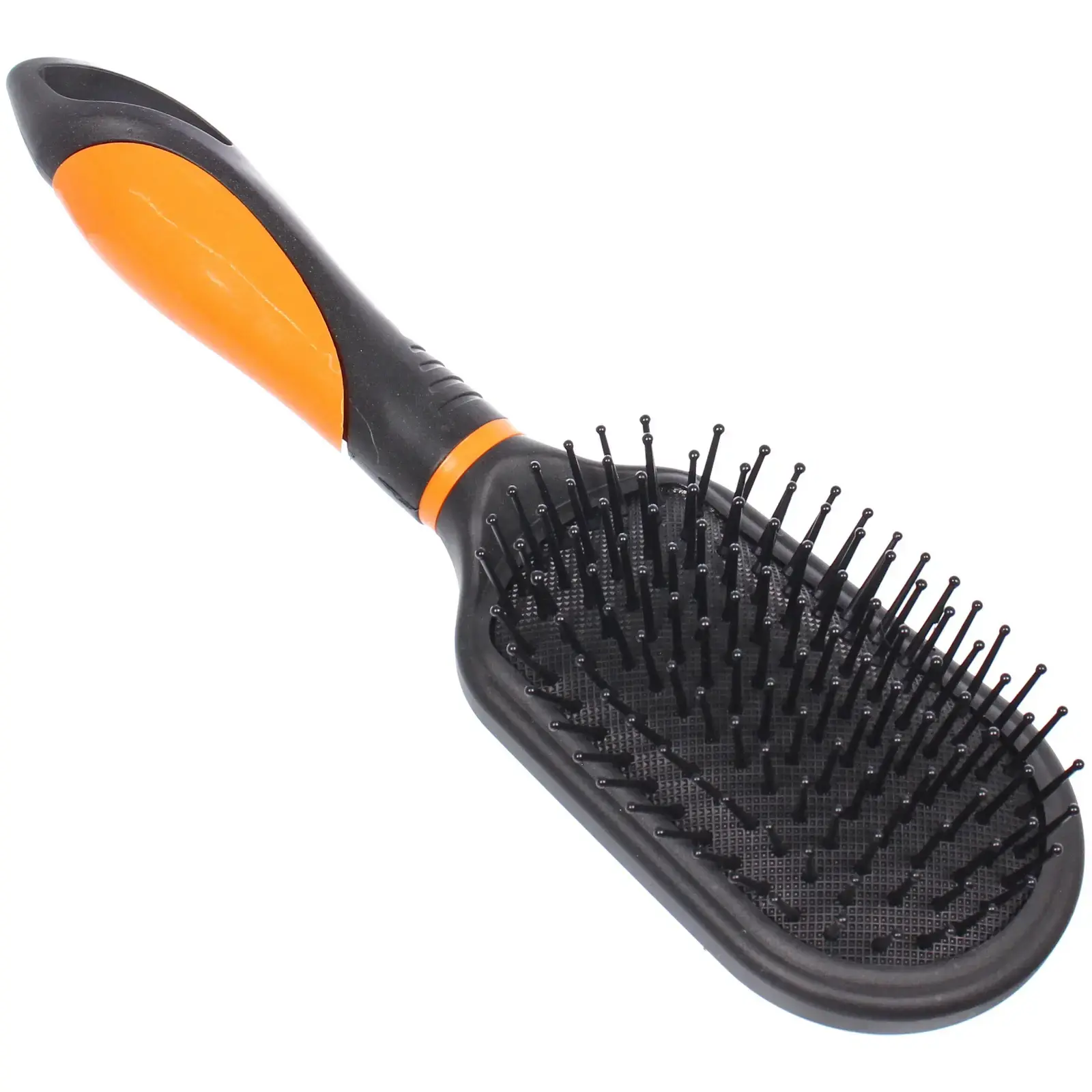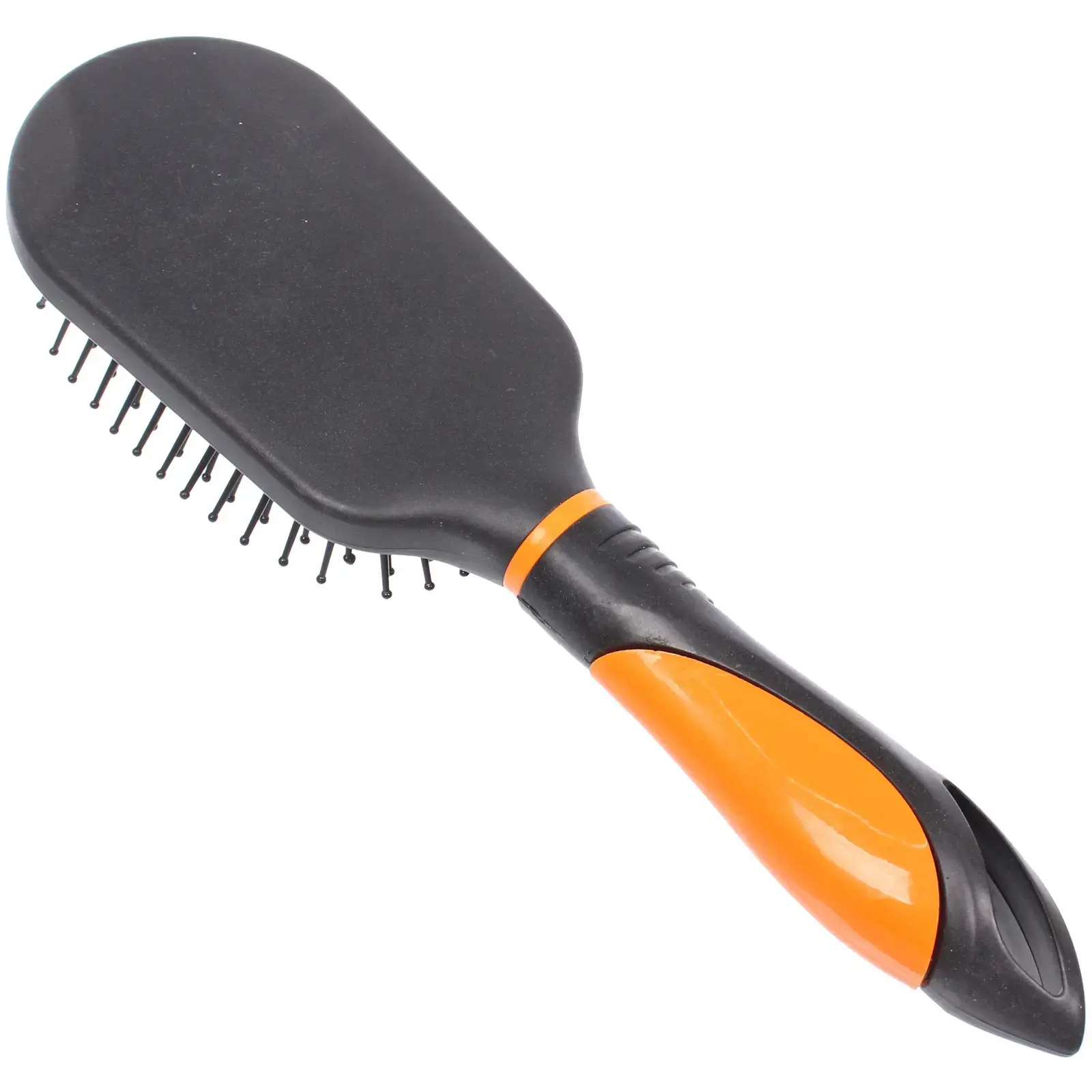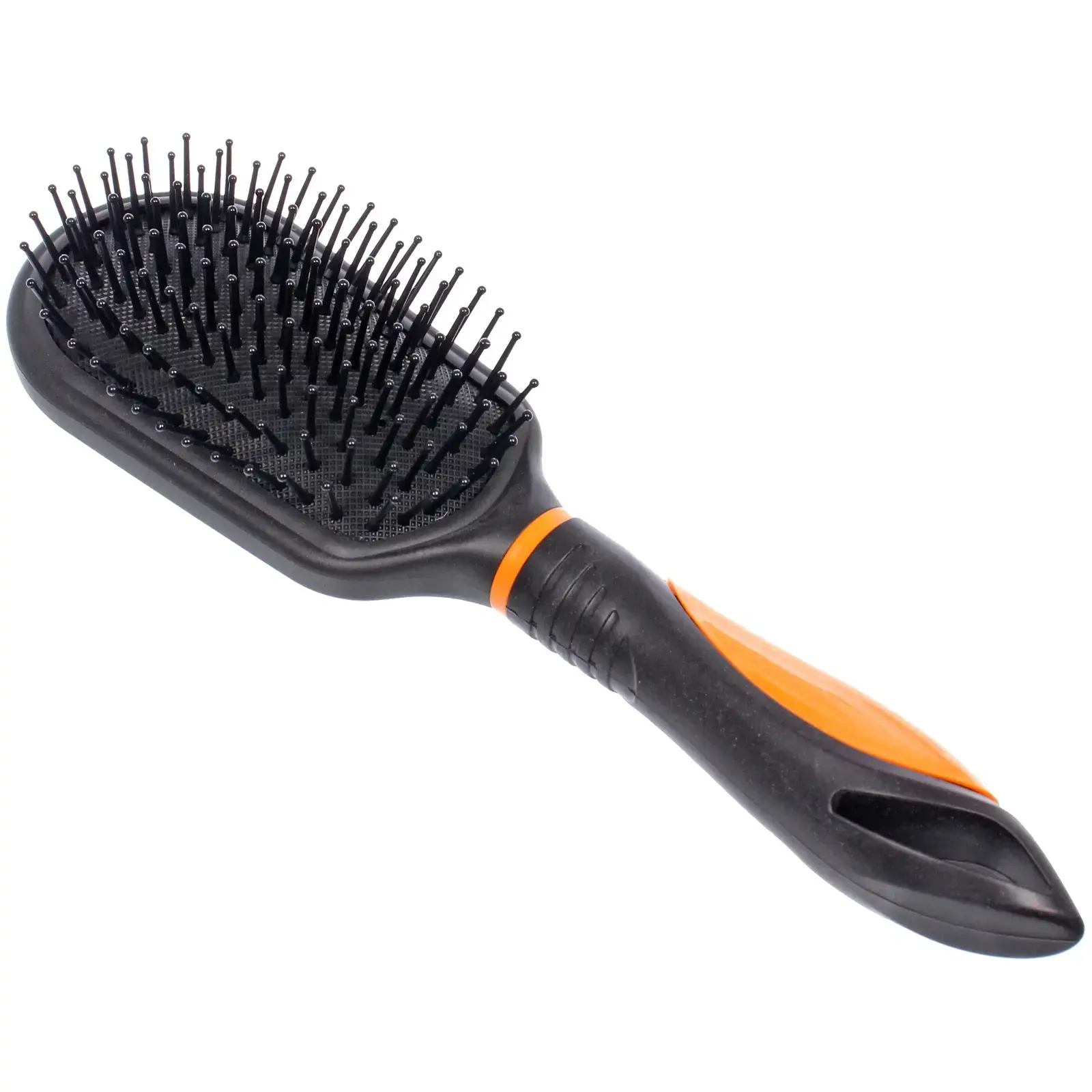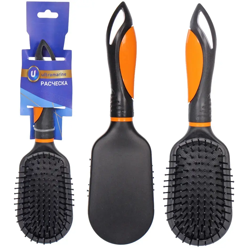 Расческа выполнена из качественного пластика, что обеспечивает ее долговечность и легкость. Основной цвет — черный, что делает ее стильной и универсальной для любого образа. Мягкие щетинки равномерно распределены по поверхности, что позволяет избежать повреждений волос при расчесывании. Эта расческа станет отличным дополнением к вашему арсеналу средств по уходу за волосами.