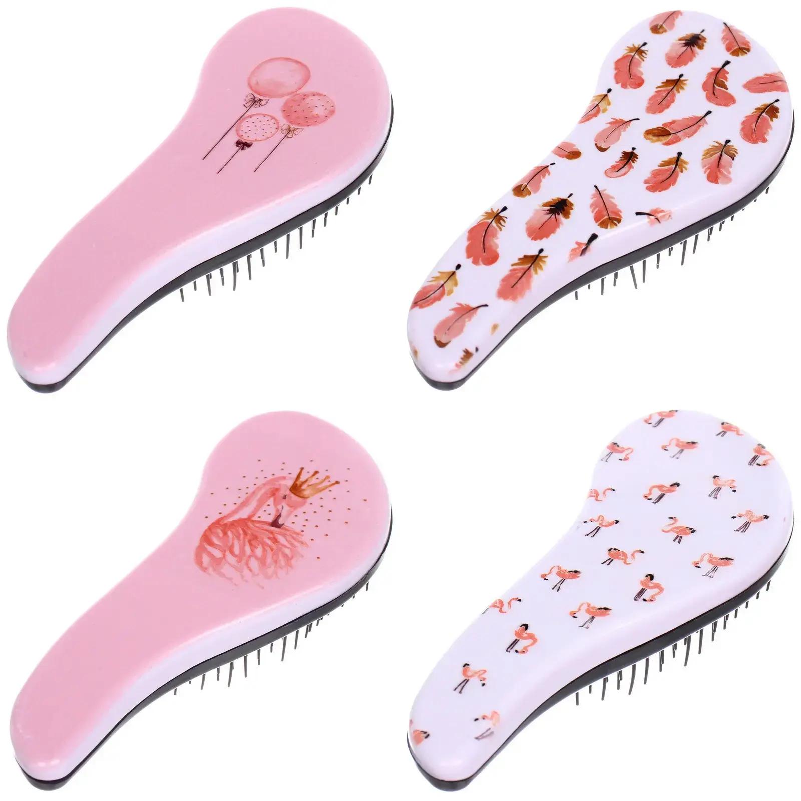 Выбирая расческу «ЭКЛЕР», вы получаете не только функциональный аксессуар, но и стильный элемент, который украсит вашу косметичку. Яркие принты с изображениями фламинго, воздушных шаров и перьев добавят игривости и радости в ваш повседневный уход за волосами.