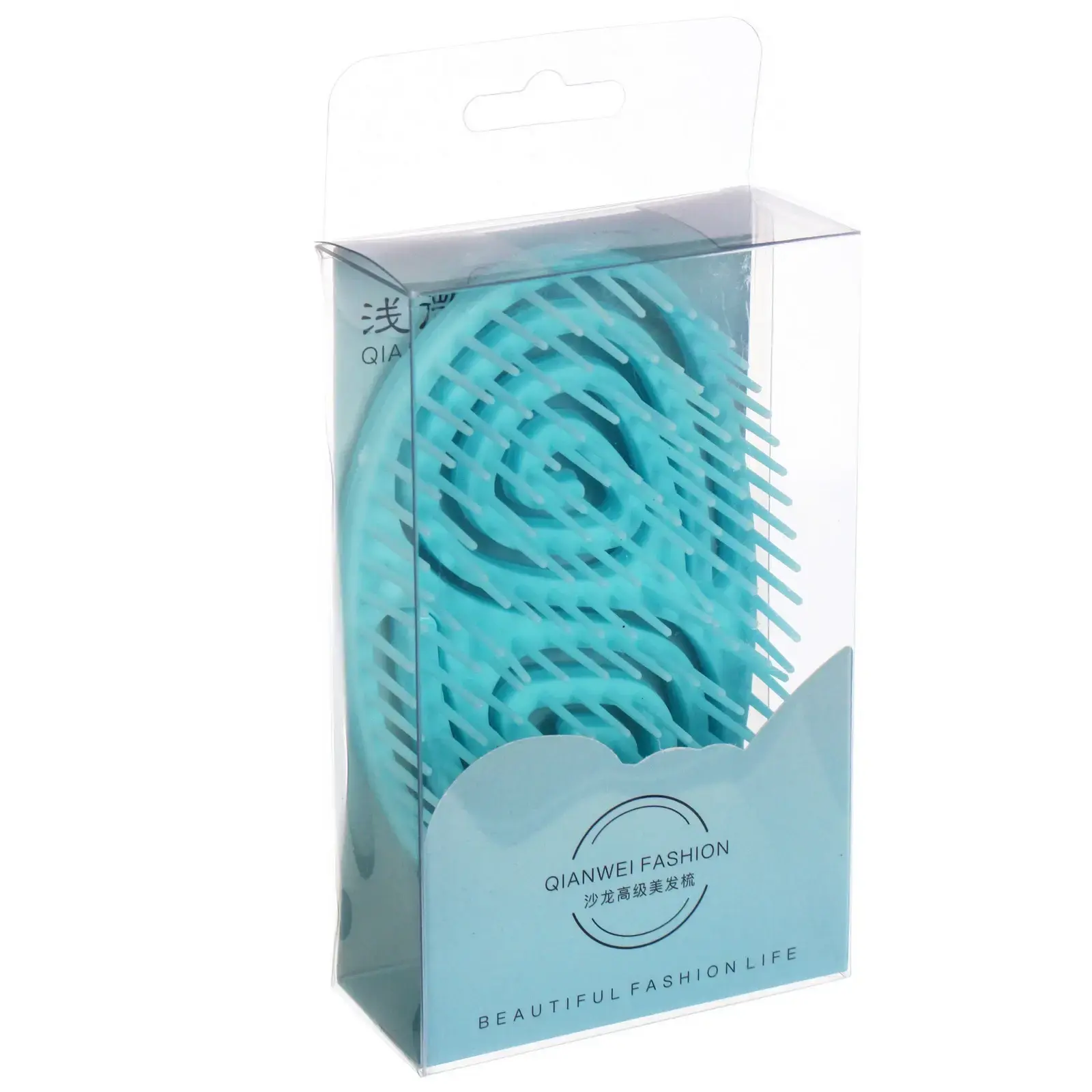 Расческа выполнена из качественного пластика, что делает её легкой и долговечной. Цвет — светло-голубой, что добавляет яркости и стиля в ваш повседневный уход за волосами. Упакована в прозрачную PVC коробку, что позволяет видеть товар и защищает его от повреждений.