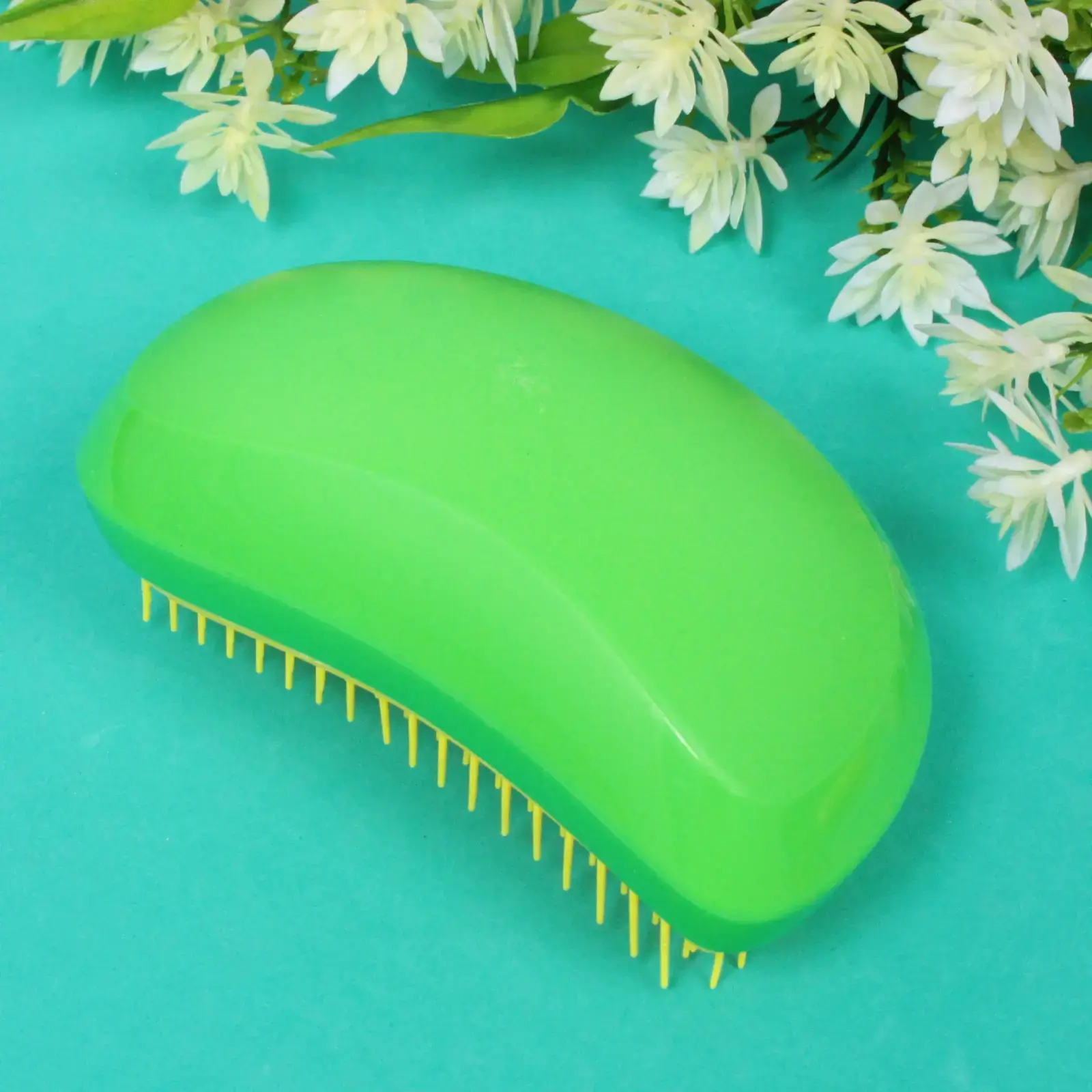 Размер 7х12 см оптимален для повседневного использования. Сочетание зеленого и желтого цветов создает позитивный акцент. Плотный пластик выдерживает механические нагрузки, сохраняя первоначальную форму. Закругленные кончики зубцов обеспечивают деликатный массаж кожи головы.
