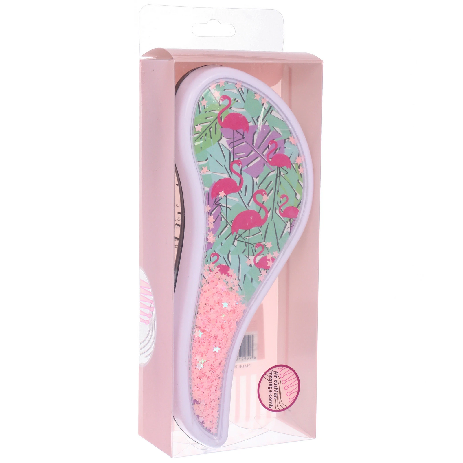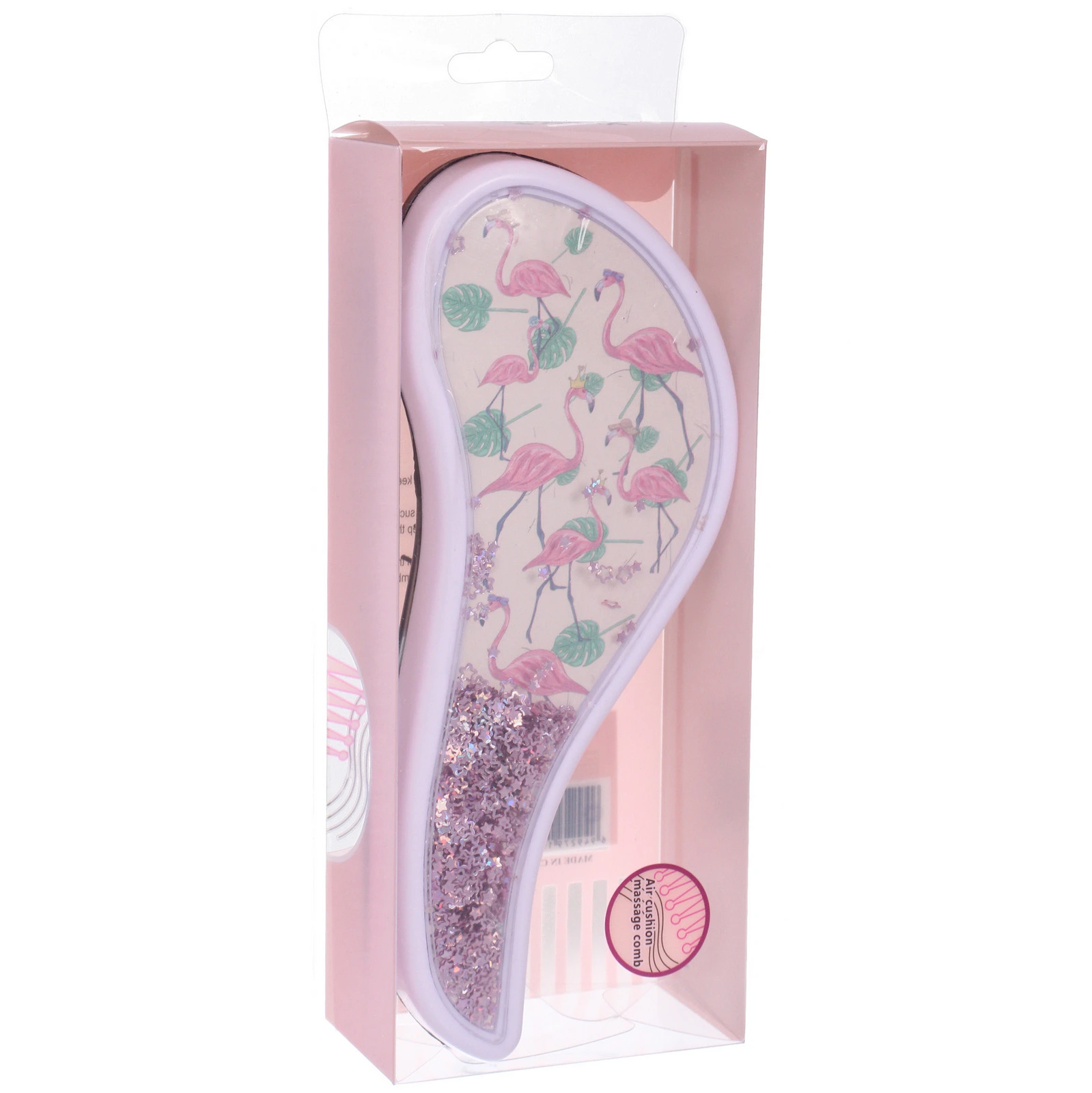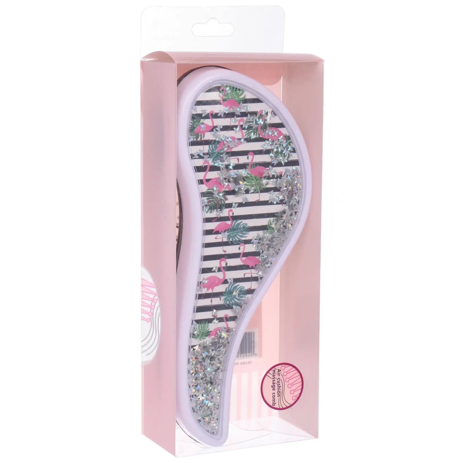 Расческа выполнена из качественного пластика, что гарантирует ее долговечность. Доступные дизайны включают яркие фламинго и растительные мотивы, что делает каждую расческу уникальной. Упаковка из PVC защищает товар и позволяет видеть его красоту. Не упустите возможность сделать свой уход за волосами более стильным и приятным!