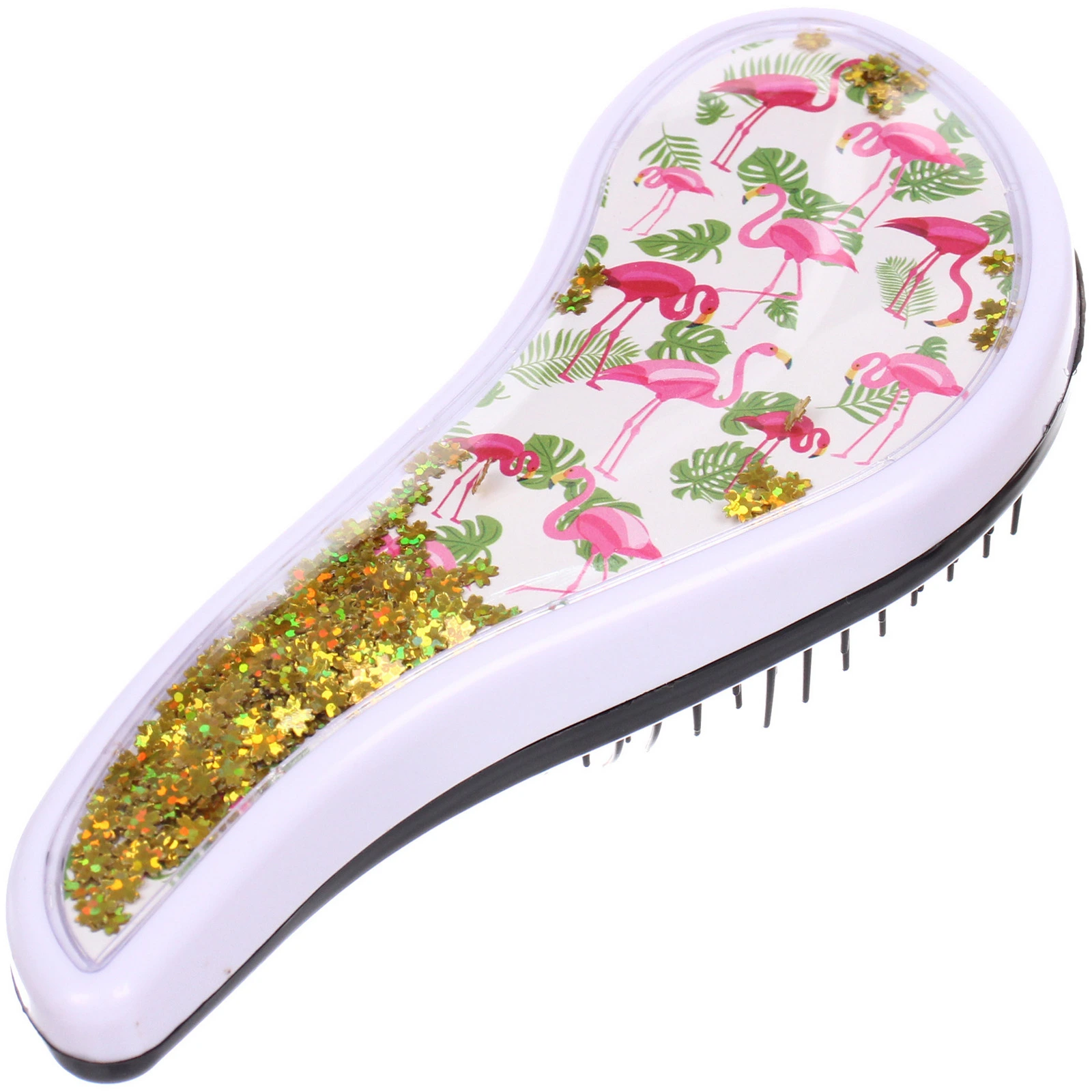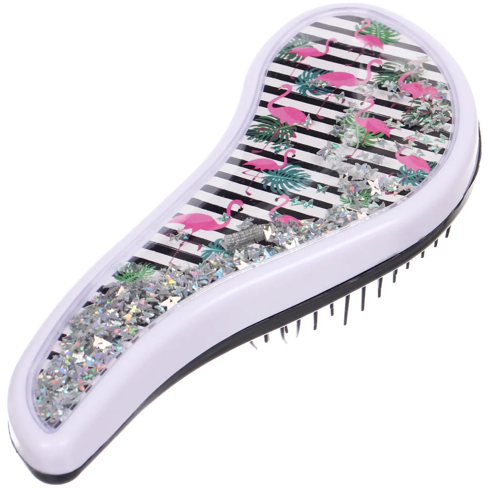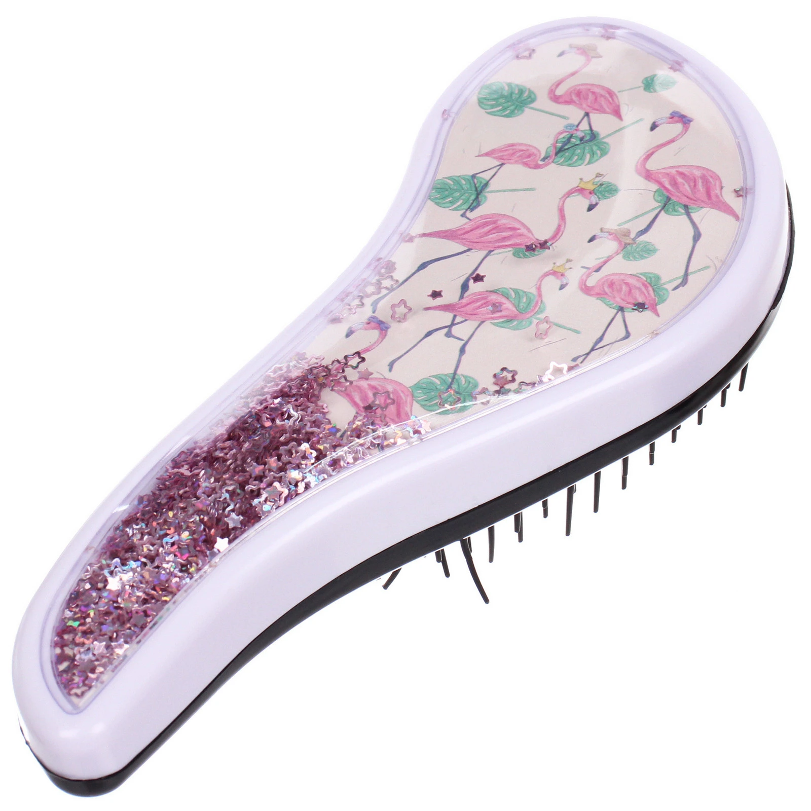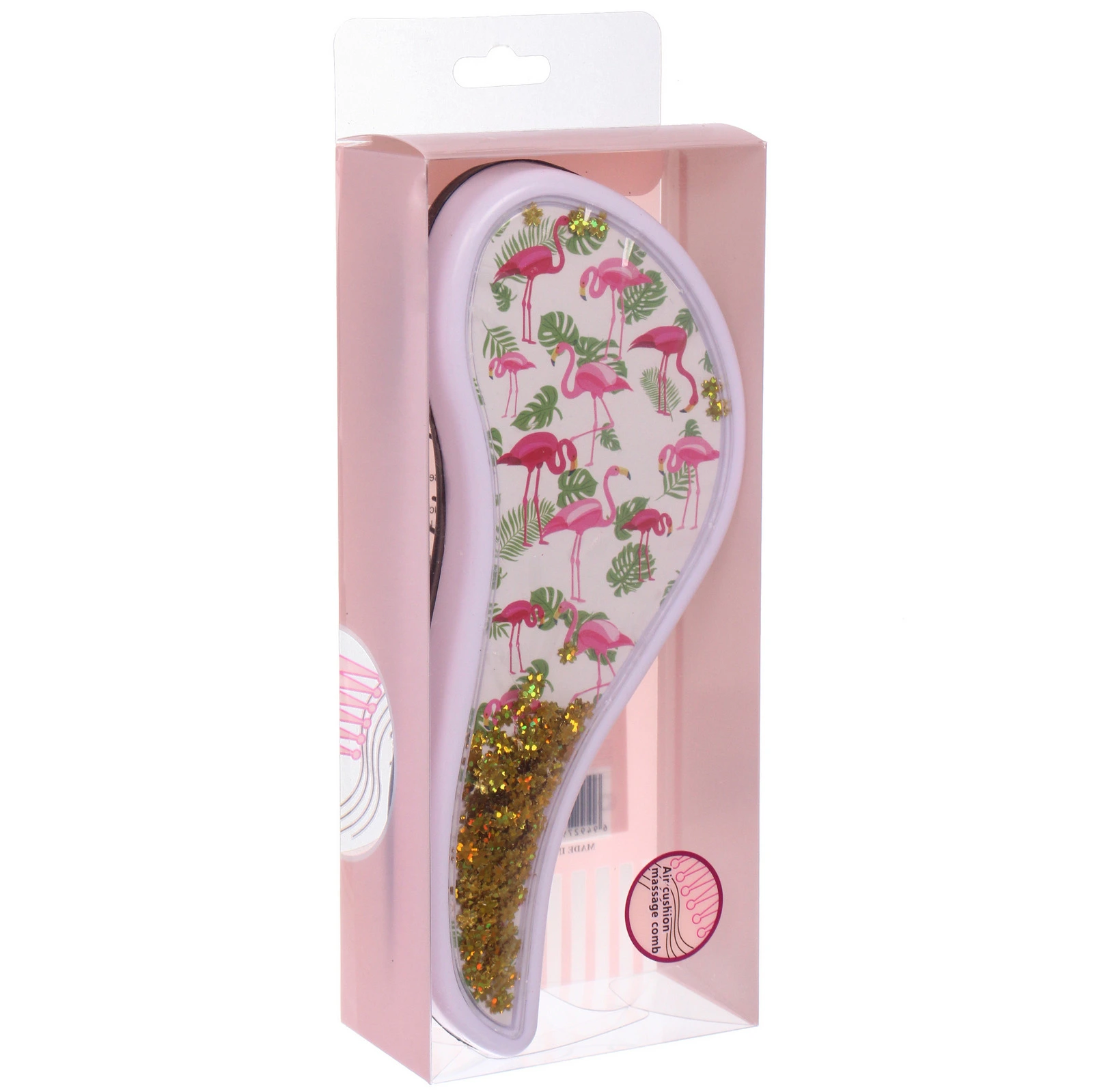 Расческа выполнена из качественного пластика, что гарантирует ее долговечность. Доступные дизайны включают яркие фламинго и растительные мотивы, что делает каждую расческу уникальной. Упаковка из PVC защищает товар и позволяет видеть его красоту. Не упустите возможность сделать свой уход за волосами более стильным и приятным!